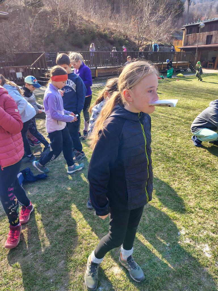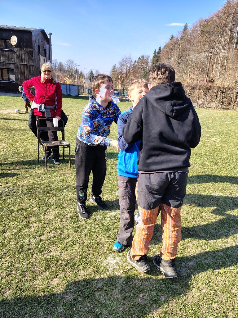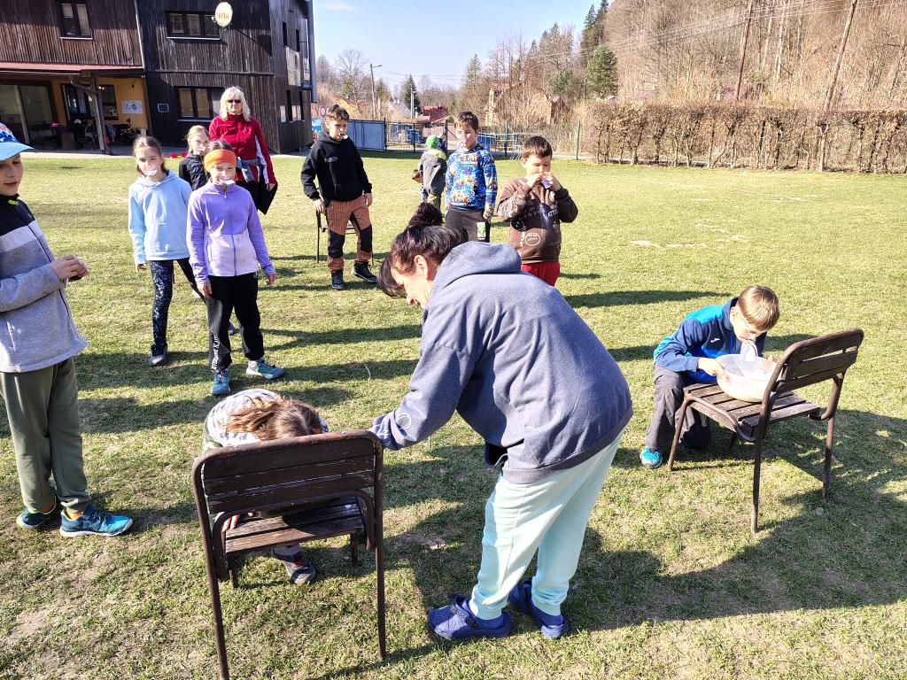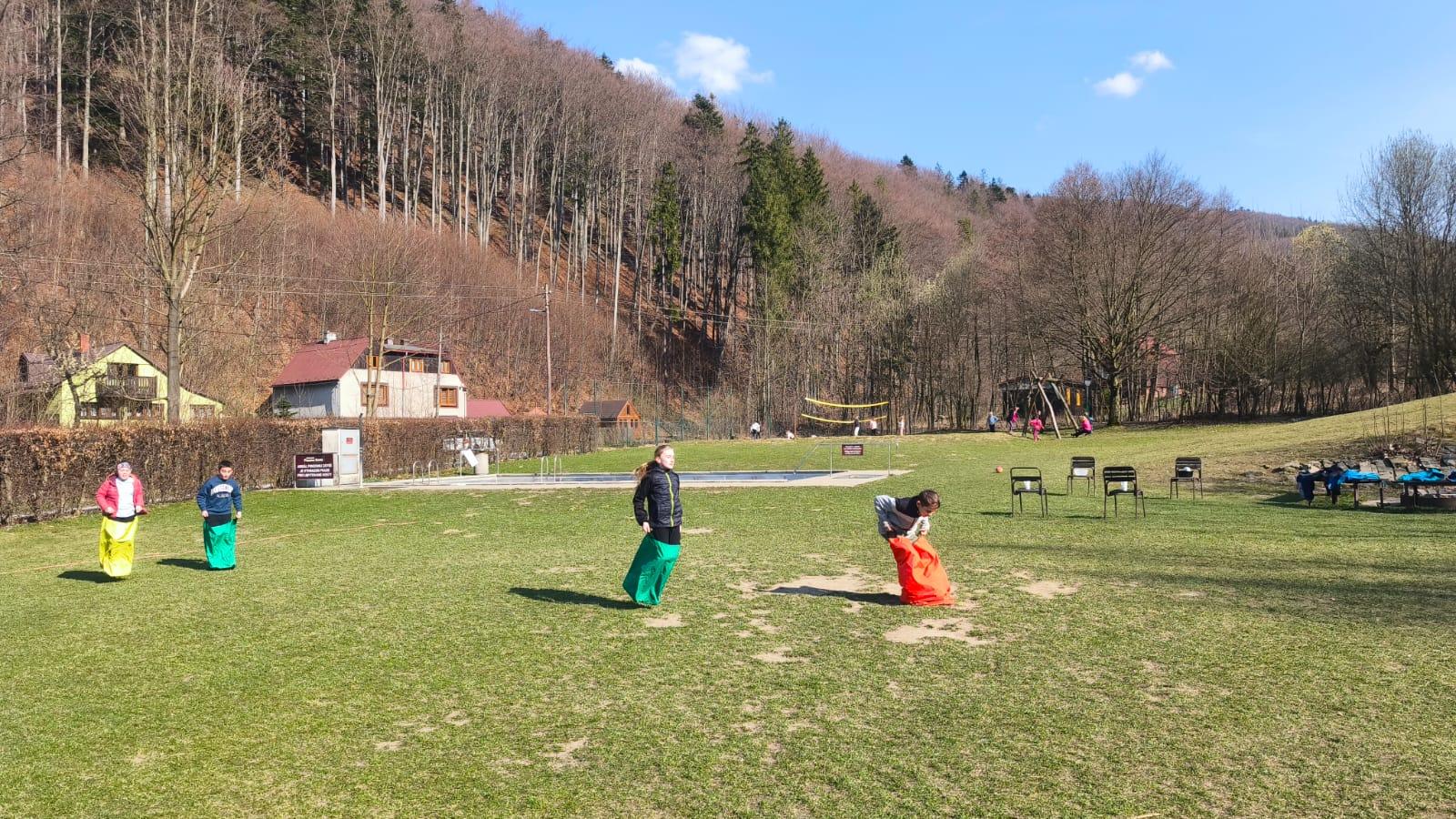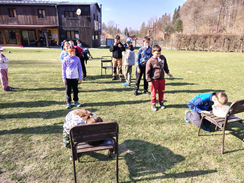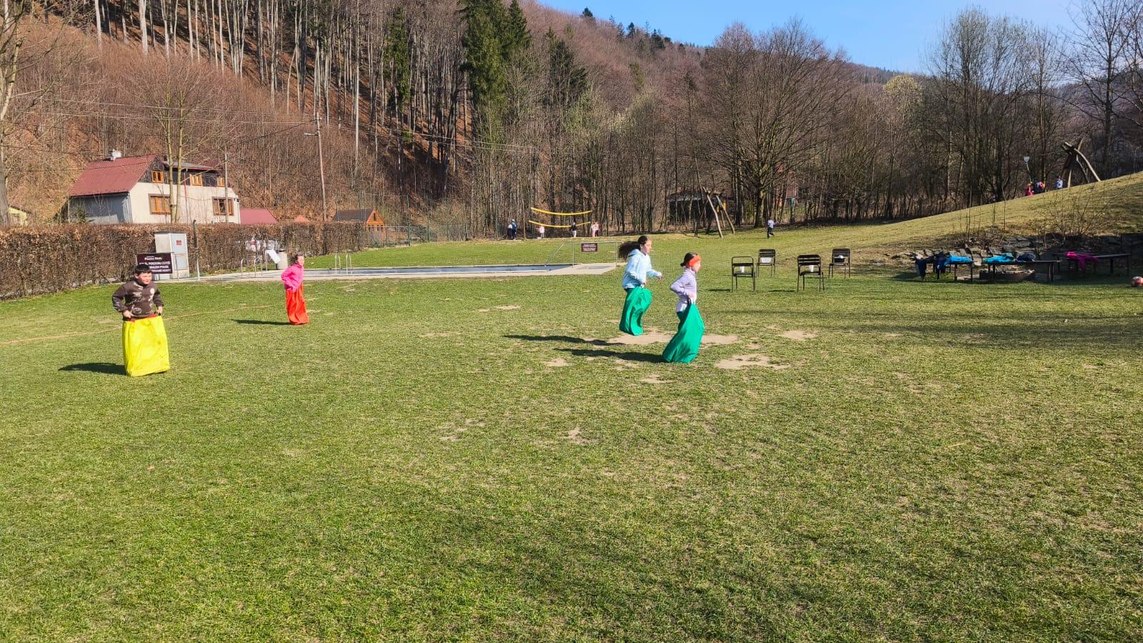 Dnes dopoledne jsme se nejprve ponořili do tajů země Biland a počítali groše. Jestli se dopočítáme, zjistíme až zítra. Pak nás čekaly drama dílny s tématem „Blbá Vendula“, podle stejnojmenné knihy. Děti si vyzkoušely živé obrazy i hraní scének. Po dobrém obědě a odpoledním klidu jsme plnili další olympijskou disciplínu – skoky v pytli. Nejrychlejšími skokany byli Anežka, Kuba B. , Juditka a Júlinka. Chtěli jsme stihnout i veselou štafetu s přenášením mouky, ale vítr nám ji rozfoukal. Možná zítra změníme přenášený materiál a povede se to.