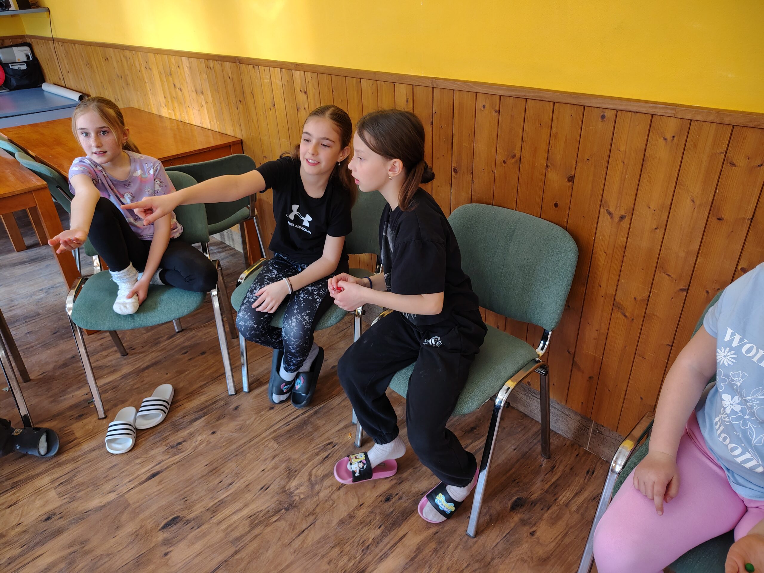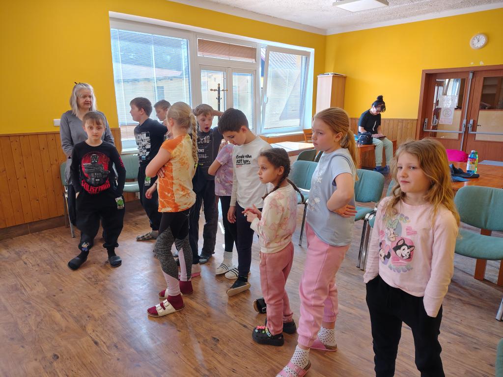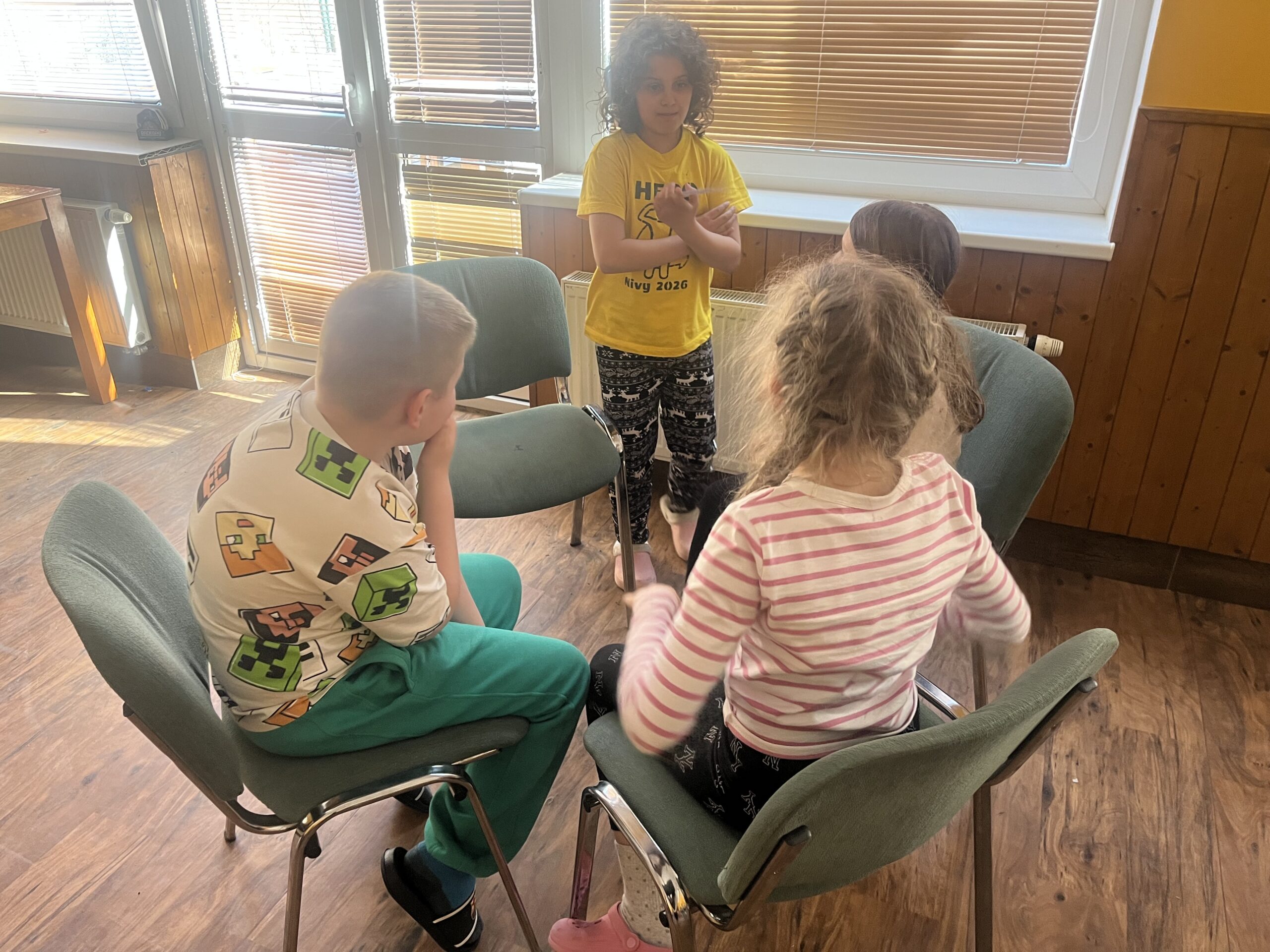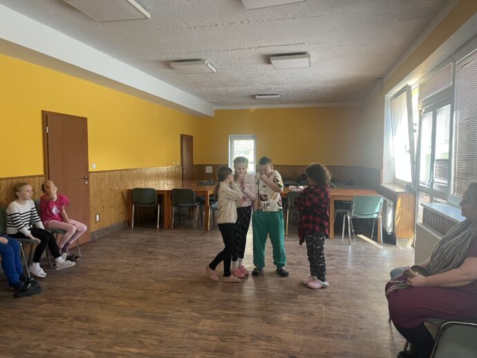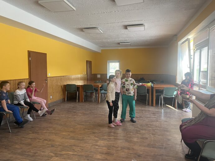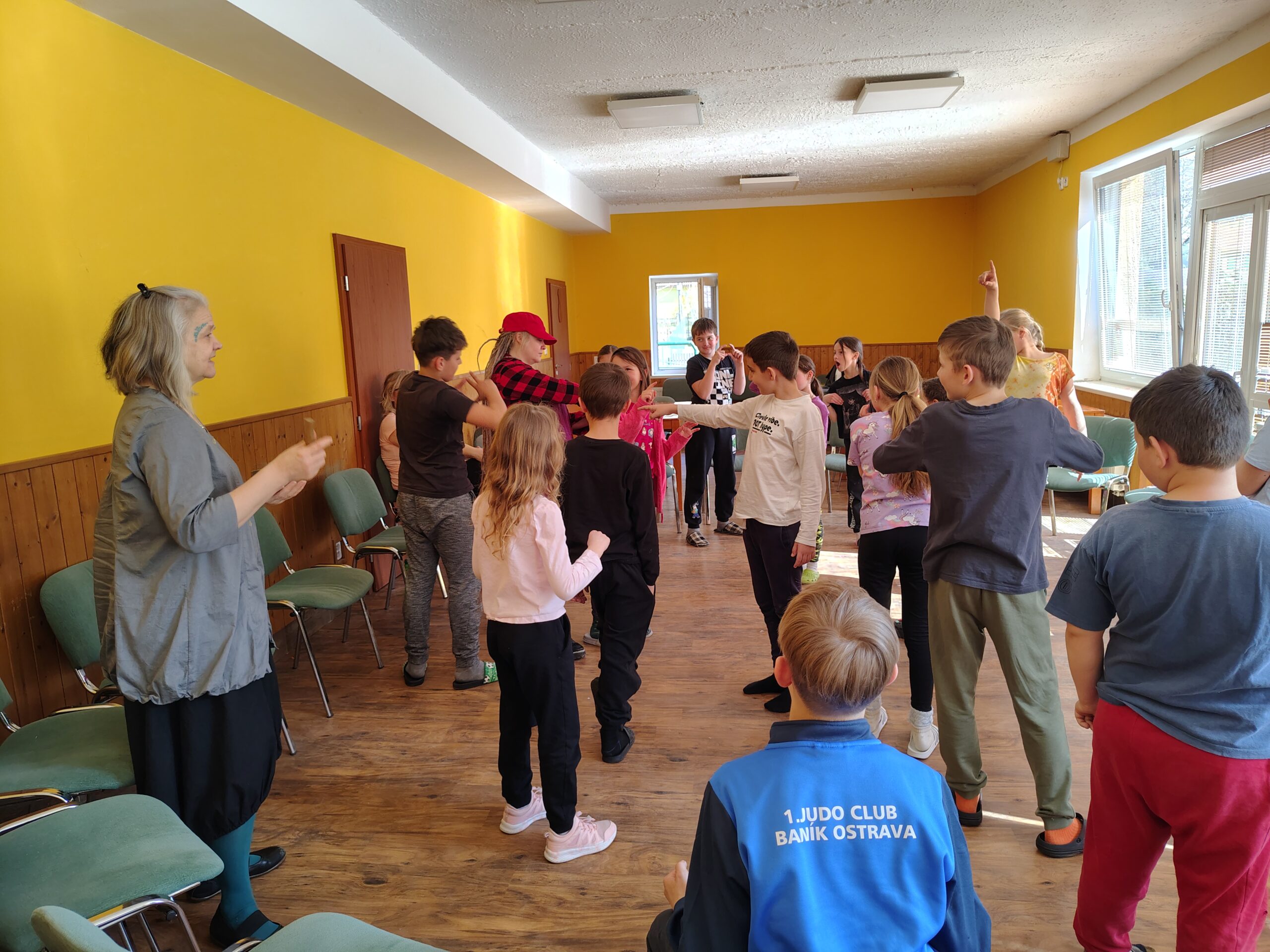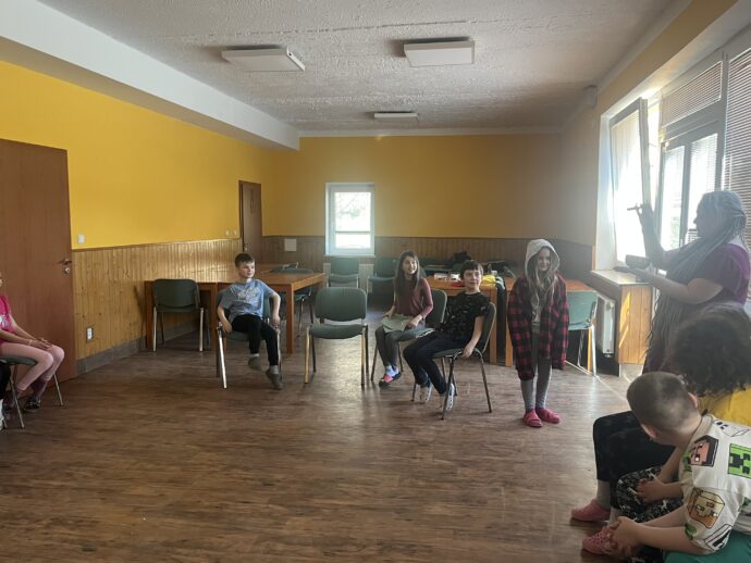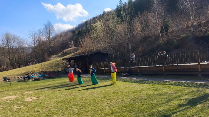 Dnes dopoledne jsme se nejprve ponořili do tajů země Biland a počítali groše. Jestli se dopočítáme, zjistíme až zítra. Pak nás čekaly drama dílny s tématem „Blbá Vendula“, podle stejnojmenné knihy. Děti si vyzkoušely živé obrazy i hraní scének. Po dobrém obědě a odpoledním klidu jsme plnili další olympijskou disciplínu – skoky v pytli. Nejrychlejšími skokany byli Anežka, Kuba B. , Juditka a Júlinka. Chtěli jsme stihnout i veselou štafetu s přenášením mouky, ale vítr nám ji rozfoukal. Možná zítra změníme přenášený materiál a povede se to.