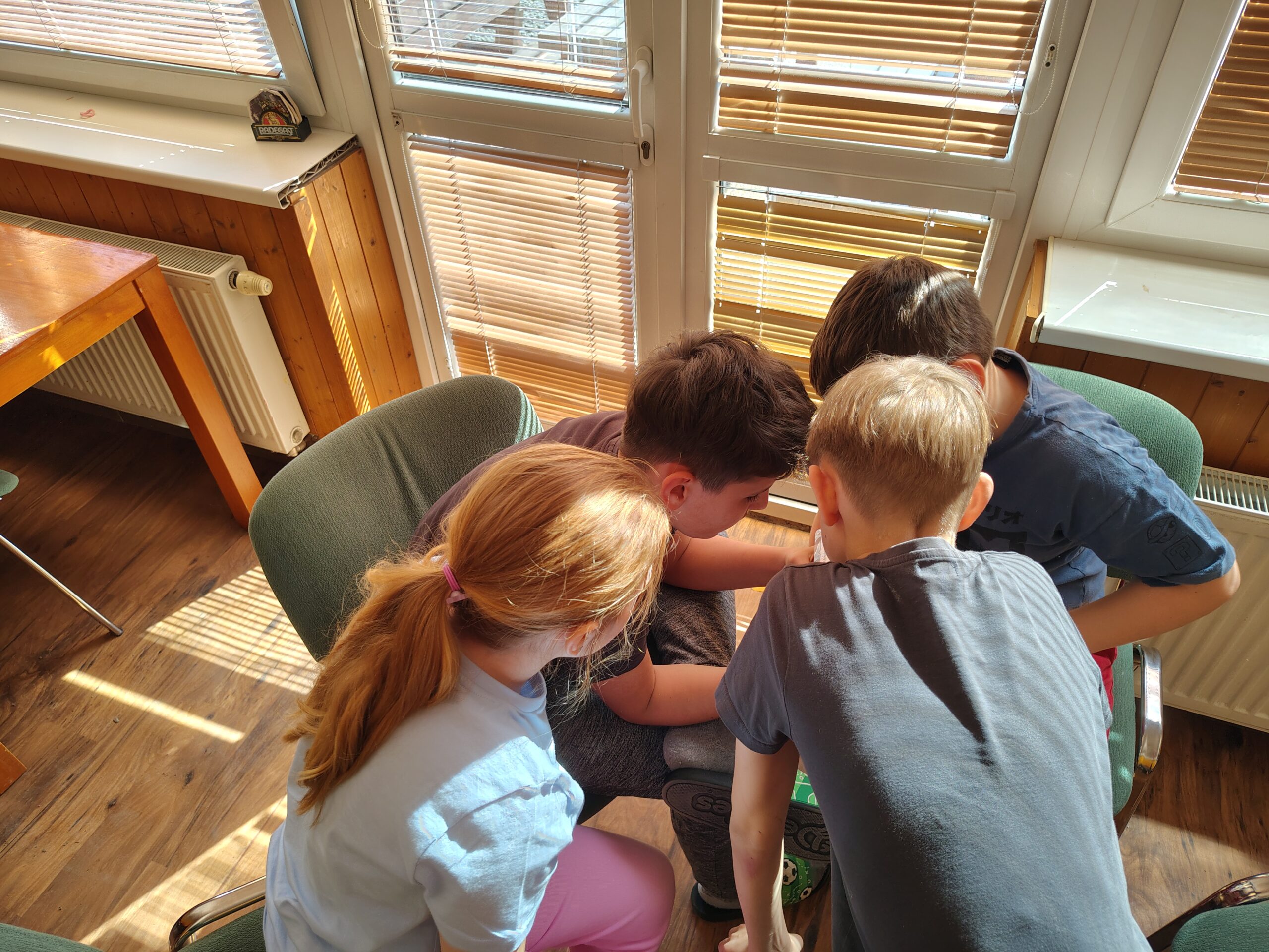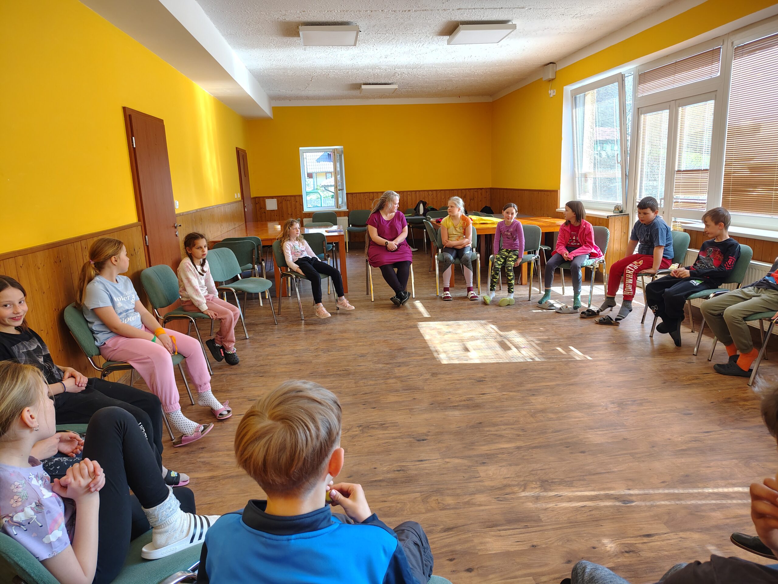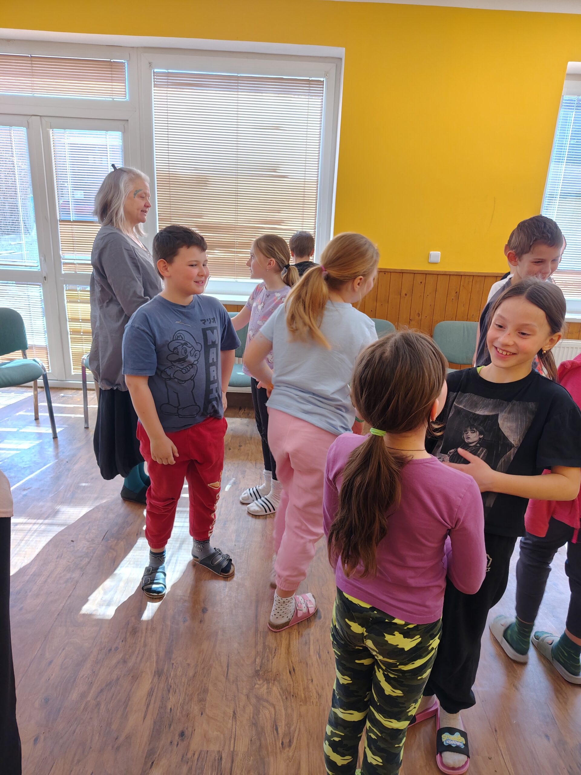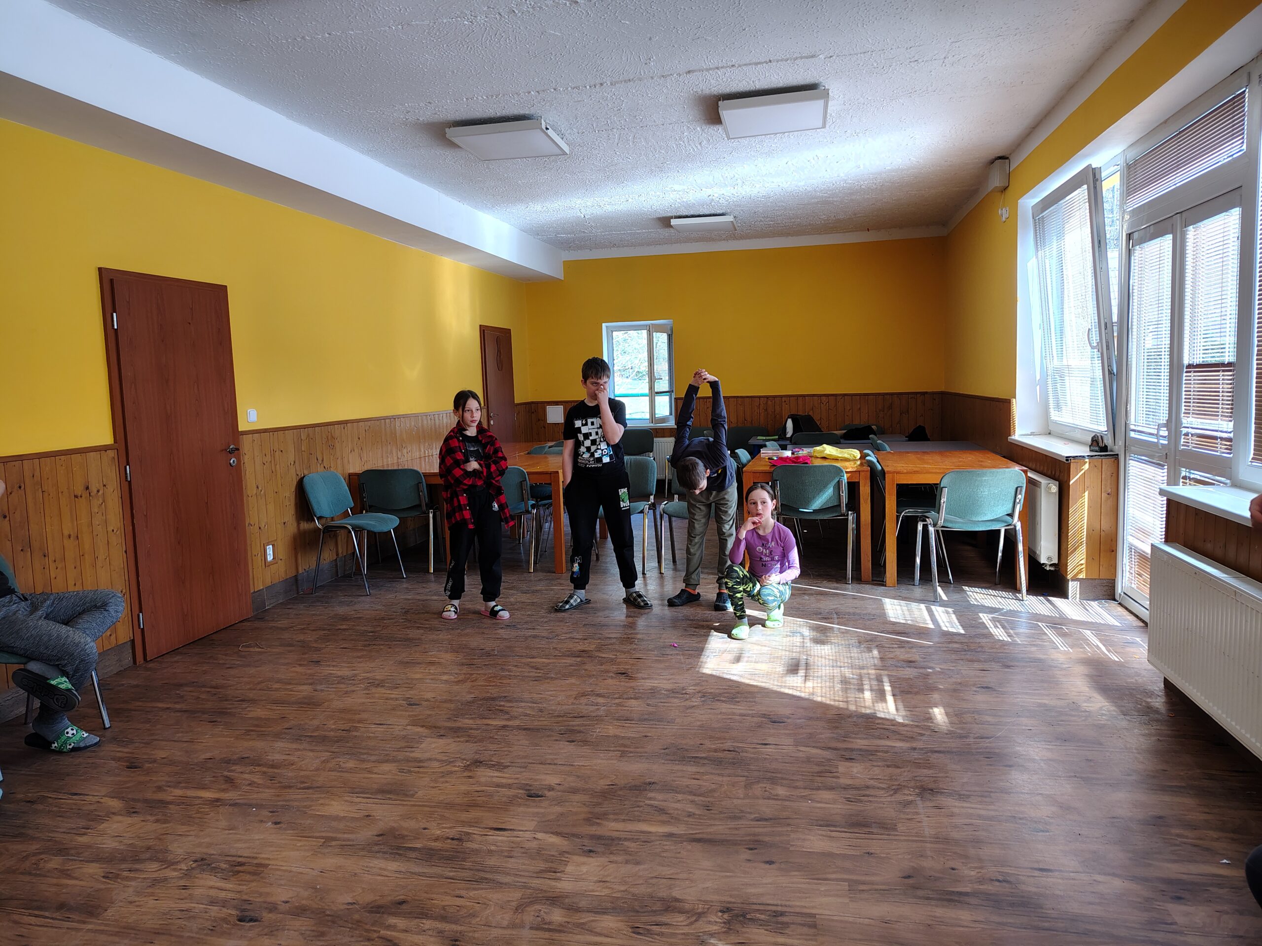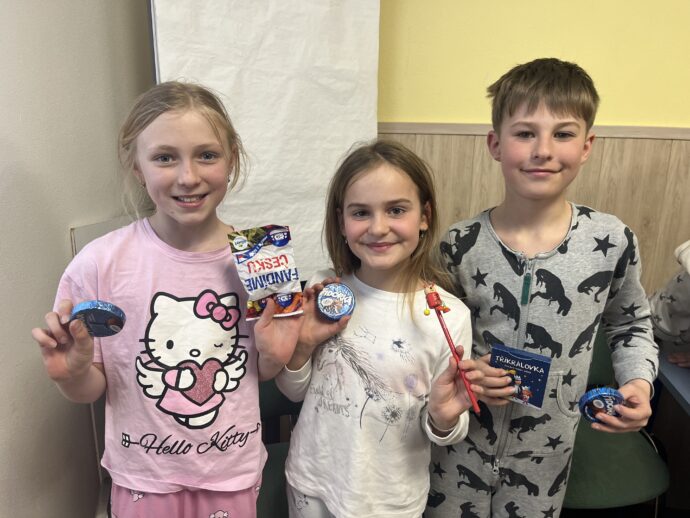 Dnes dopoledne jsme se nejprve ponořili do tajů země Biland a počítali groše. Jestli se dopočítáme, zjistíme až zítra. Pak nás čekaly drama dílny s tématem „Blbá Vendula“, podle stejnojmenné knihy. Děti si vyzkoušely živé obrazy i hraní scének. Po dobrém obědě a odpoledním klidu jsme plnili další olympijskou disciplínu – skoky v pytli. Nejrychlejšími skokany byli Anežka, Kuba B. , Juditka a Júlinka. Chtěli jsme stihnout i veselou štafetu s přenášením mouky, ale vítr nám ji rozfoukal. Možná zítra změníme přenášený materiál a povede se to.