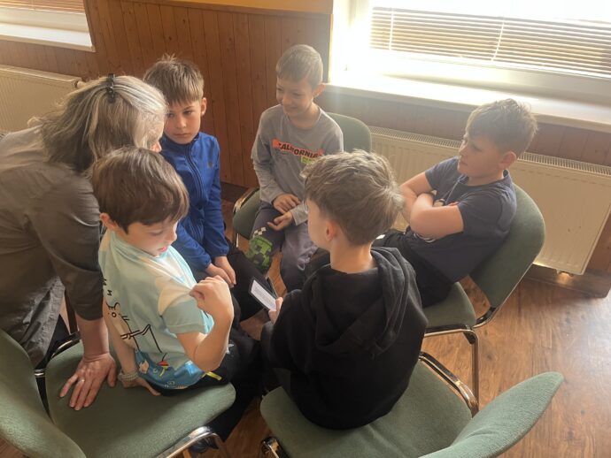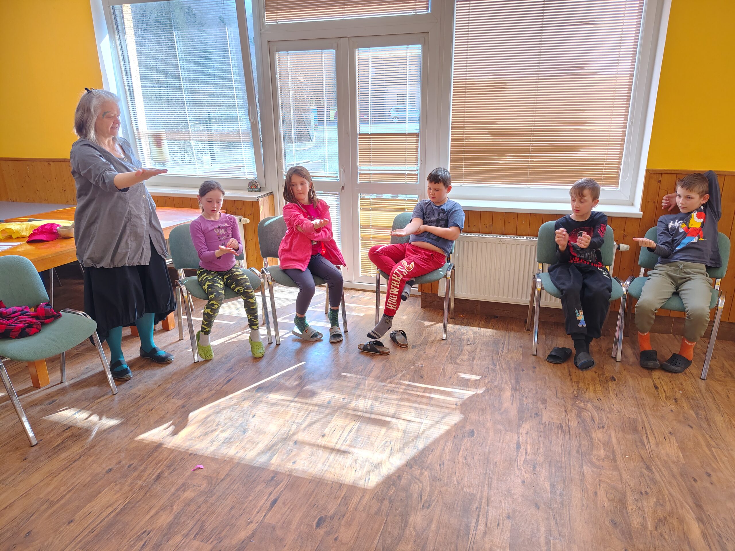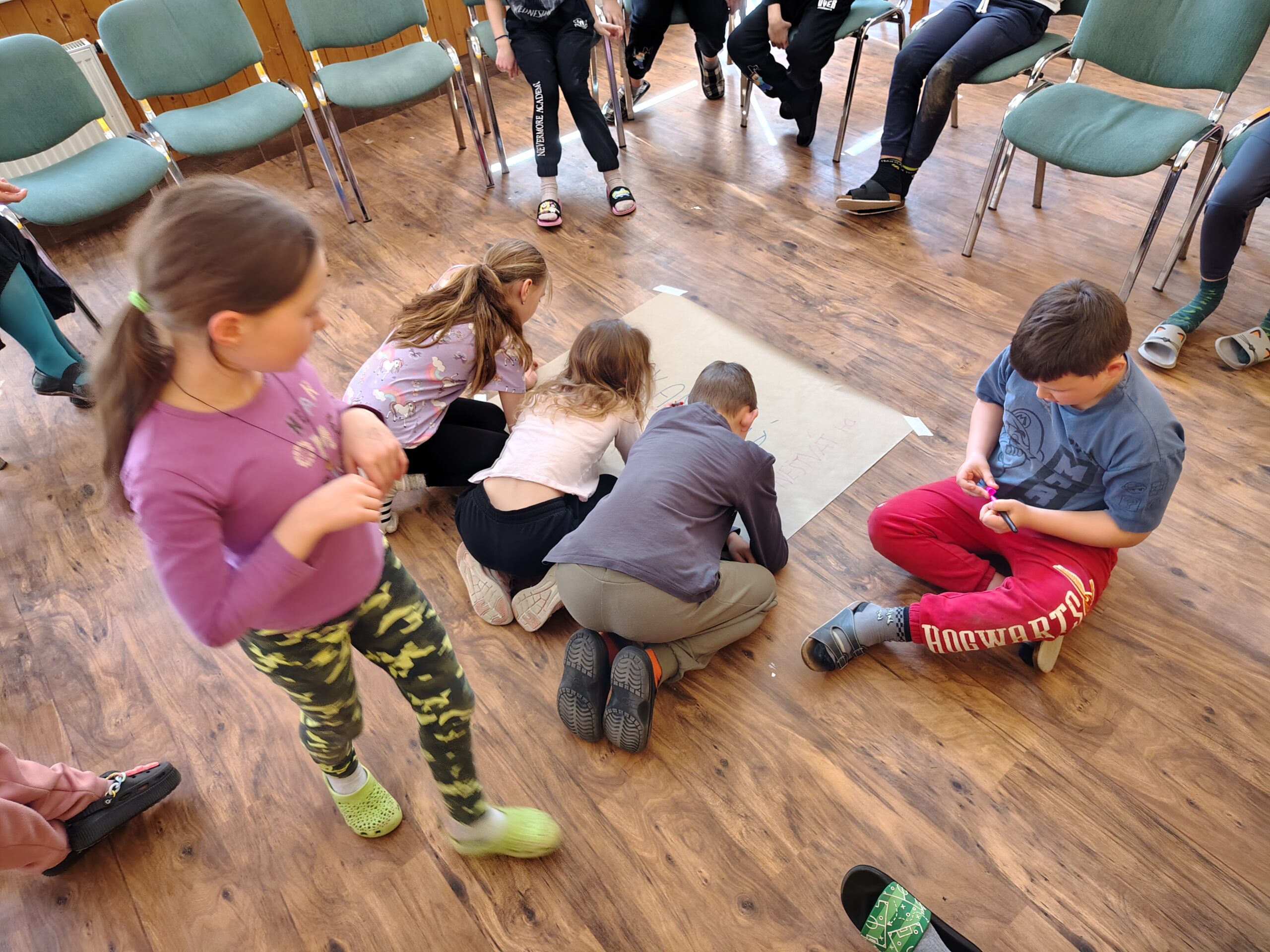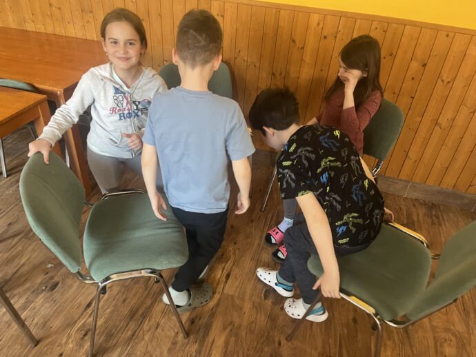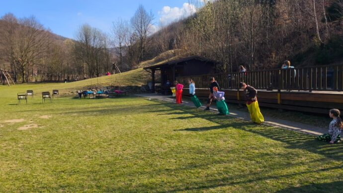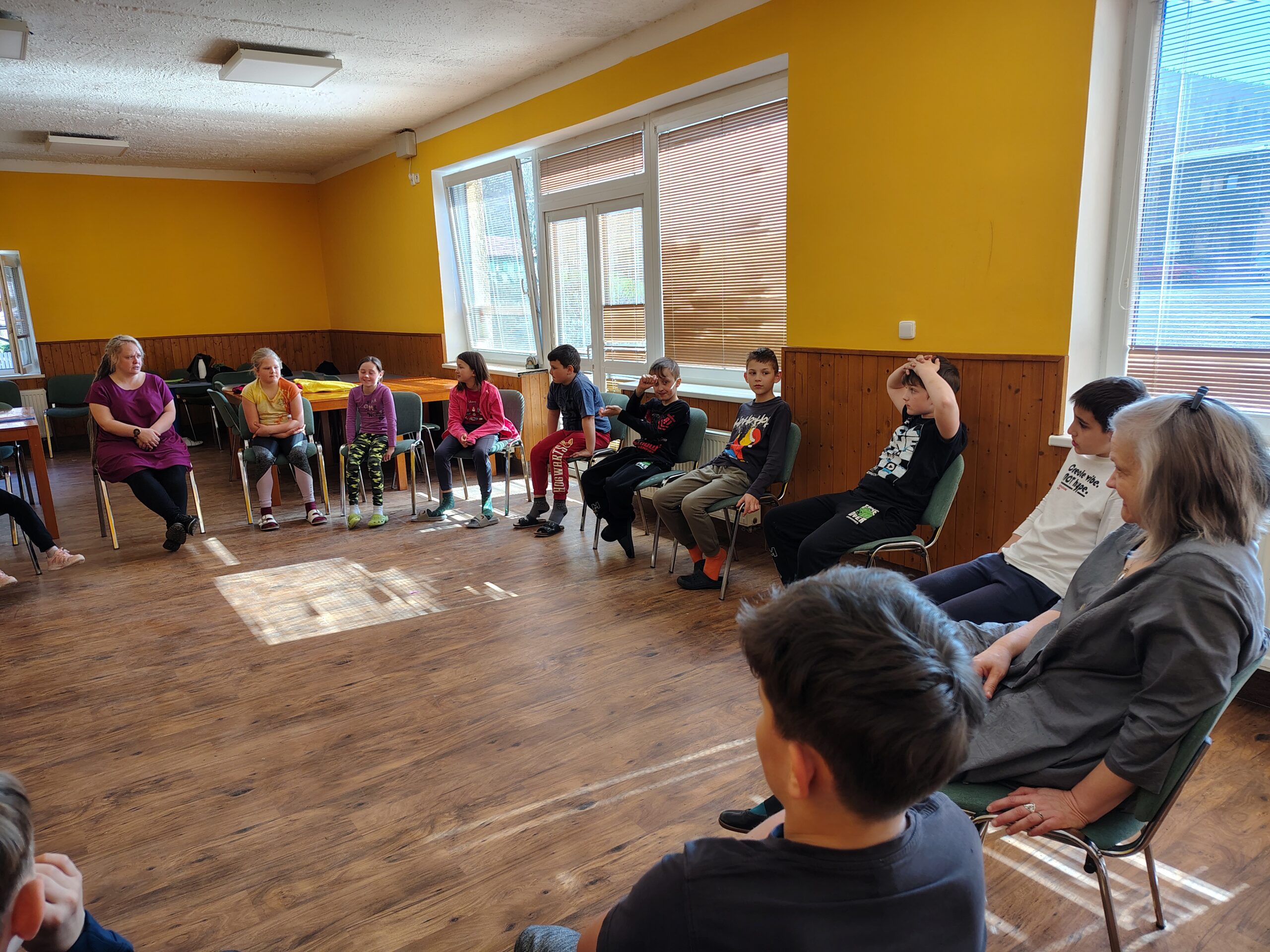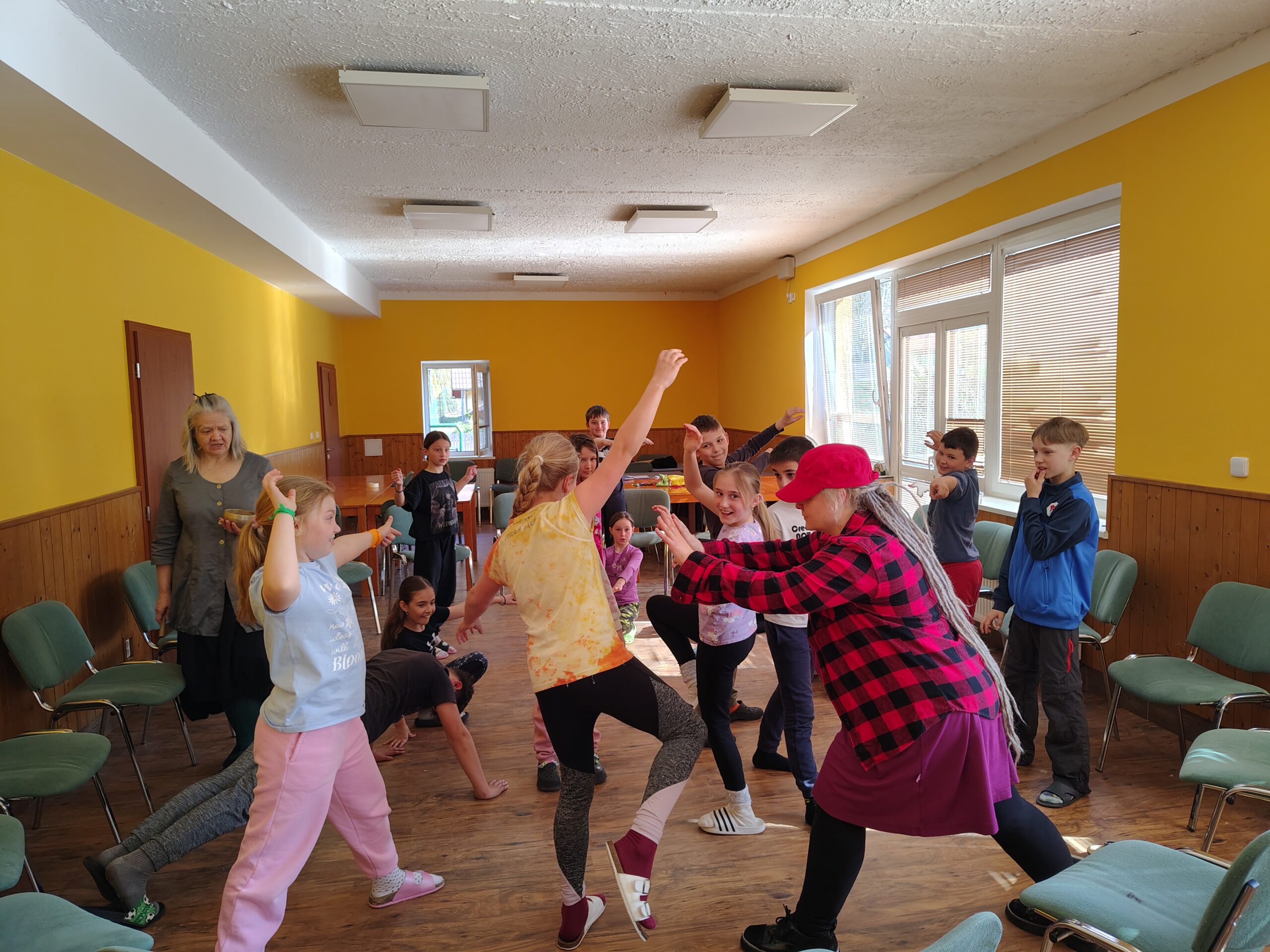 Dnes dopoledne jsme se nejprve ponořili do tajů země Biland a počítali groše. Jestli se dopočítáme, zjistíme až zítra. Pak nás čekaly drama dílny s tématem „Blbá Vendula“, podle stejnojmenné knihy. Děti si vyzkoušely živé obrazy i hraní scének. Po dobrém obědě a odpoledním klidu jsme plnili další olympijskou disciplínu – skoky v pytli. Nejrychlejšími skokany byli Anežka, Kuba B. , Juditka a Júlinka. Chtěli jsme stihnout i veselou štafetu s přenášením mouky, ale vítr nám ji rozfoukal. Možná zítra změníme přenášený materiál a povede se to.