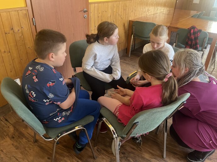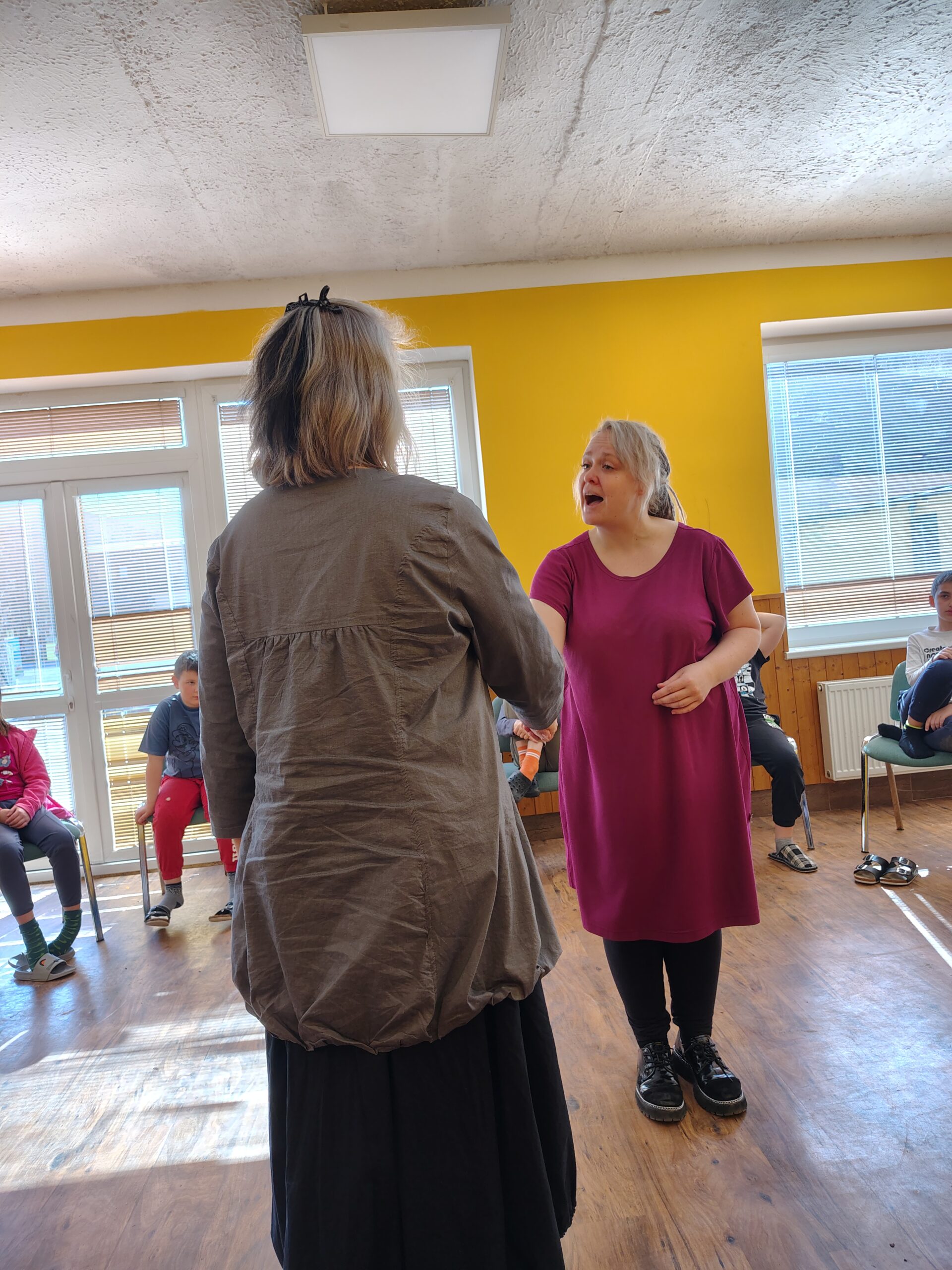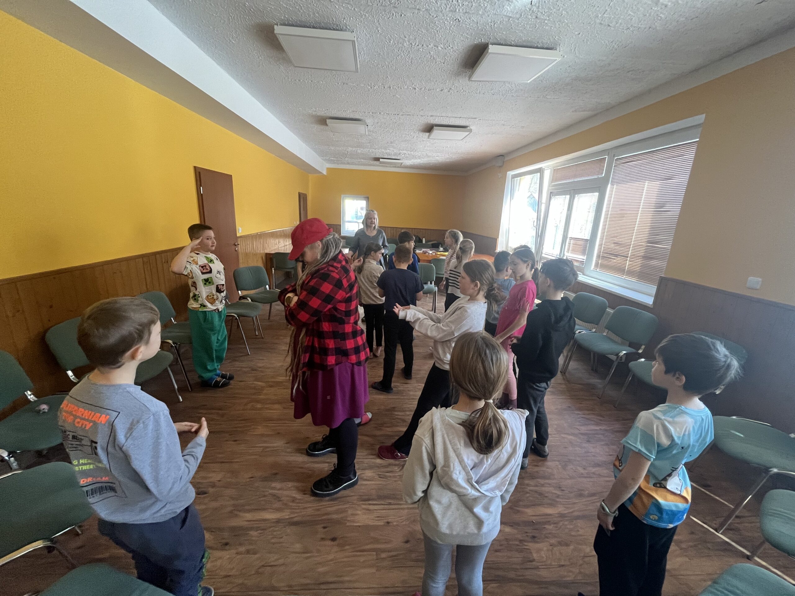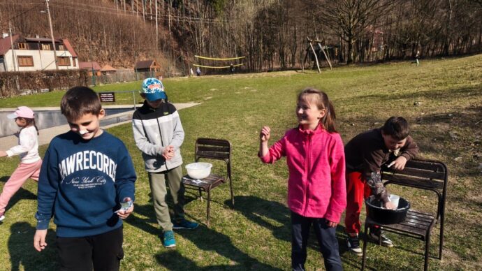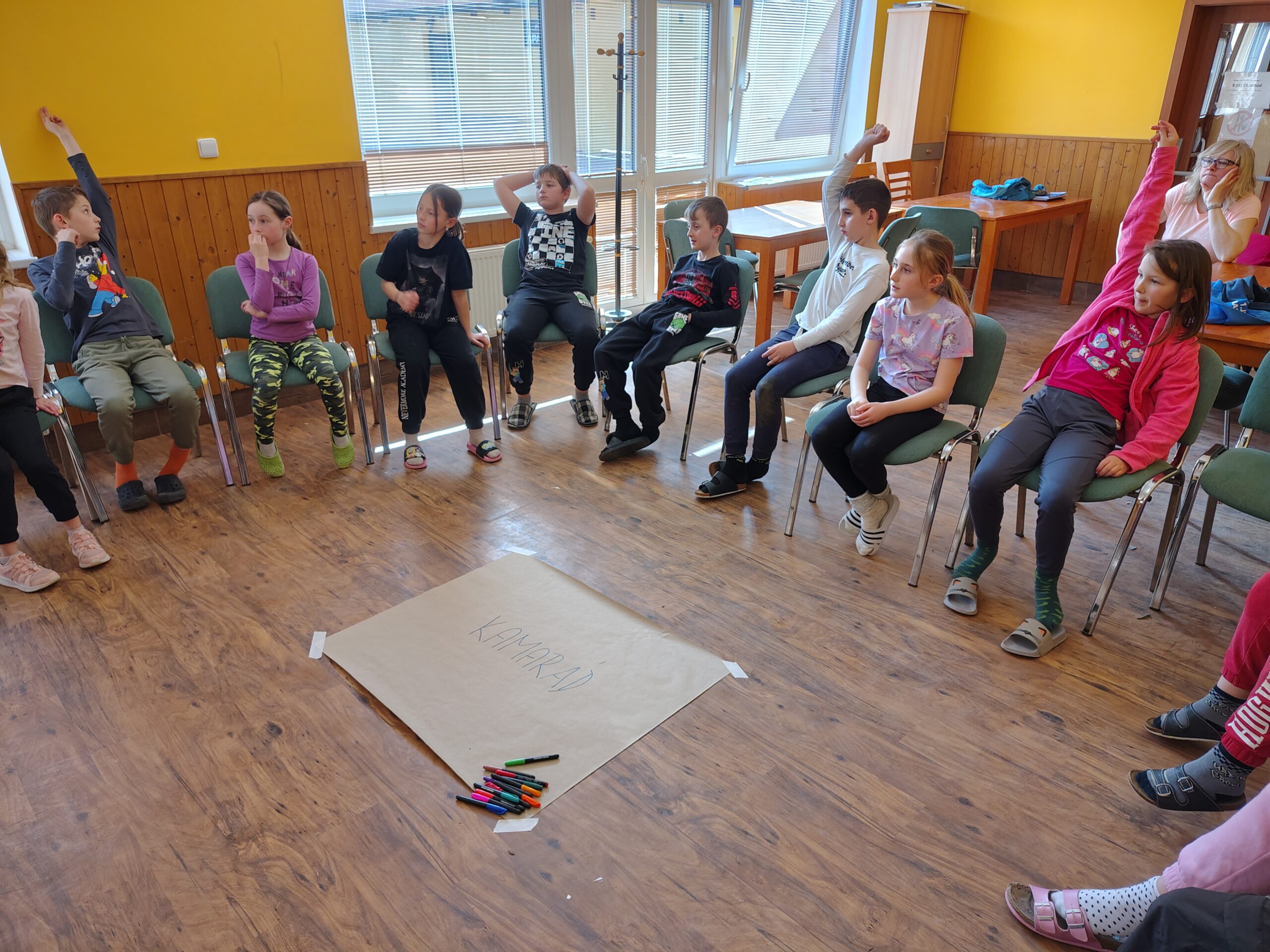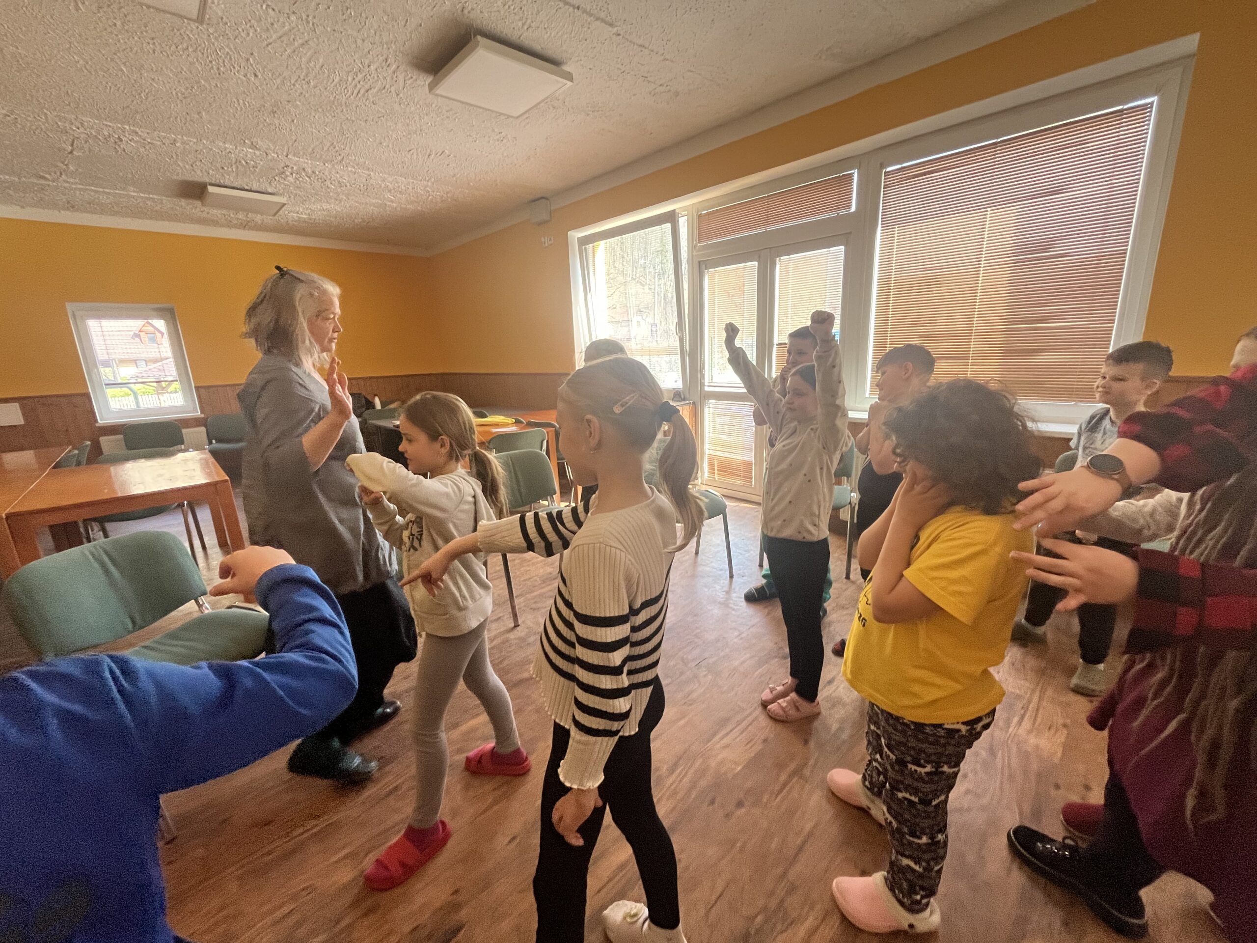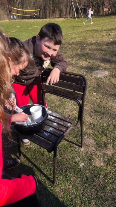 Dnes dopoledne jsme se nejprve ponořili do tajů země Biland a počítali groše. Jestli se dopočítáme, zjistíme až zítra. Pak nás čekaly drama dílny s tématem „Blbá Vendula“, podle stejnojmenné knihy. Děti si vyzkoušely živé obrazy i hraní scének. Po dobrém obědě a odpoledním klidu jsme plnili další olympijskou disciplínu – skoky v pytli. Nejrychlejšími skokany byli Anežka, Kuba B. , Juditka a Júlinka. Chtěli jsme stihnout i veselou štafetu s přenášením mouky, ale vítr nám ji rozfoukal. Možná zítra změníme přenášený materiál a povede se to.