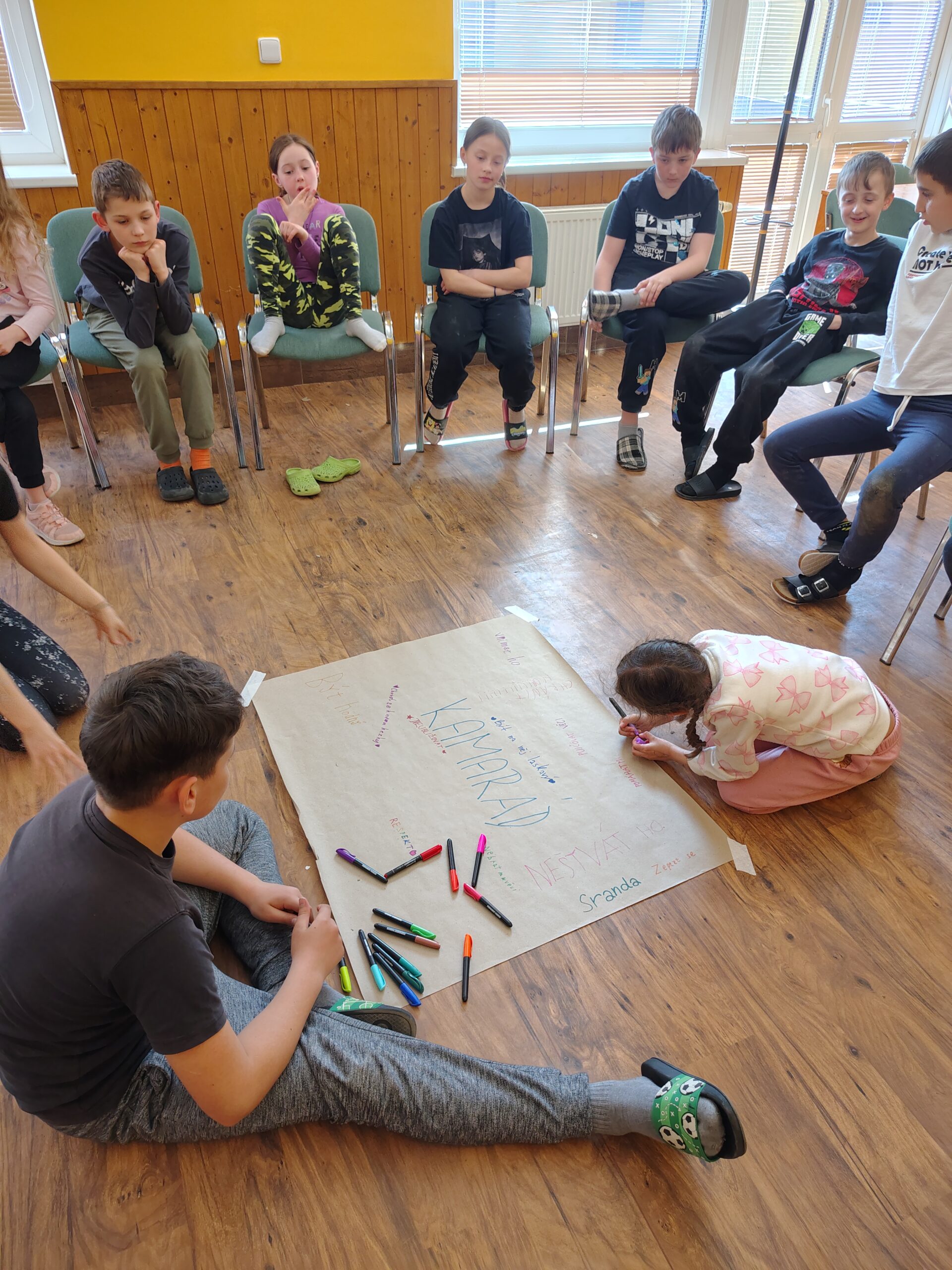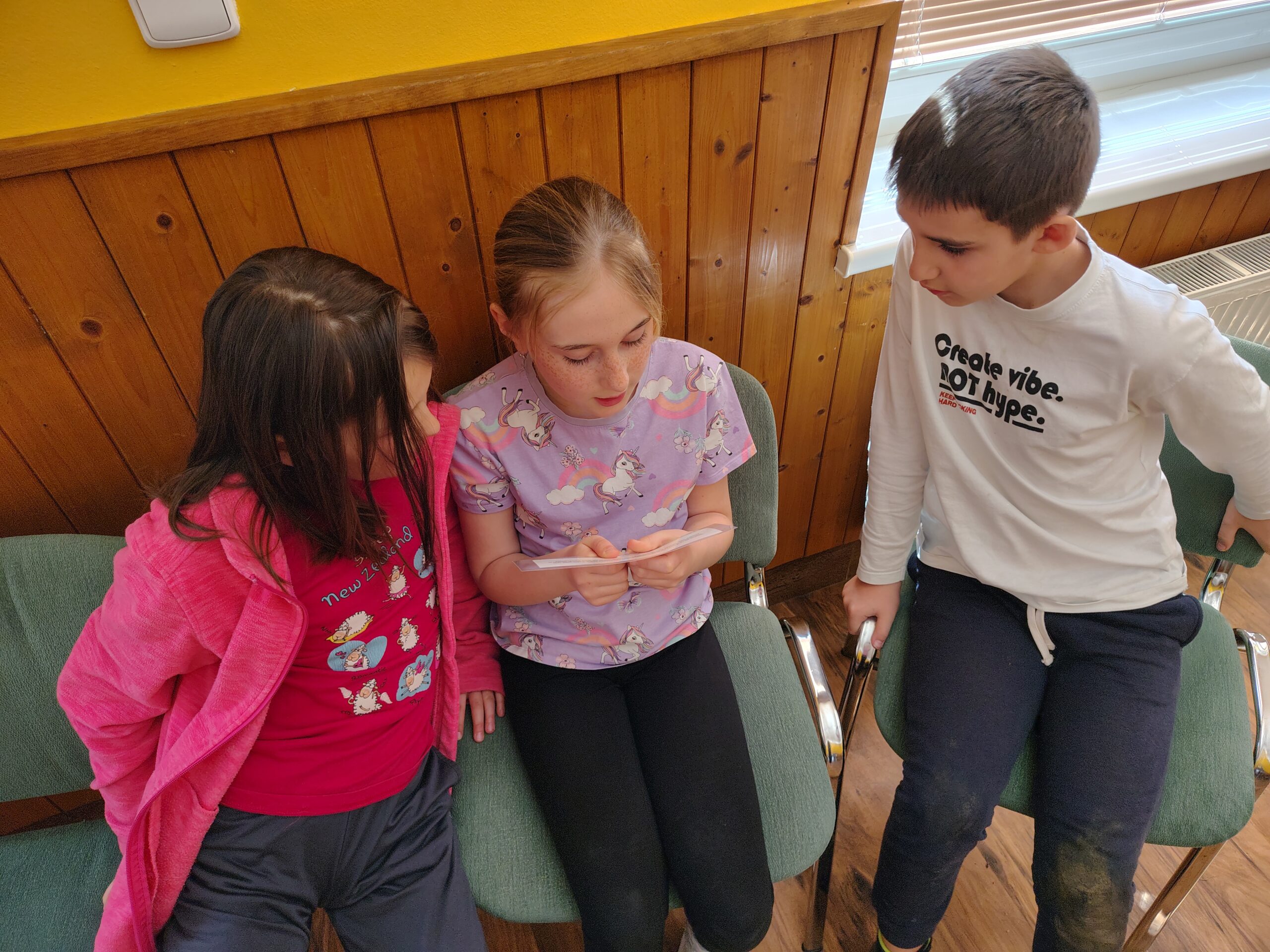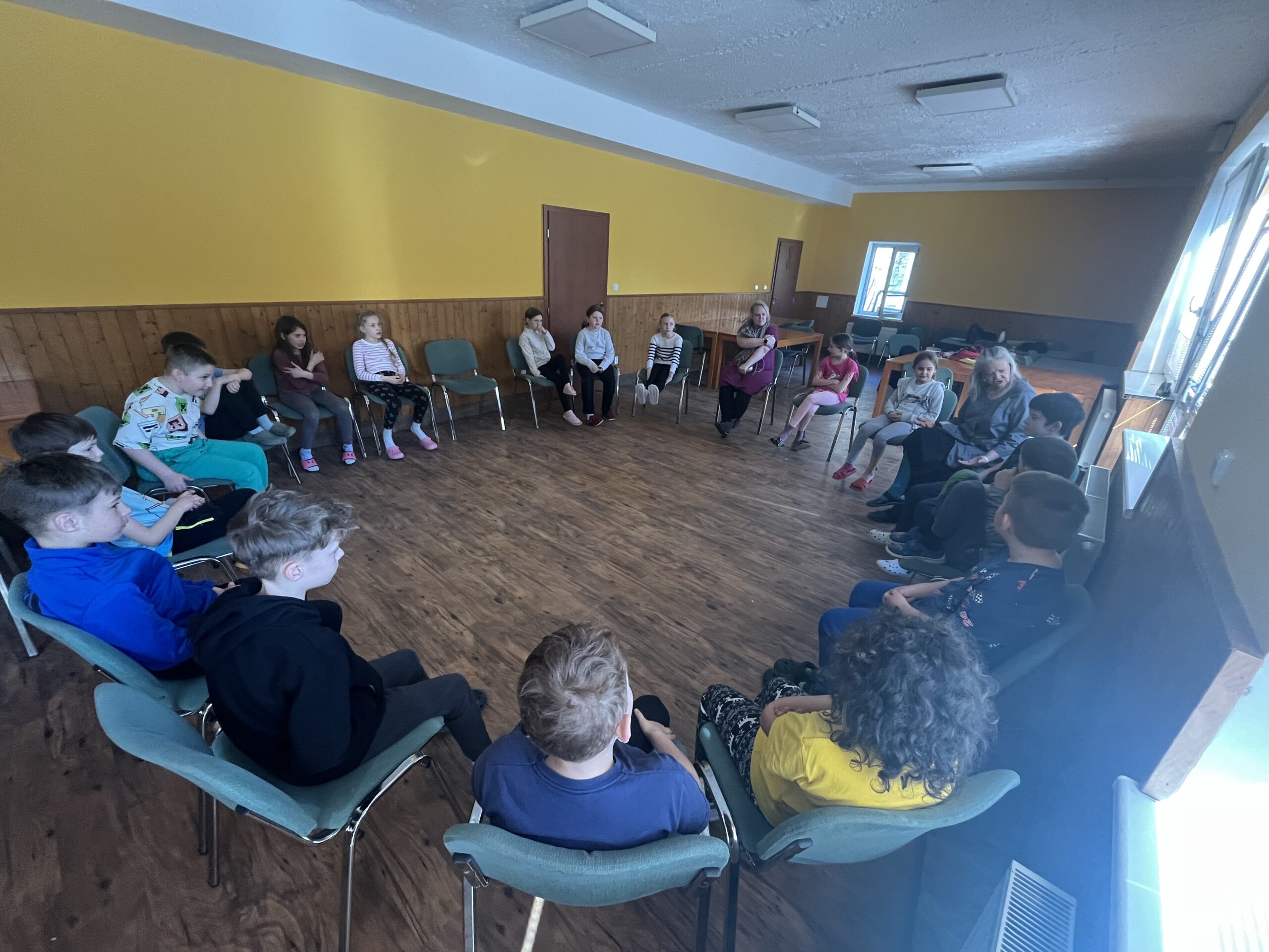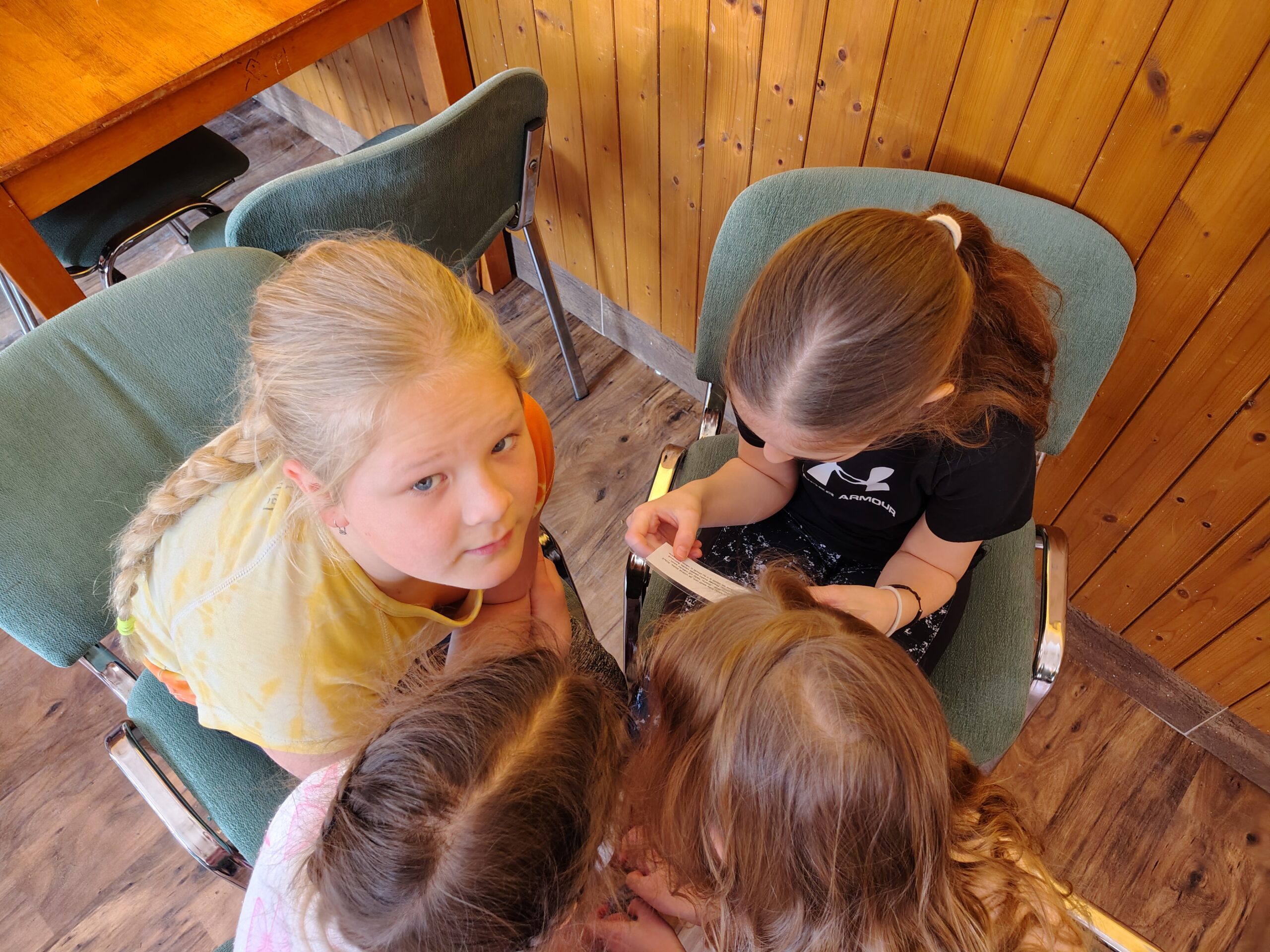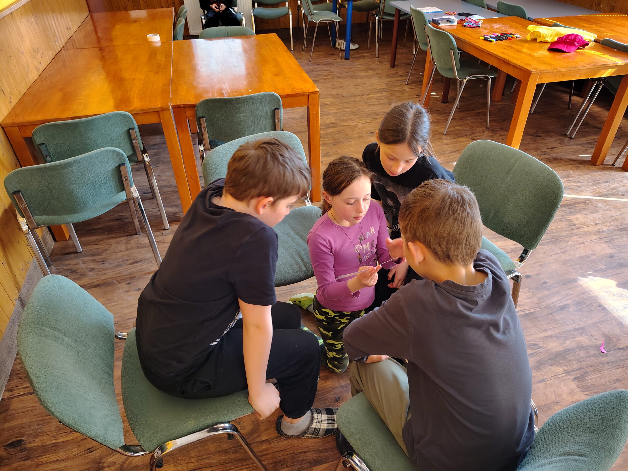 Dnešní ráno jsme zahájili návštěvou země Biland a hledali jsme kouzlo. Někdo objevil, někdo ještě pátrá. V olympijském desetiboji jsme si vyzkoušeli prkno. Nejúspěšnějšími byli Magda, Hanka, Honza a Júlča. Pak jsme se odebrali do nafukovací kopule mobilního planetária a shlédli jsme příběh Ze života stromu. Bylo to fascinující, všichni se zaujetím sledovali příběh v naprostém tichu. Děti byly úžasné. Pak ve skupinkách tvořily listnatý strom a to bylo vše, co jsme před obědem stihli. Odpoledne nás čeká běhání, skákání a luštění šifer.