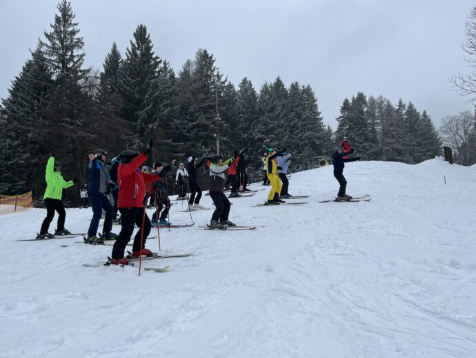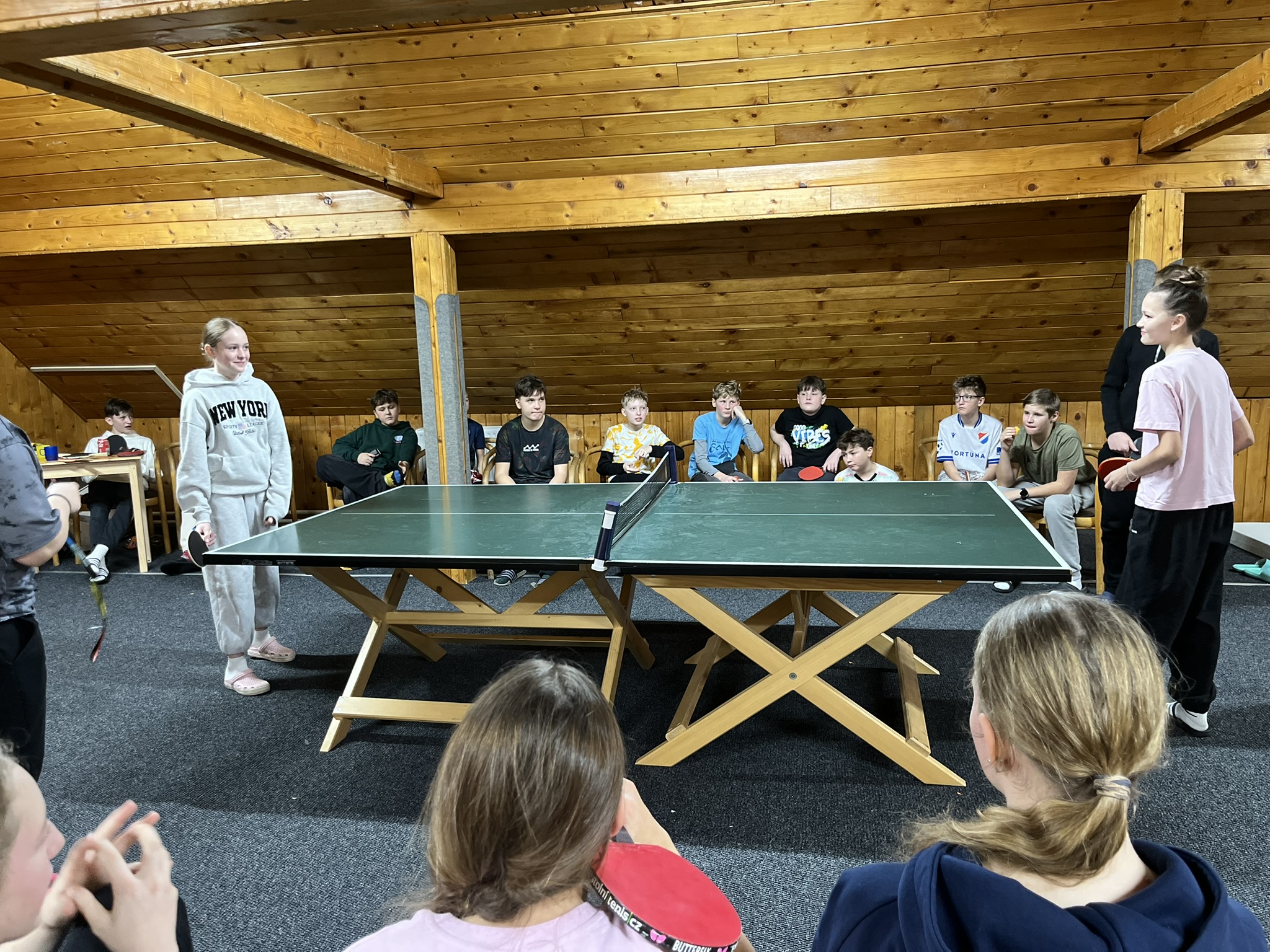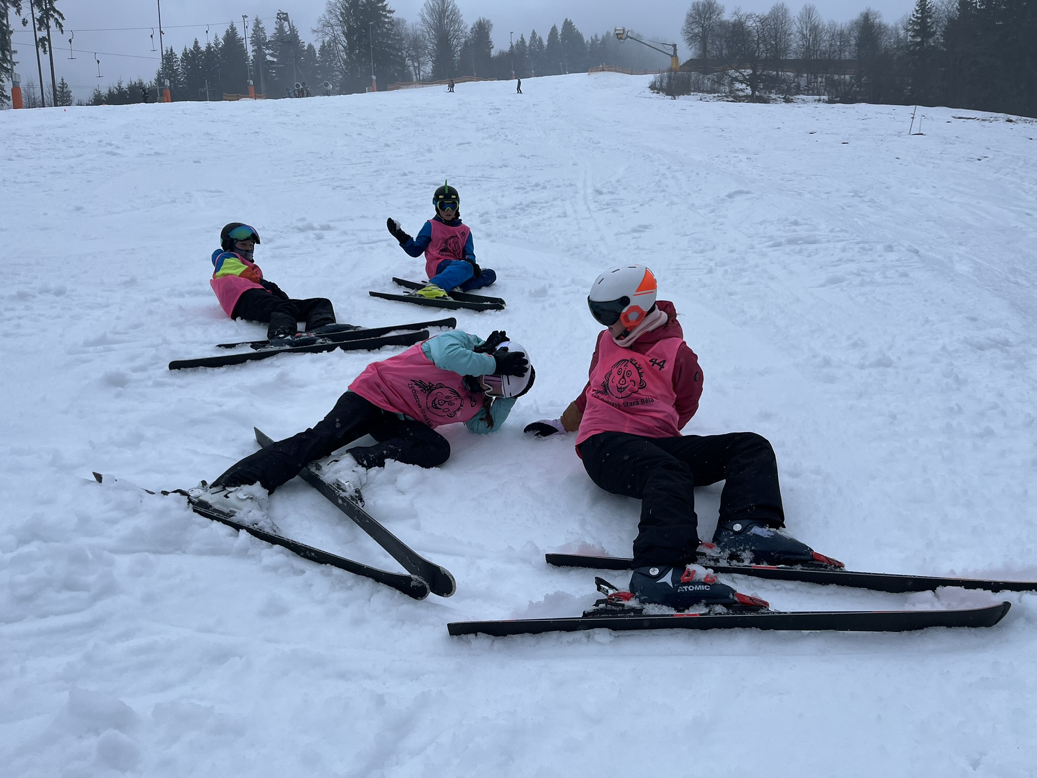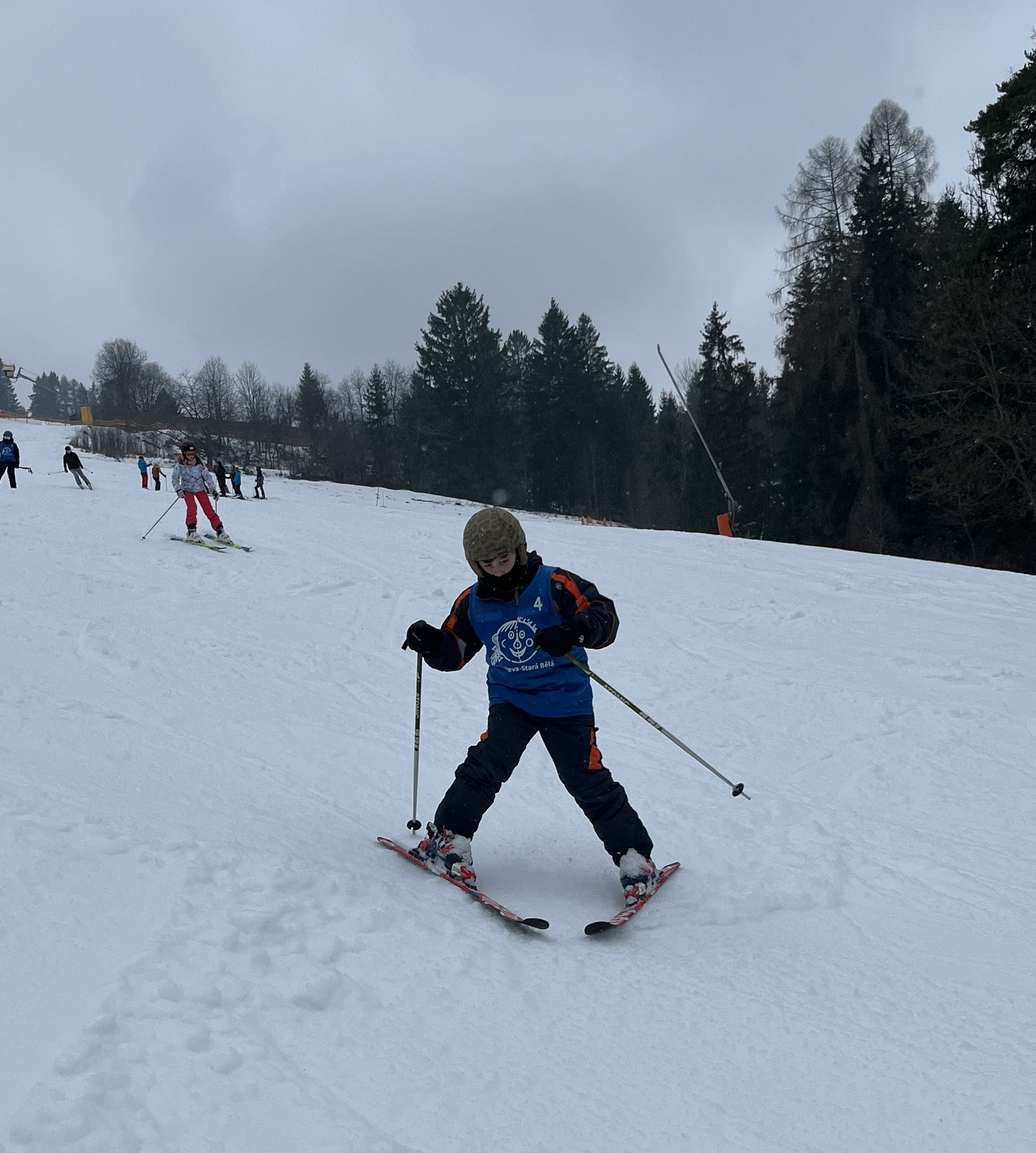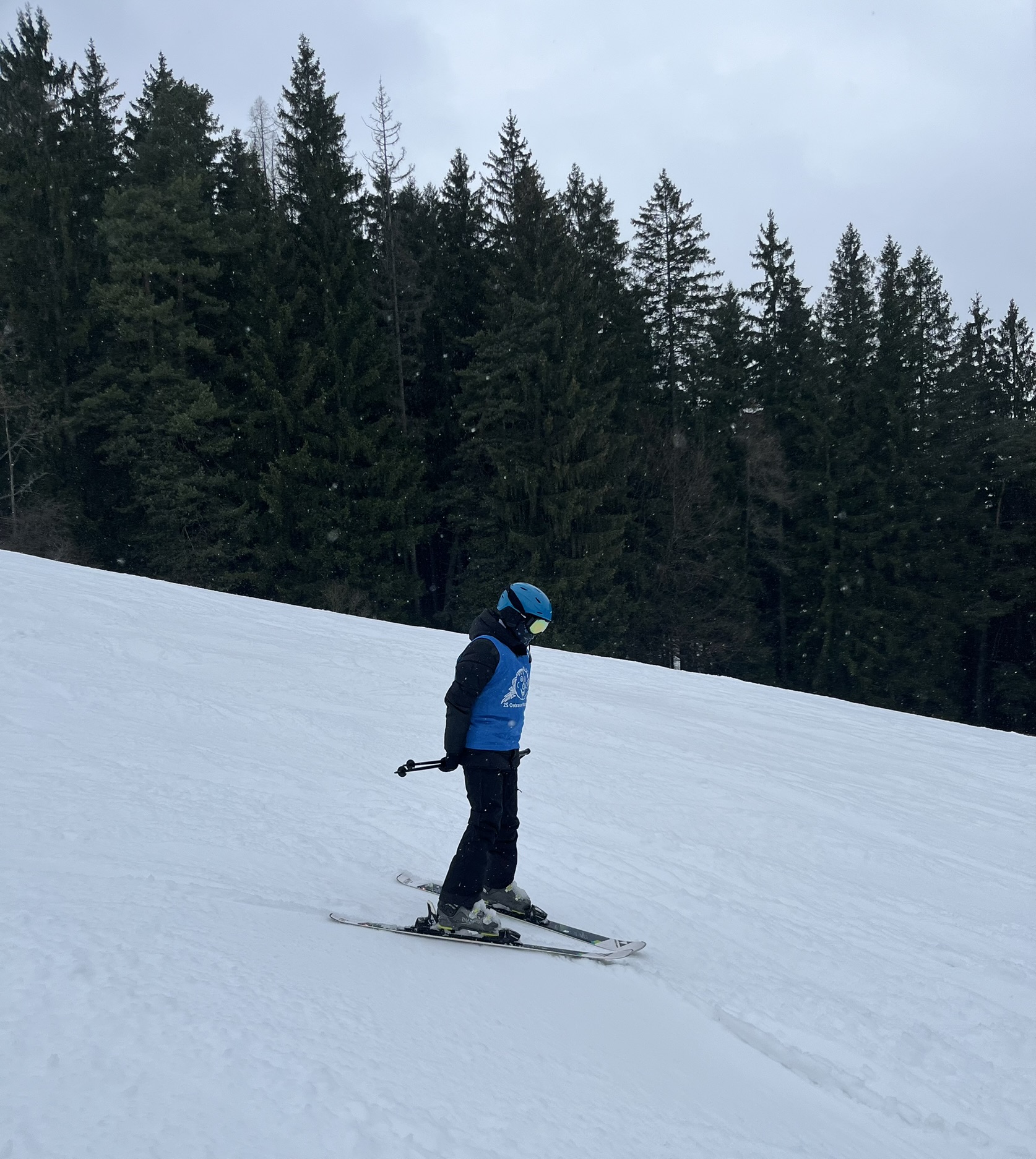 Zdravíme z Kyčerky! Dnešní den byl oblačný – sněžilo a hory ukázaly svou zimní tvář. Děti udělaly obrovské pokroky, především naši začínající lyžaři, kteří už všichni zvládli jízdu na velkém kopci na kotvě a sjeli ho plynule a s úsměvem. Postupně jsme také zahájili přípravy na zítřejší závody, na které se všichni moc těší. Odpoledne jsme si zpestřili turnajem ve stolním tenise – účast byla opravdu hojná a výkony překvapivě vysoké. Všichni jsou v pořádku a v dobré náladě.
