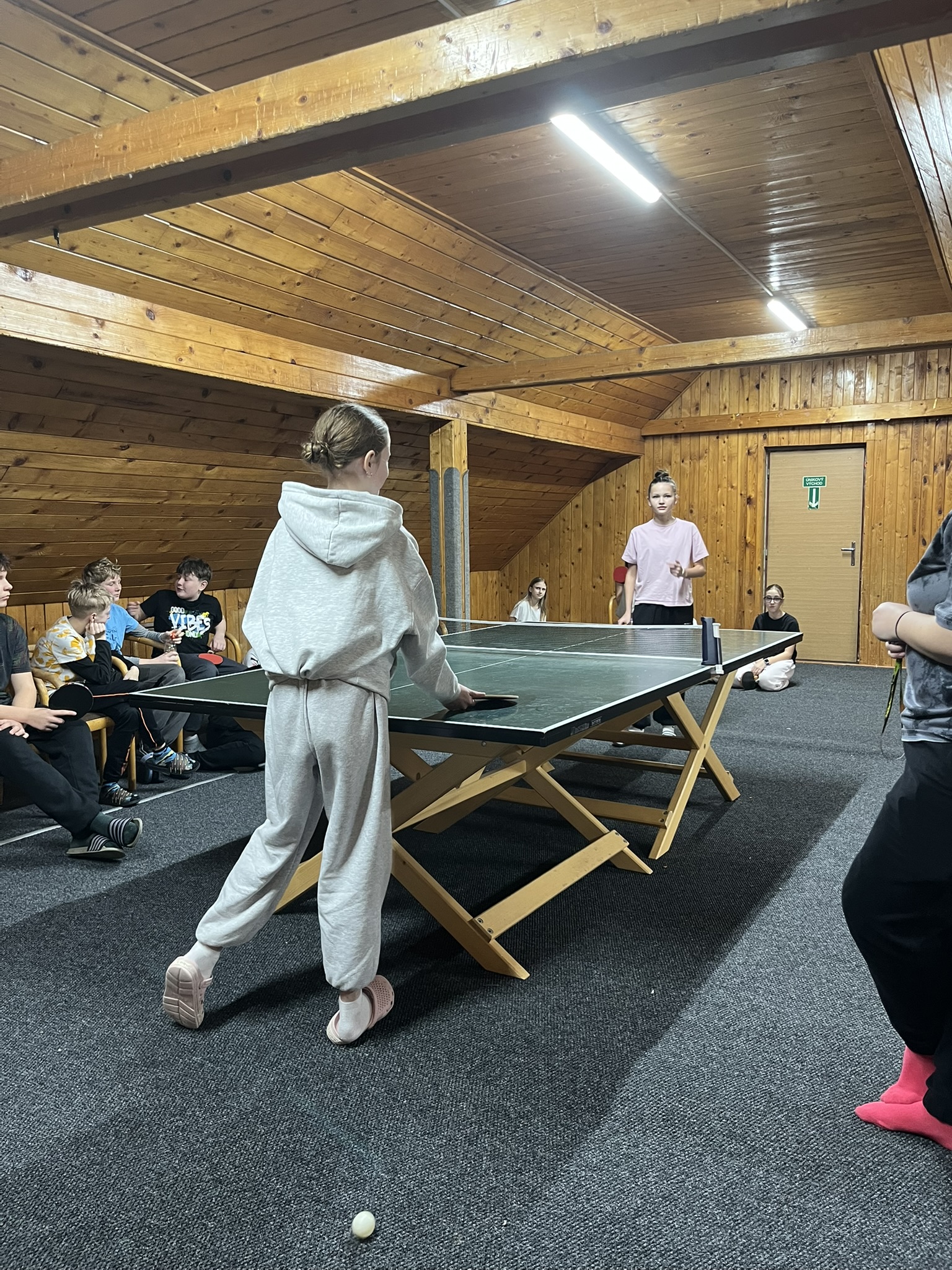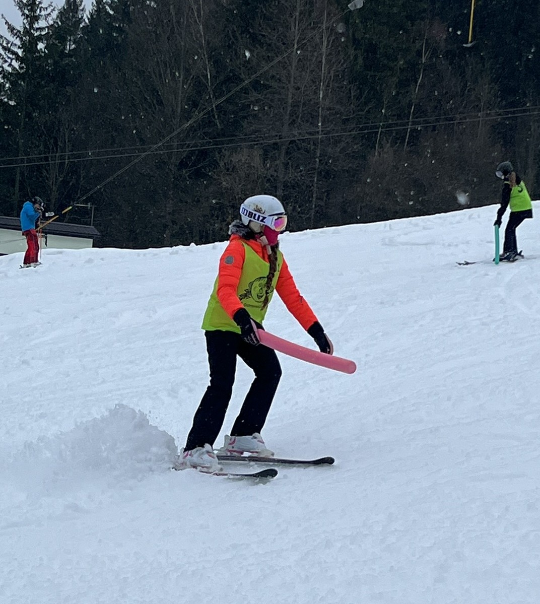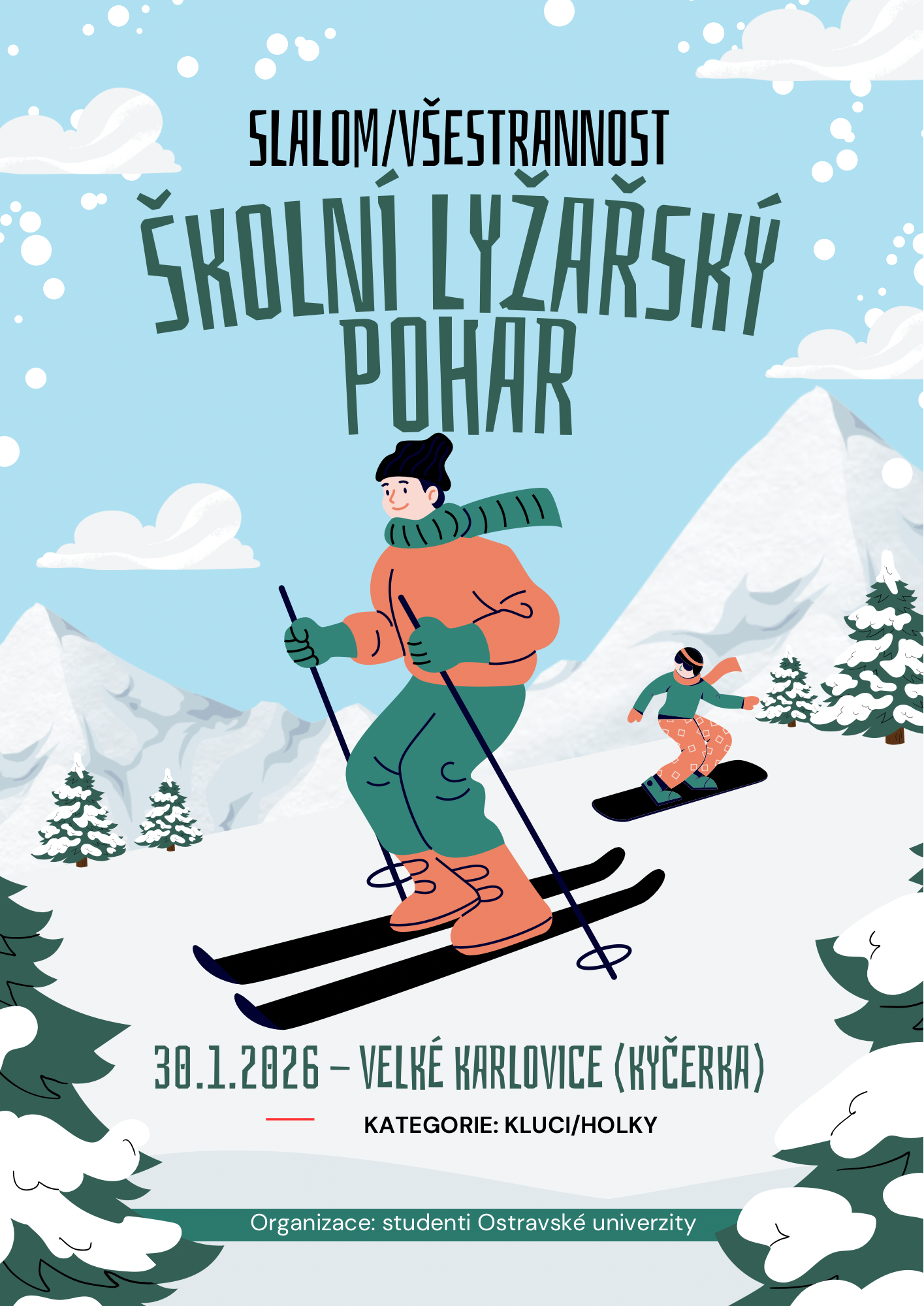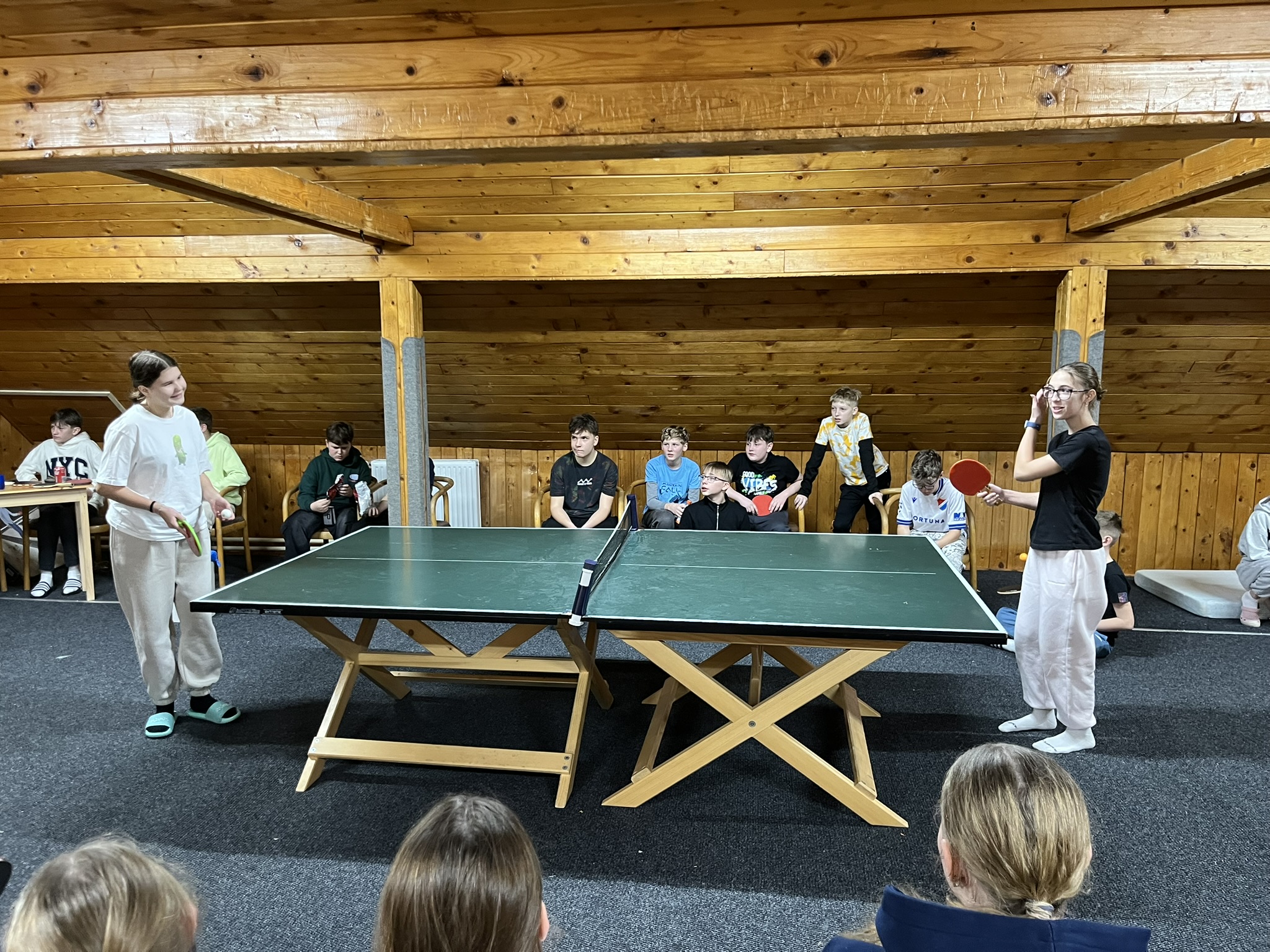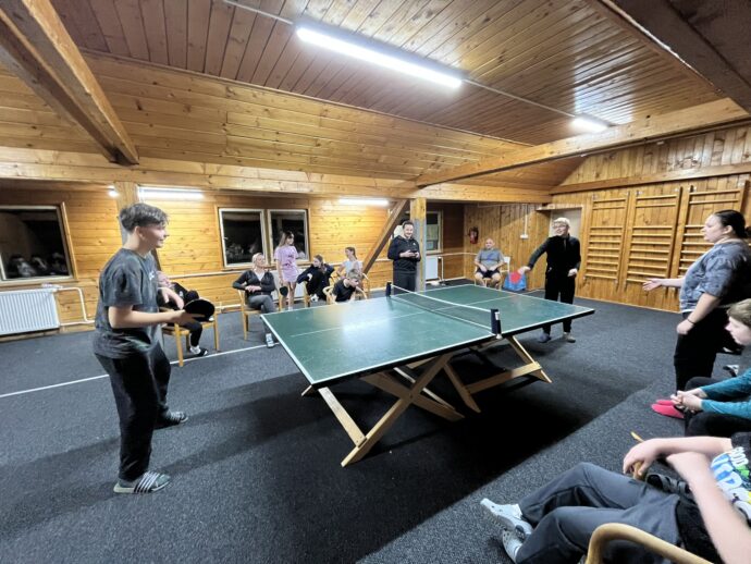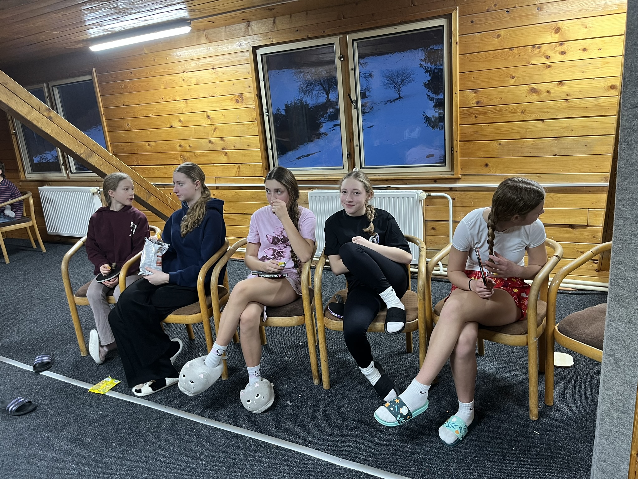 Zdravíme z Kyčerky! Dnešní den byl oblačný – sněžilo a hory ukázaly svou zimní tvář. Děti udělaly obrovské pokroky, především naši začínající lyžaři, kteří už všichni zvládli jízdu na velkém kopci na kotvě a sjeli ho plynule a s úsměvem. Postupně jsme také zahájili přípravy na zítřejší závody, na které se všichni moc těší. Odpoledne jsme si zpestřili turnajem ve stolním tenise – účast byla opravdu hojná a výkony překvapivě vysoké. Všichni jsou v pořádku a v dobré náladě.