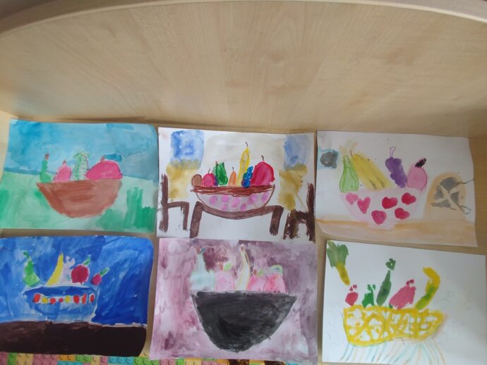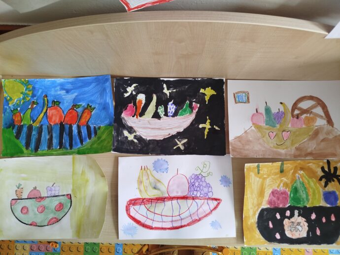 V letošním školním roce jsme se zaměřili na zdravý životní styl. Každý den jsme zpracovávali nějaké téma – jídlo, pití, zdravé návyky, pohyb a pěkné vztahy. Informace děti hledaly v encyklopediích, povídali jsme si či jsme sledovali zábavná videa na www.zdrava5.cz. Děkuji rodičům za suroviny na páteční tvoření v kuchyňce.
