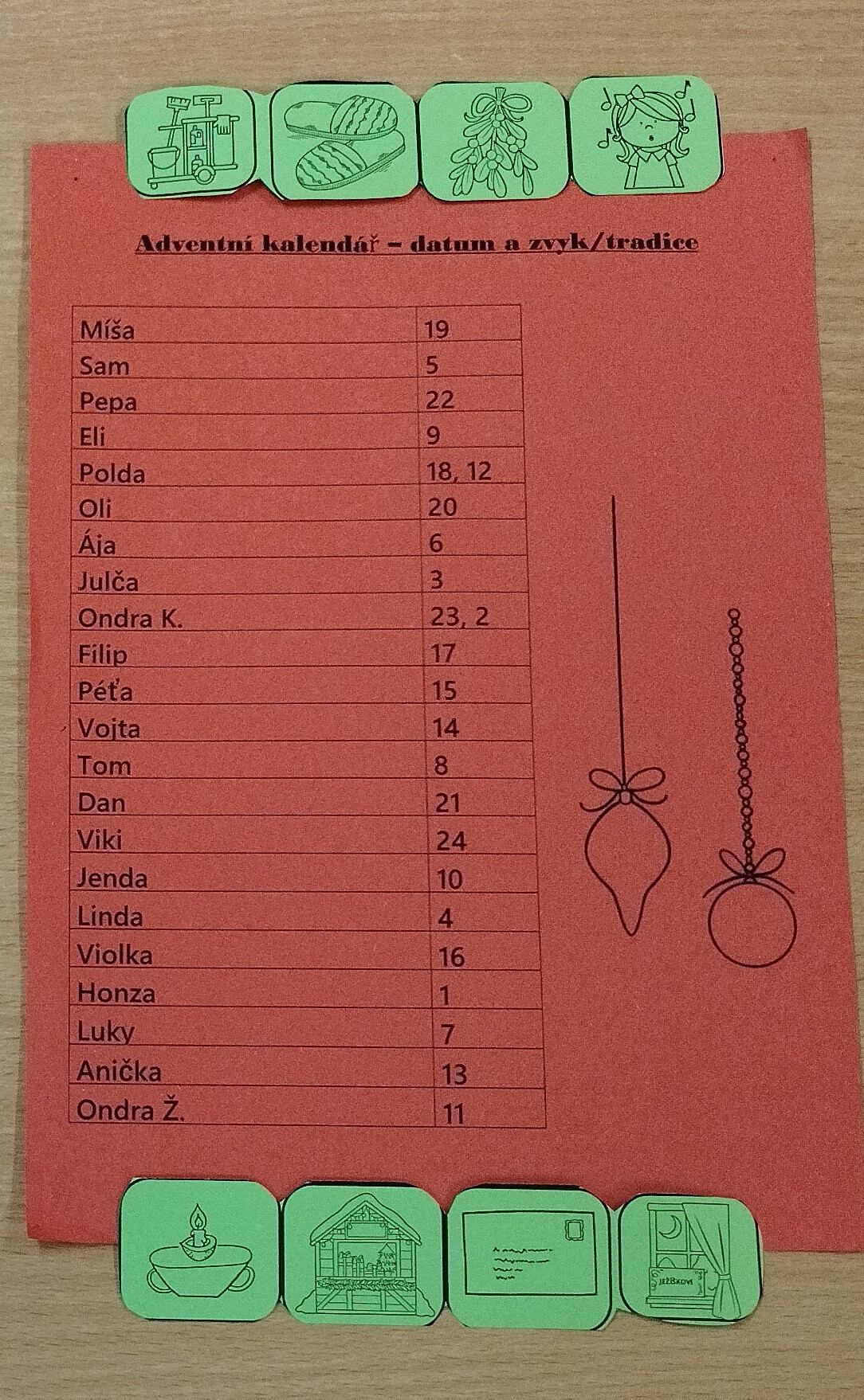 V průběhu prosince jsme plnili adventní úkoly a vyhodnotili je až po vánočních prázdninách: