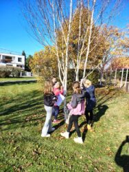 Za hezkého podzimního dne se dá malovat i venku. Zjišťovali jsme názvy stromů, obkreslovali kůru a přiřazovali listy.