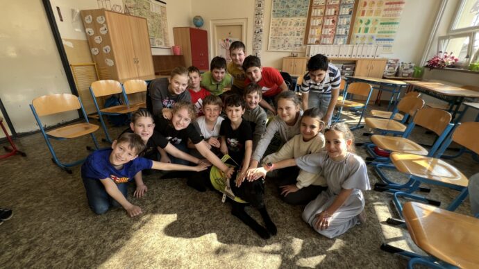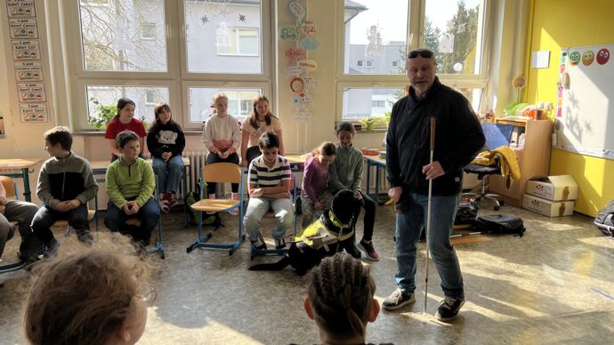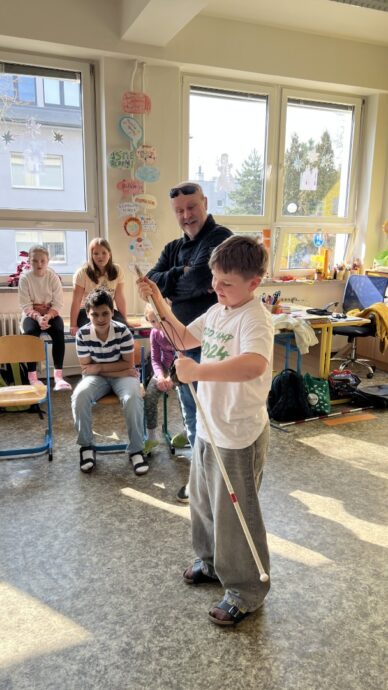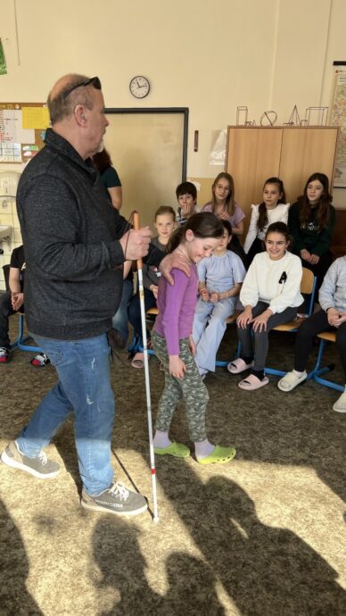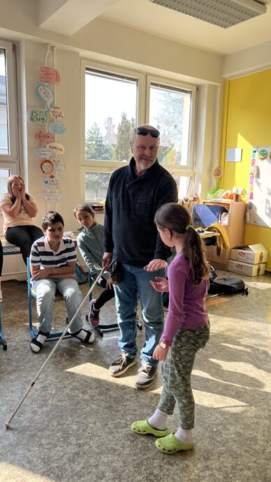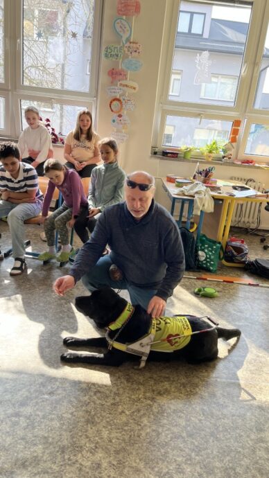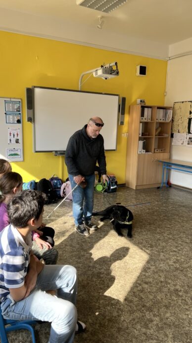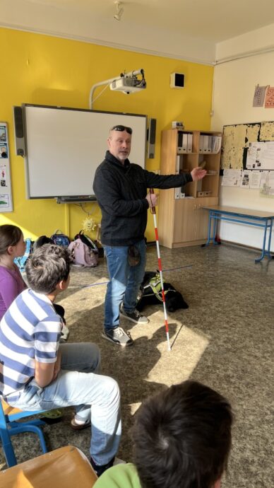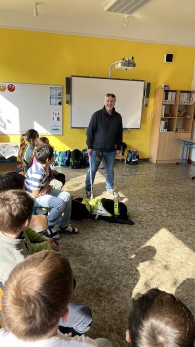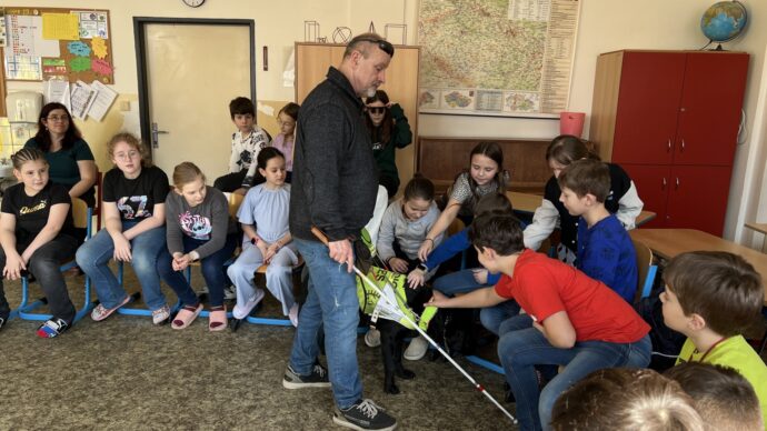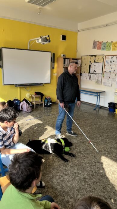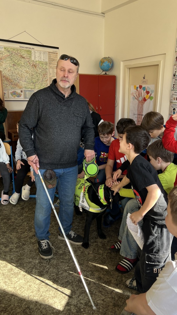 Dnes nás ve čtvrtých třídách navštívil pan Ladislav Holba se svým vodicím psem. Pan Holba si pro nás připravil povídání o životě s postižením, o důležitých pomůckách pro nevidomé, o životě s vodicím psem. Děti beseda velmi nadchla. Děkujeme:-).