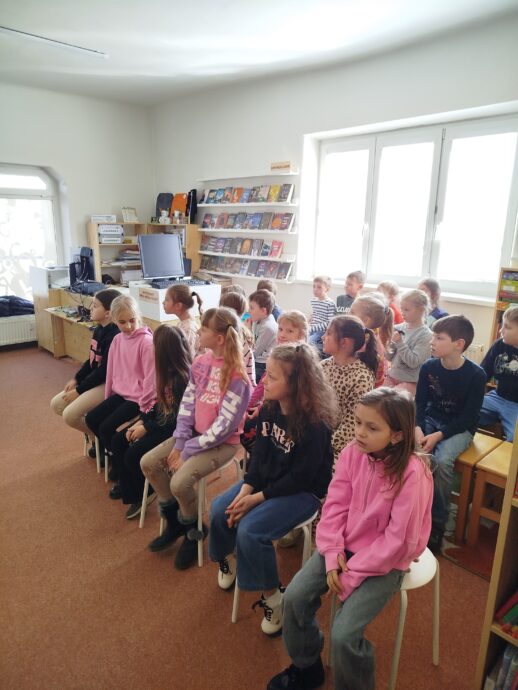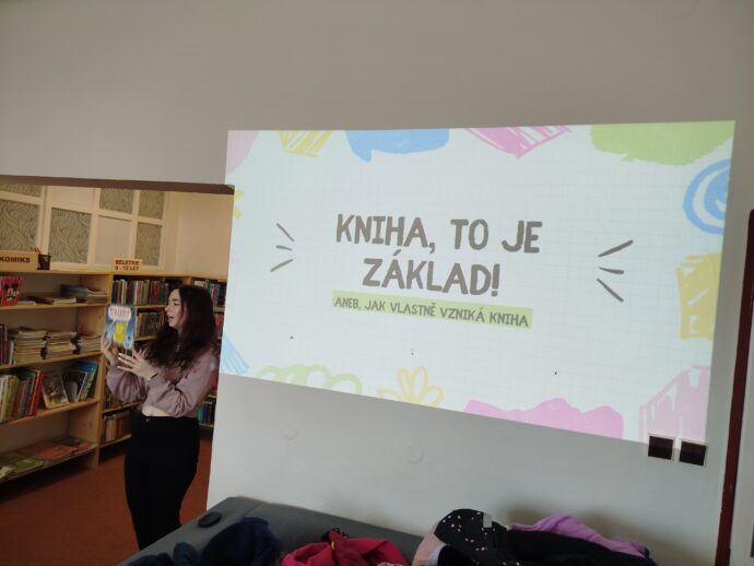 Jak vzniká kniha, od nápadu až po okamžik, než ji její budoucí čtenář bude mít u sebe, to jsme se dnes dozvěděli zábavnou formou z úst starobělské paní knihovnice. Za vyřešení kvízů nás čekala drobná odměna v podobě nálepky. Dětem se v knihovně moc líbilo.