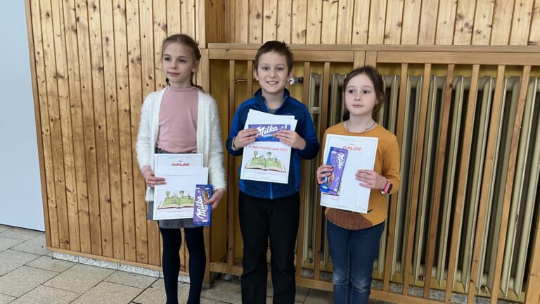 Pondělí nám začalo velmi akčně, účastnili jsme se školního kola recitační soutěže. Za naši třídu děkujeme Máje, Agátě a Kubovi za reprezentaci v kategorii 2. a 3. třídy. A také gratulujeme Agátě ke třetímu a Kubovi k prvnímu místu. 🙂