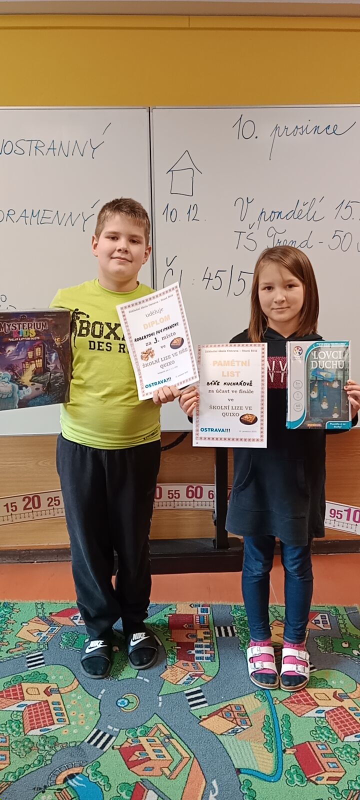 Mezi vítězi 2. a 3. tříd jsme měli své zastoupení. Gratulace Robertovi za 3. místo.