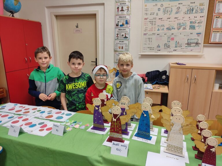 V úterý 9. prosince v podvečerních hodinách proběhl tradiční vánoční jarmark. Z vydělaných peněz si můžeme pořídit papírové utěrky do třídy a výkresy. Děkujeme rodičům za podporu při nákupu našich výrobků.