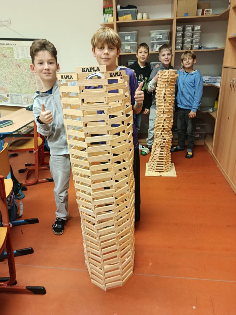 V hodinách pracovní výchovy si žáci 5. B vyzkoušeli práci mimo jiné i se stavebnicí Kapla. Ve čtyřech skupinách se pustili do stavění nejrůznějších konstrukcí – od jednoduchých věží až po propracované stavby. Aktivita byla skvělou příležitostí procvičit spolupráci, trpělivost, šikovnost i kreativitu. Každá skupina hledala vlastní postup, jak dosáhnout co nejzajímavější nebo nejvyšší a… číst dále…