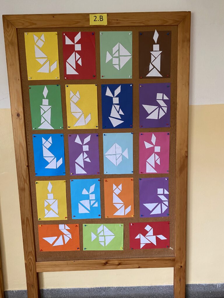V rámci pracovního vyučování jsme tvořili, navrhovali, stříhali a lepili tangramy.