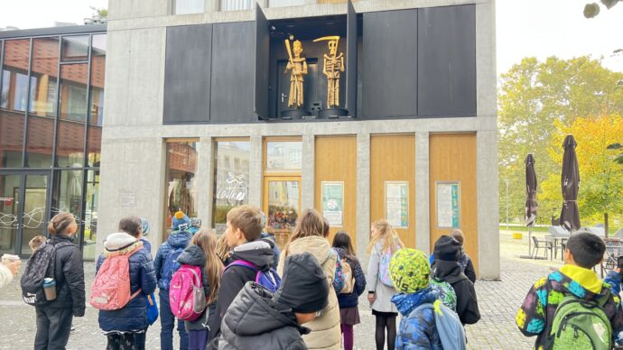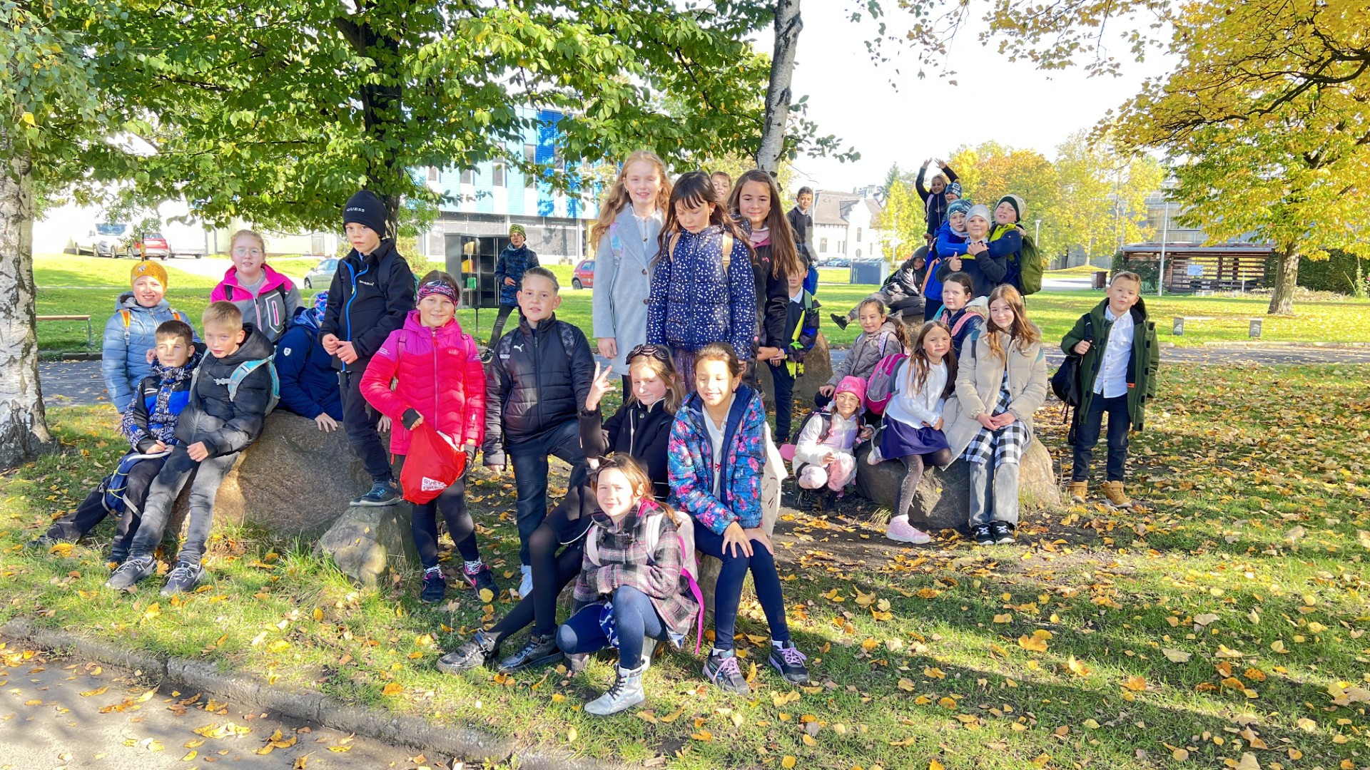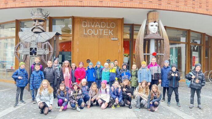 Dnes jsme se se třídou vydali do Divadla loutek na představení: „Kdo neskáče není holub.“