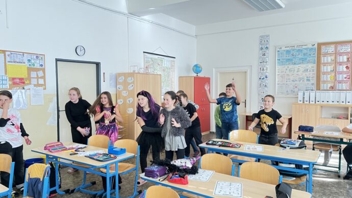 Nechybělo procvičení anglické slovní zásoby k tomuto tématu, nechyběly kostýmy ani dobrůtky.