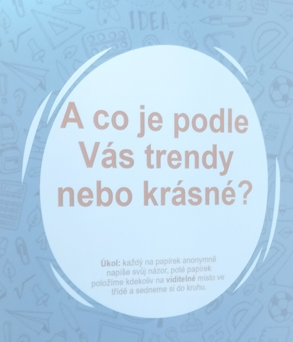 Program „Když se kouknu do zrcadla, co vidím?“ měl žákům odkrýt podstatu vzhledu a krásy. Ve skupinkách se snažili docílit vnímání celé osobnosti člověka a oceňovat na prvním místě jiné hodnoty, než jen vzhled.