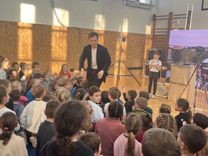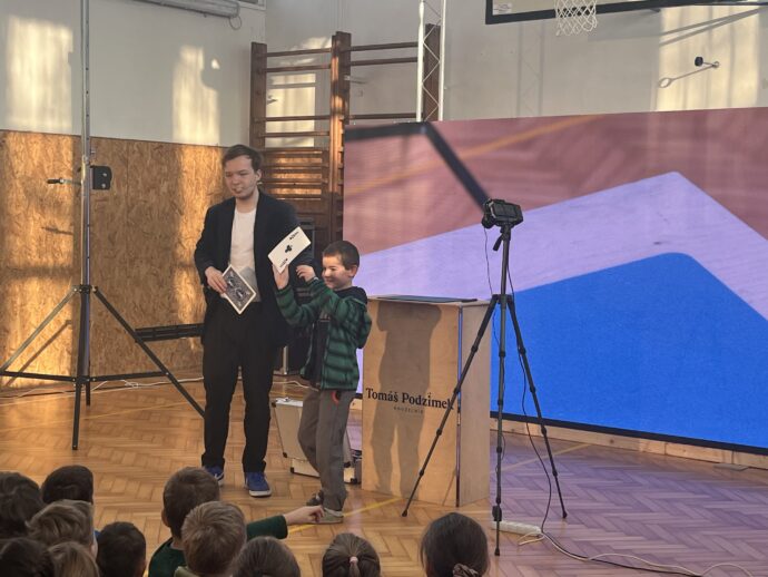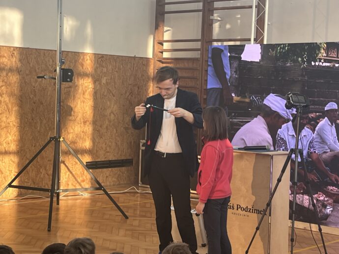 Páteční atmosféra se nesla v duchu čar a kouzel. Školu navštívil kouzelník Tomáš Podzimek se svou show Magie kolem světa. Vyslechli jsme si povídání o zemích, které navštívil a účastnili jsme se spousty zajímavých kouzel, která nám do teď vrtají v hlavě.