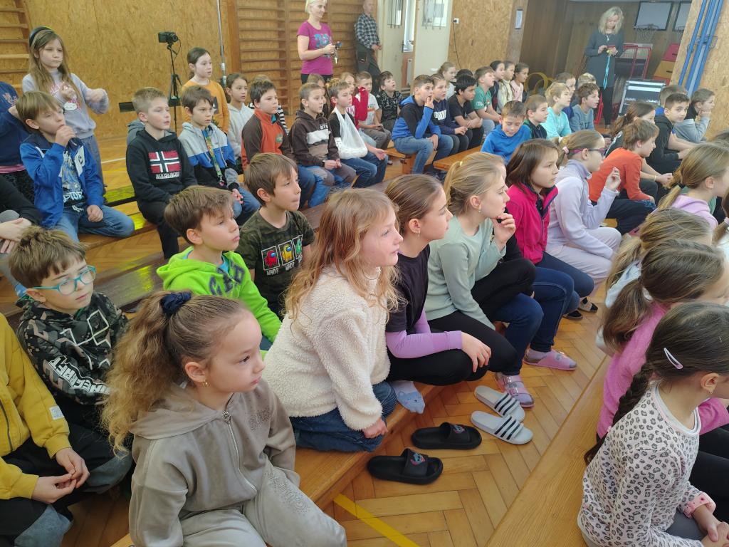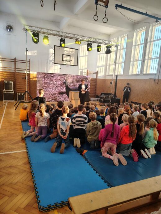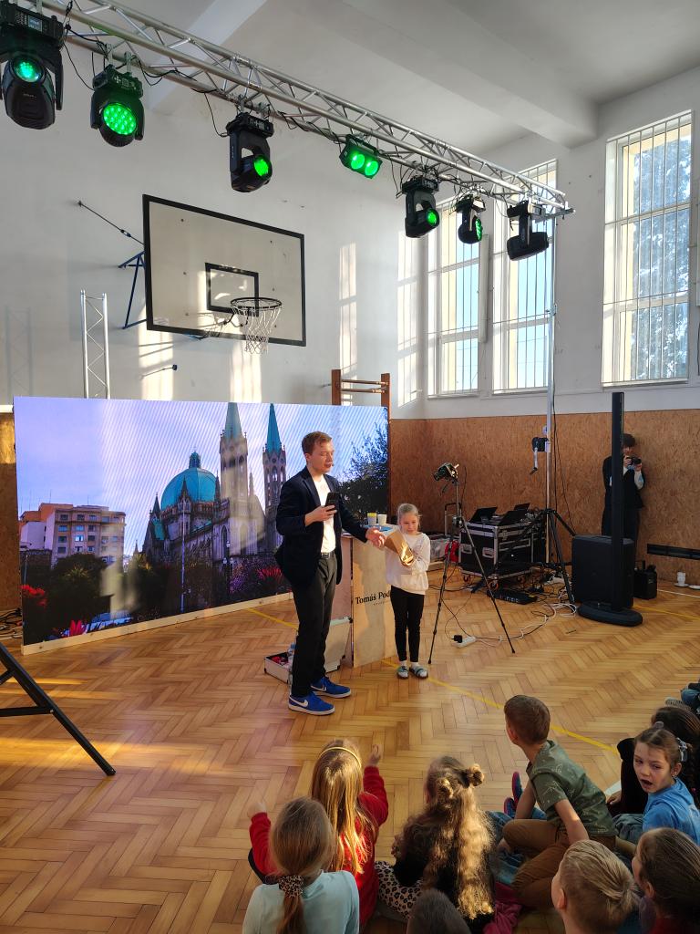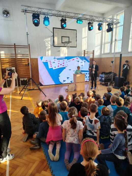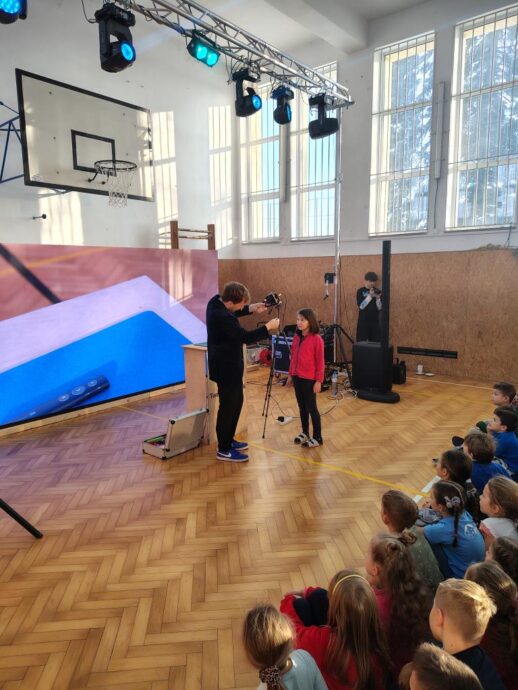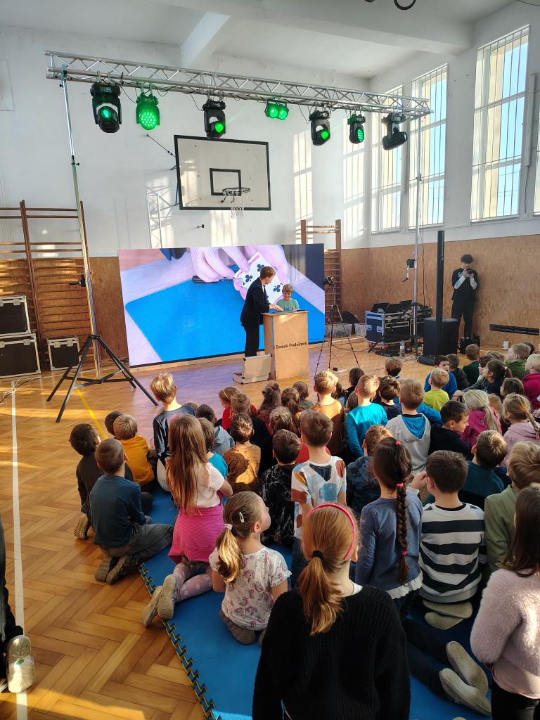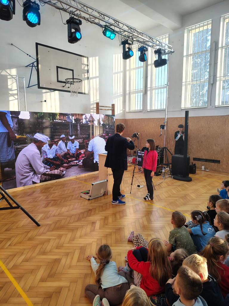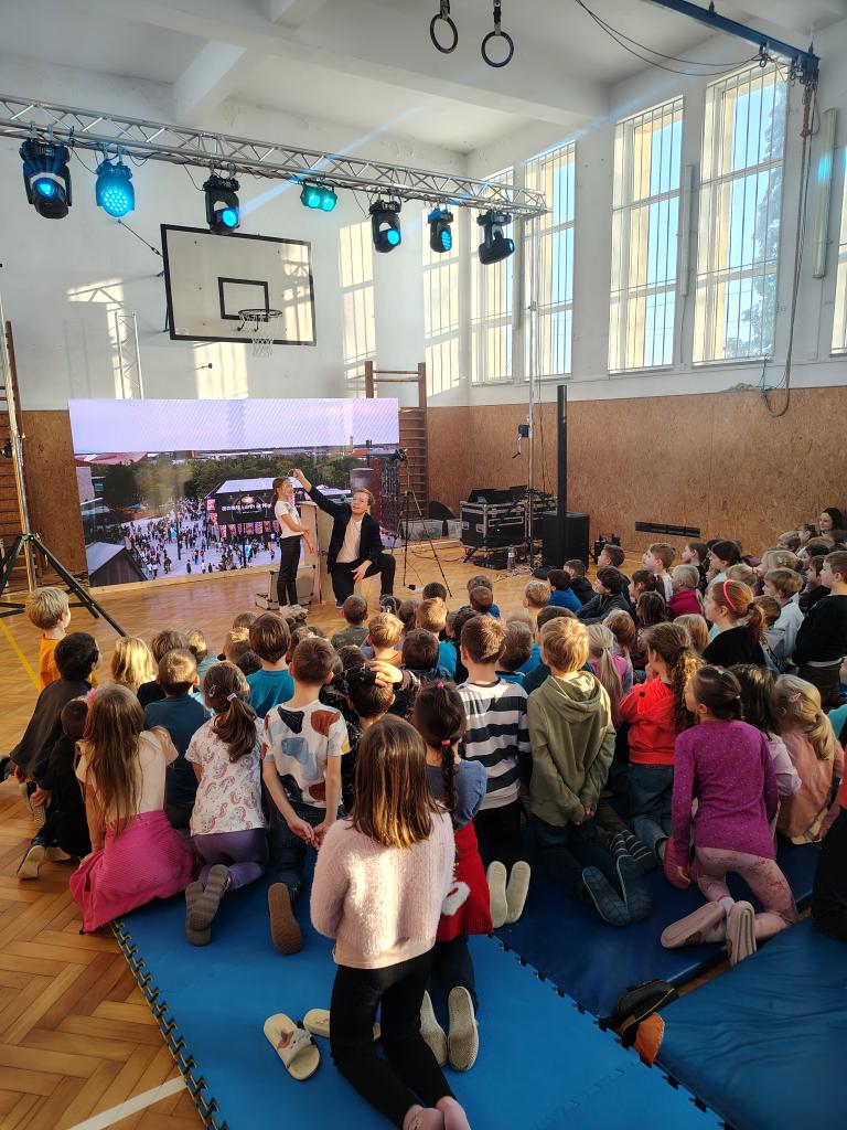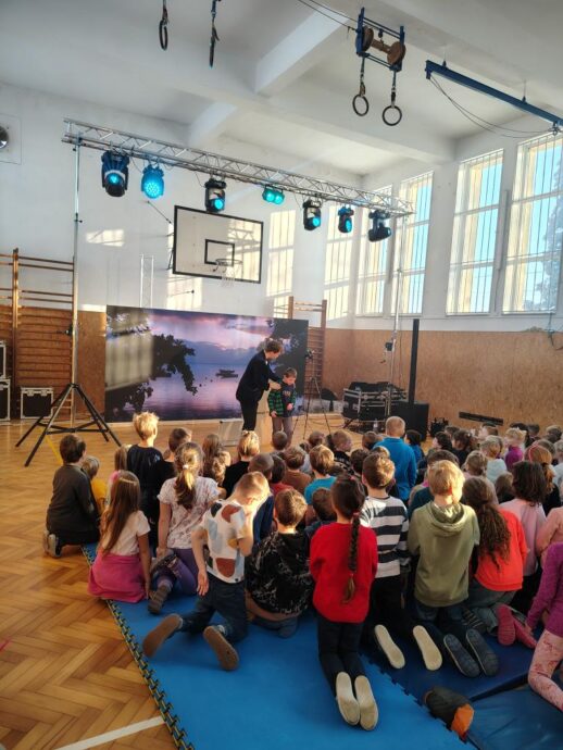 V tělocvičně školy proběhlo vystoupení kouzelníka Tomáše Podzimka, který procestoval skoro celý svět. A kromě cestopisného vyprávění, předvedl několik originálních kouzel. Některým dětem se podařilo být na chvíli asistenty kouzelníka.