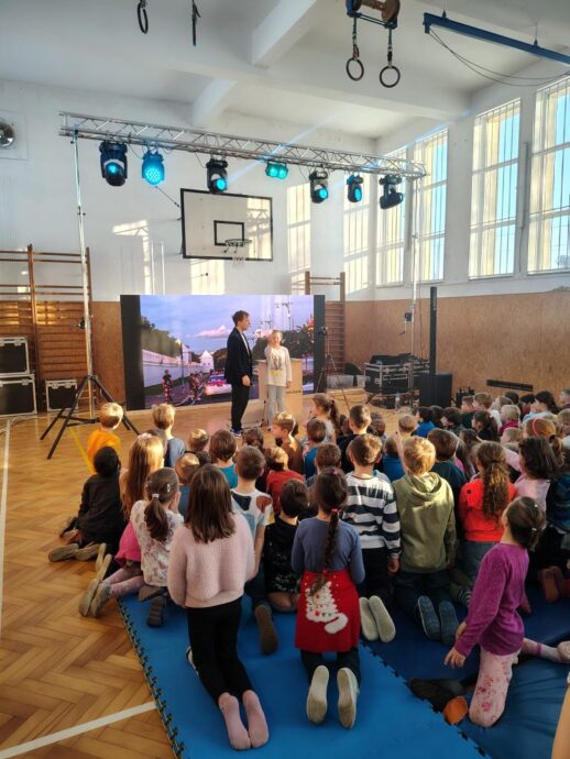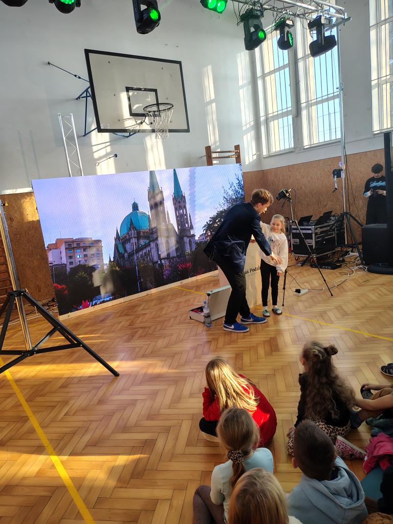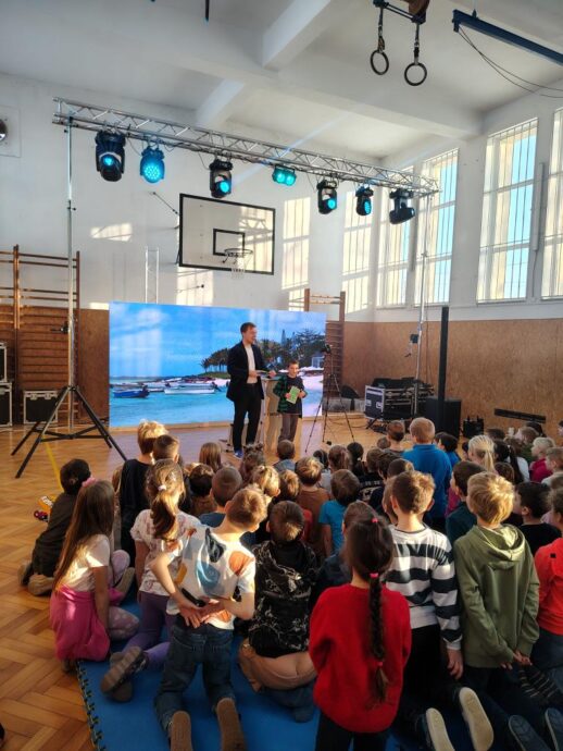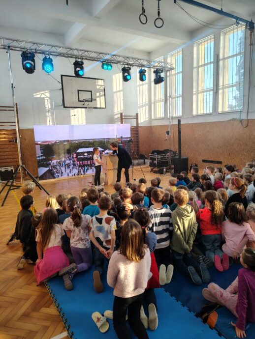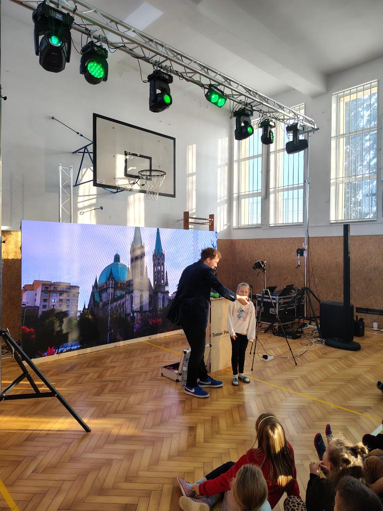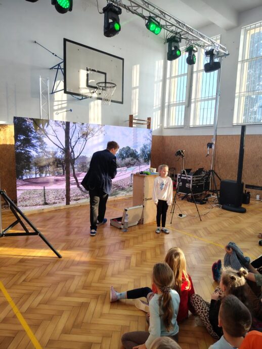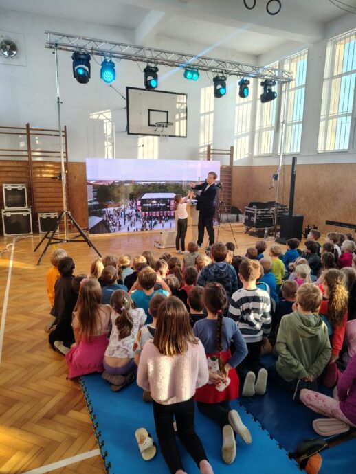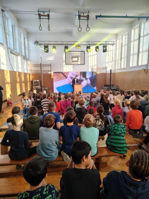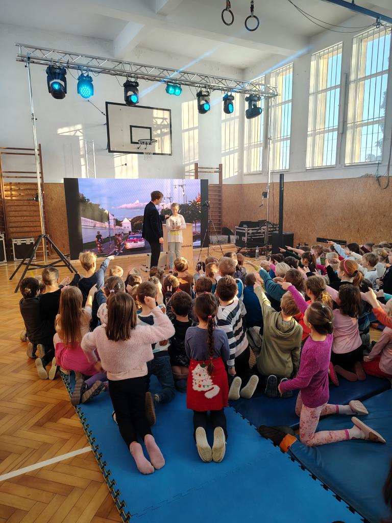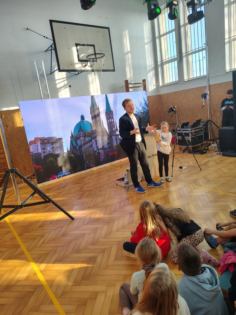 V tělocvičně školy proběhlo vystoupení kouzelníka Tomáše Podzimka, který procestoval skoro celý svět. A kromě cestopisného vyprávění, předvedl několik originálních kouzel. Některým dětem se podařilo být na chvíli asistenty kouzelníka.