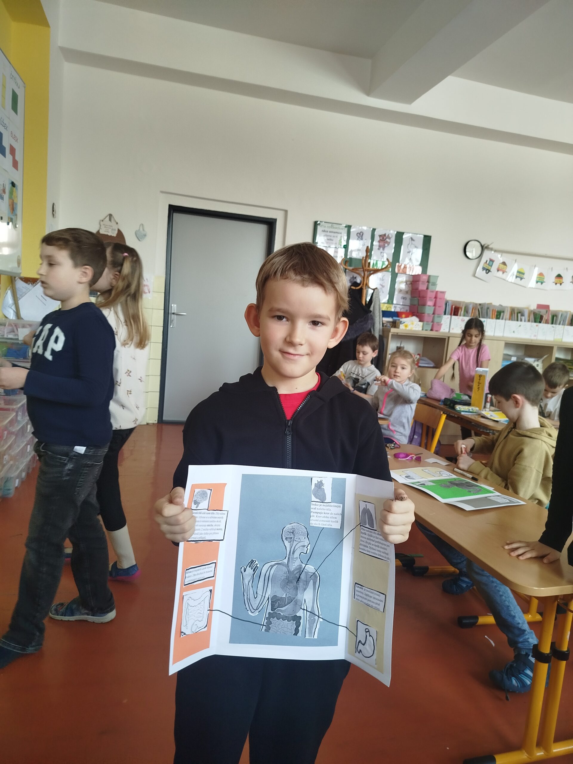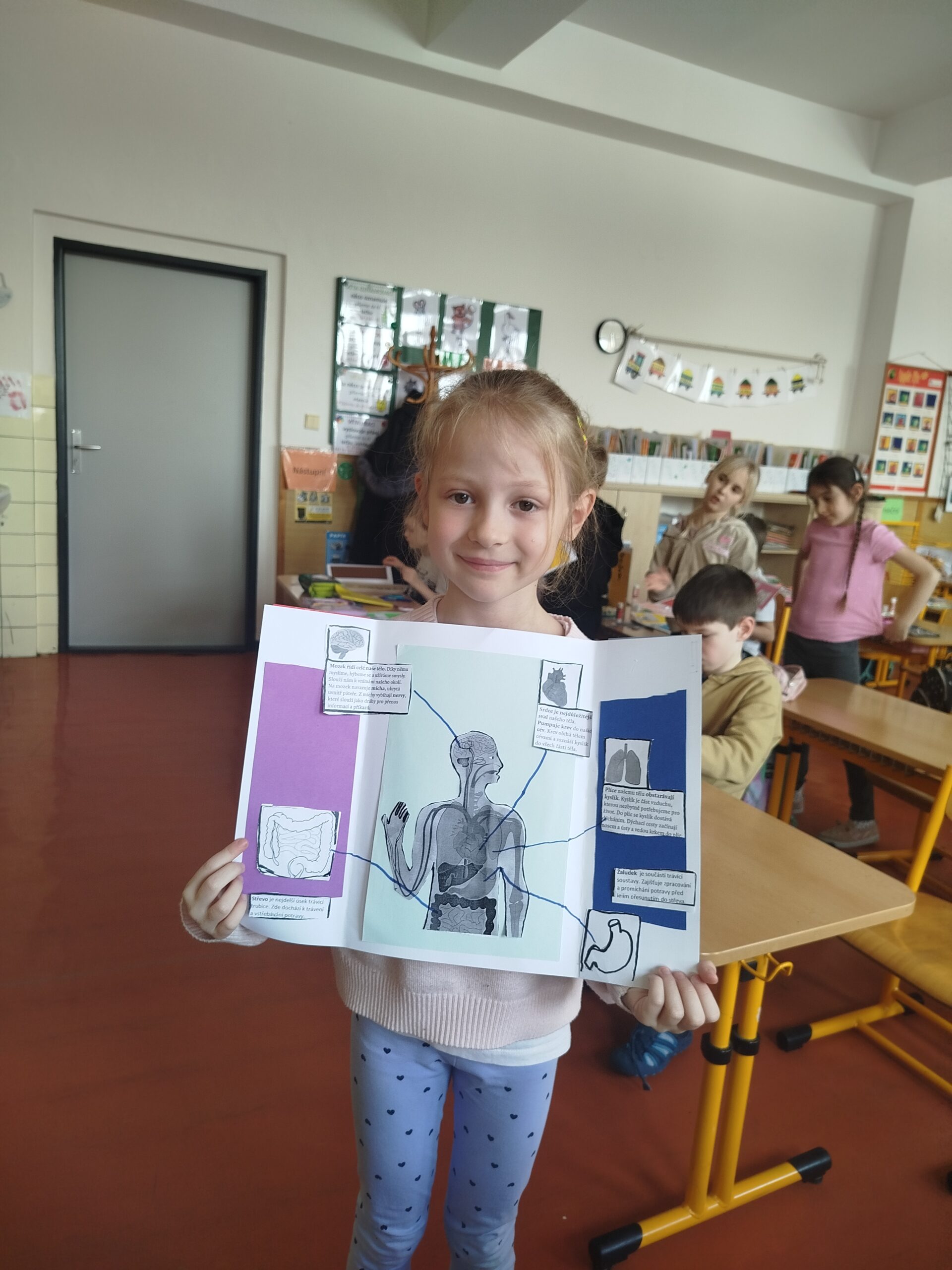 Lapbook je kreativní, interaktivní projekt – většinou z papíru nebo kartonu – který slouží k přehlednému a zábavnému zpracování tématu. Pomáhá dětem lépe pochopit a zapamatovat si učivo, rozvíjí jejich kreativitu a učí je pracovat s informacemi. V tomto týdnu jsme zpracovávali informace o orgánech lidského těla a o našich smyslech.
