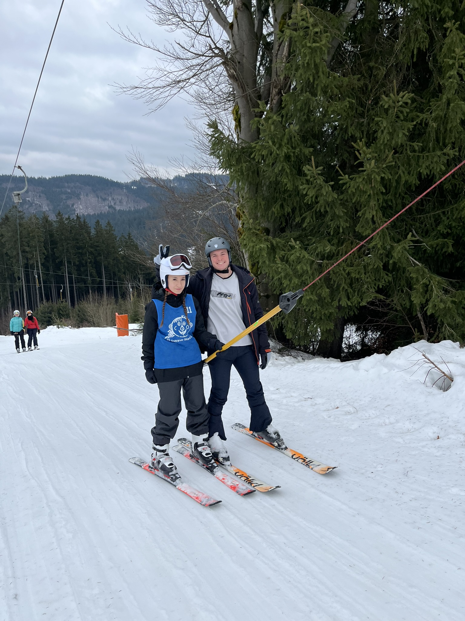 Dnes máme za sebou další hezký den na lyžích. Odpoledne jsme si odpočinuli při krátké procházce, kterou zpestřily úkoly k záchraně pana učitele. Všichni jsou zdraví, veselí a v pořádku.