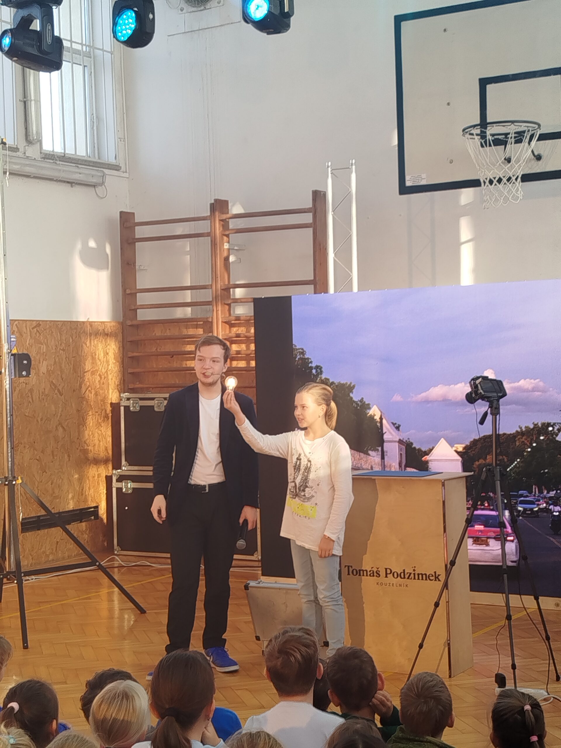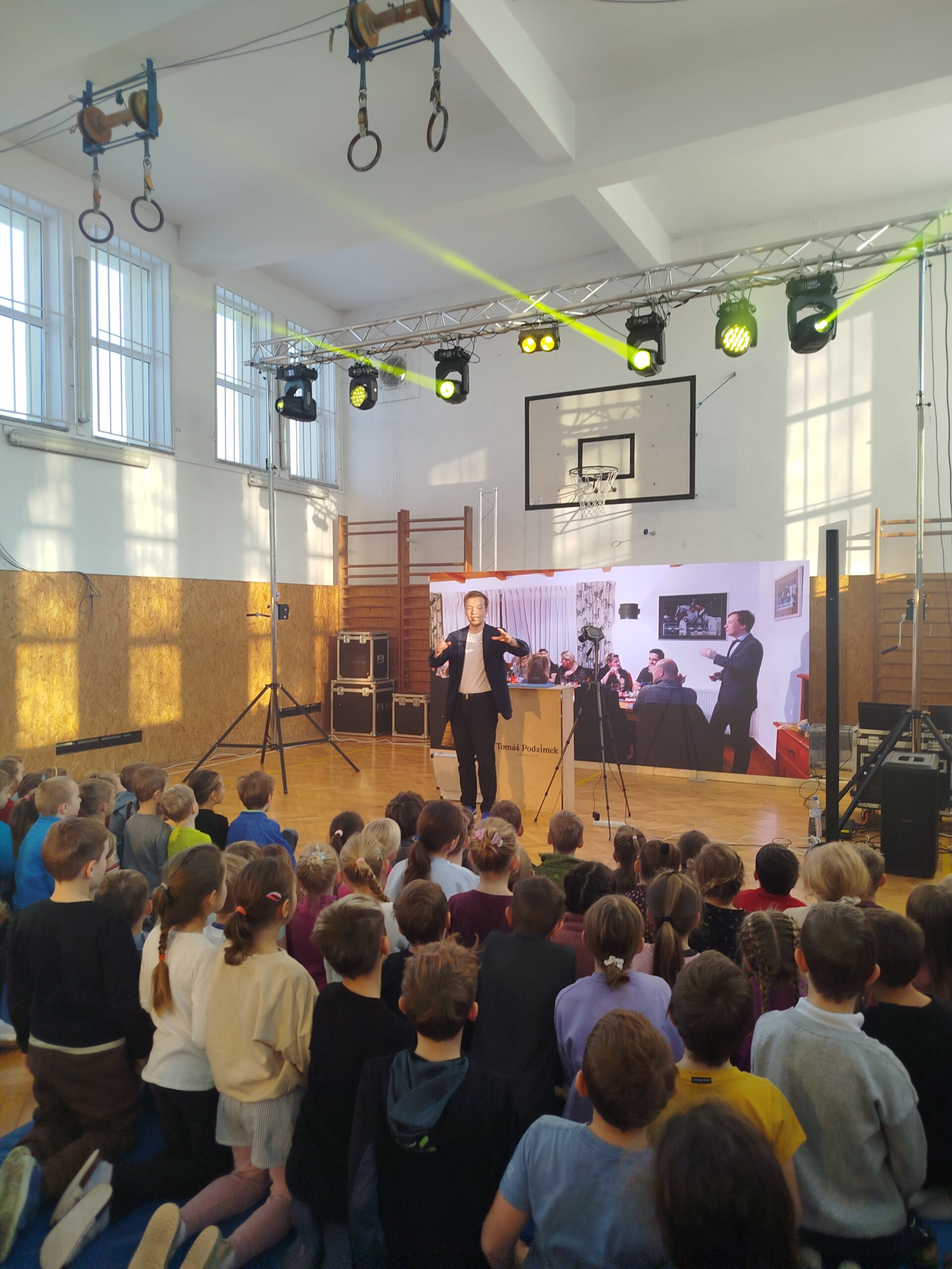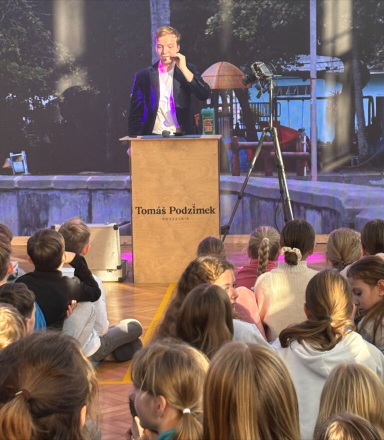 Naši školu navštívil kouzelník Tomáš Podzimek, který si pro žáky připravil zábavný a poutavý program plný magie, humoru a překvapení. Během dopoledne postupně vystoupil pro všechny třídy od 1. do 9., přičemž každý blok byl přizpůsoben věku žáků.