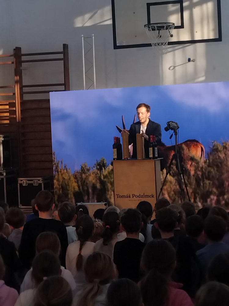 V pátek 28. listopadu se naše škola proměnila v místo plné magie. Zavítal k nám kouzelník Tomáš Podzimek se svým programem „Magie kolem světa“. Během vystoupení nás nejen ohromil neuvěřitelnými kouzly, ale také nás provedl napříč kontinenty a podělil se o zajímavosti z cest, které podnikl.