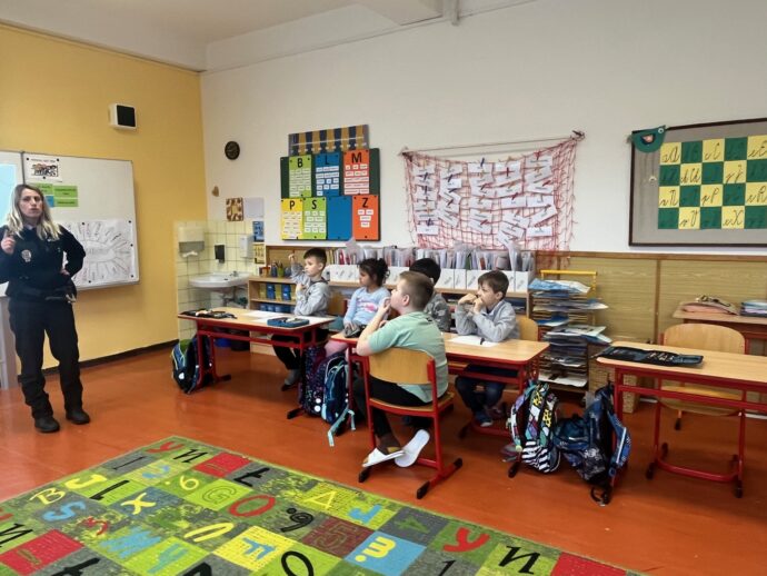 Přednáška městské policie se dnes týkala tématu kriminality. Už víme rozdíl, mezi kriminalistou a kriminálníkem. Také již dokážeme popsat, kdo je svědek, oběť a co je místo činu. V týmech jsme si pak zkusili, jak jsme dobří v zapamatování si důležitých znaků u nehody cyklisty s autem.