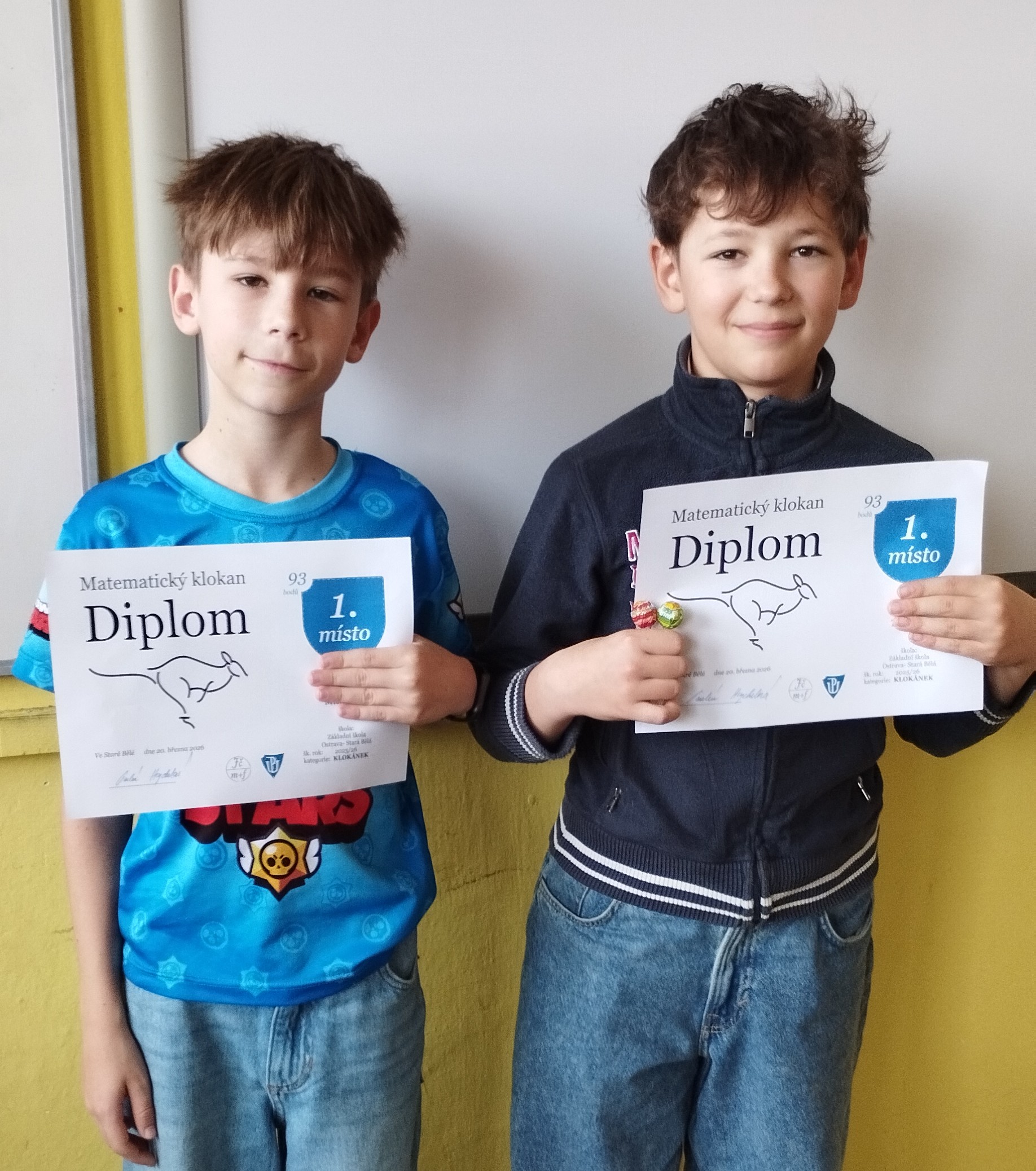 1. místo: se stejným počtem získaných 93 bodů! Petr M. a Jan T. z 5.A