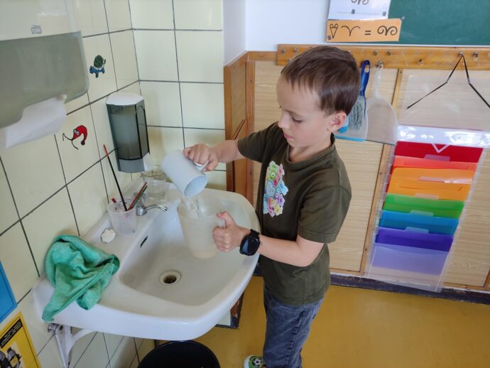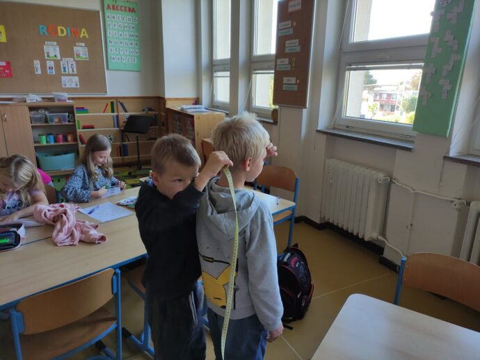 Měření, vážení, objem, jednotky váhy, míry a objemu. To bylo tématem učiva v prvouce. Děti zjišťovaly objem skleničky, hrníčku a misky a zjišťovaly délku lavice a šířku dveří. Bylo třeba také zvážit několik předmětů a změřit obvod hlavy spolužáka. Tyto údaje zapisovaly do připraveného pracovního listu.
