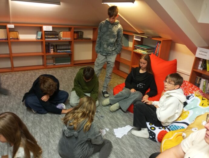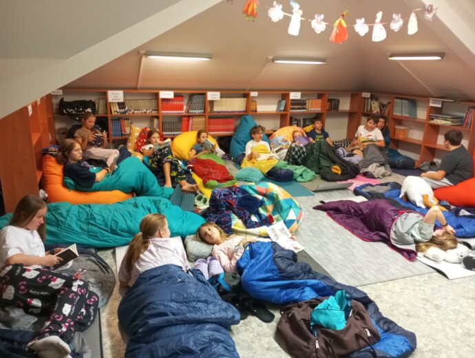Noc z pátku 21. 11. na sobotu 22. 11. nebyla pro naši školu zrovna typická. V knihovně 2. stupně se u Knihožrouta zabydlelo osmnáct žáků 6. – 8. tříd. Společně četli, dívali se na film Bella a Sebastian, vychutnali si pizzu a snažili se rozluštit literární kvíz a objevit v knihovně knihu, ke které je dovedly indicie. Snad si to všichni – včetně Knihožrouta – užili.