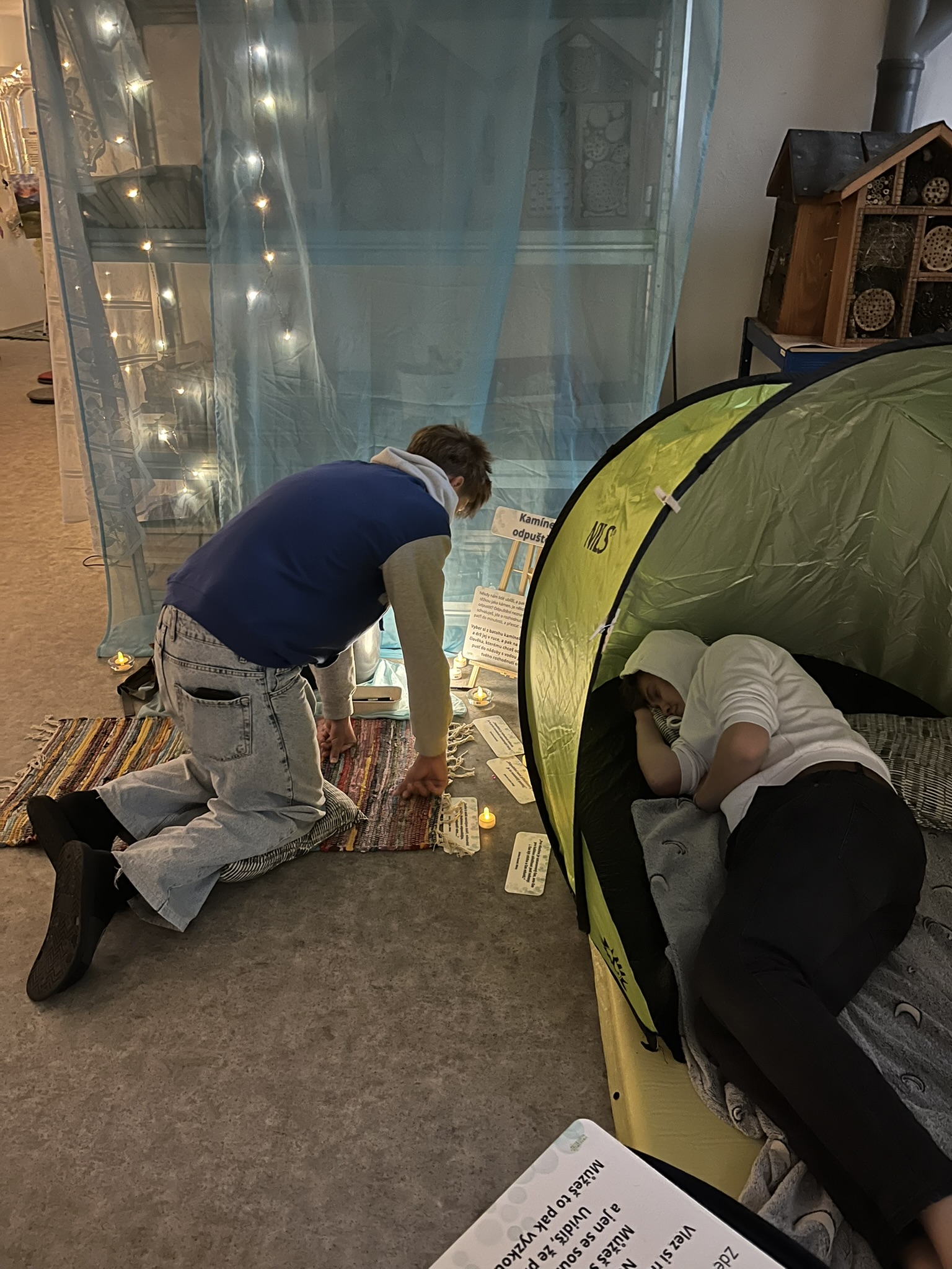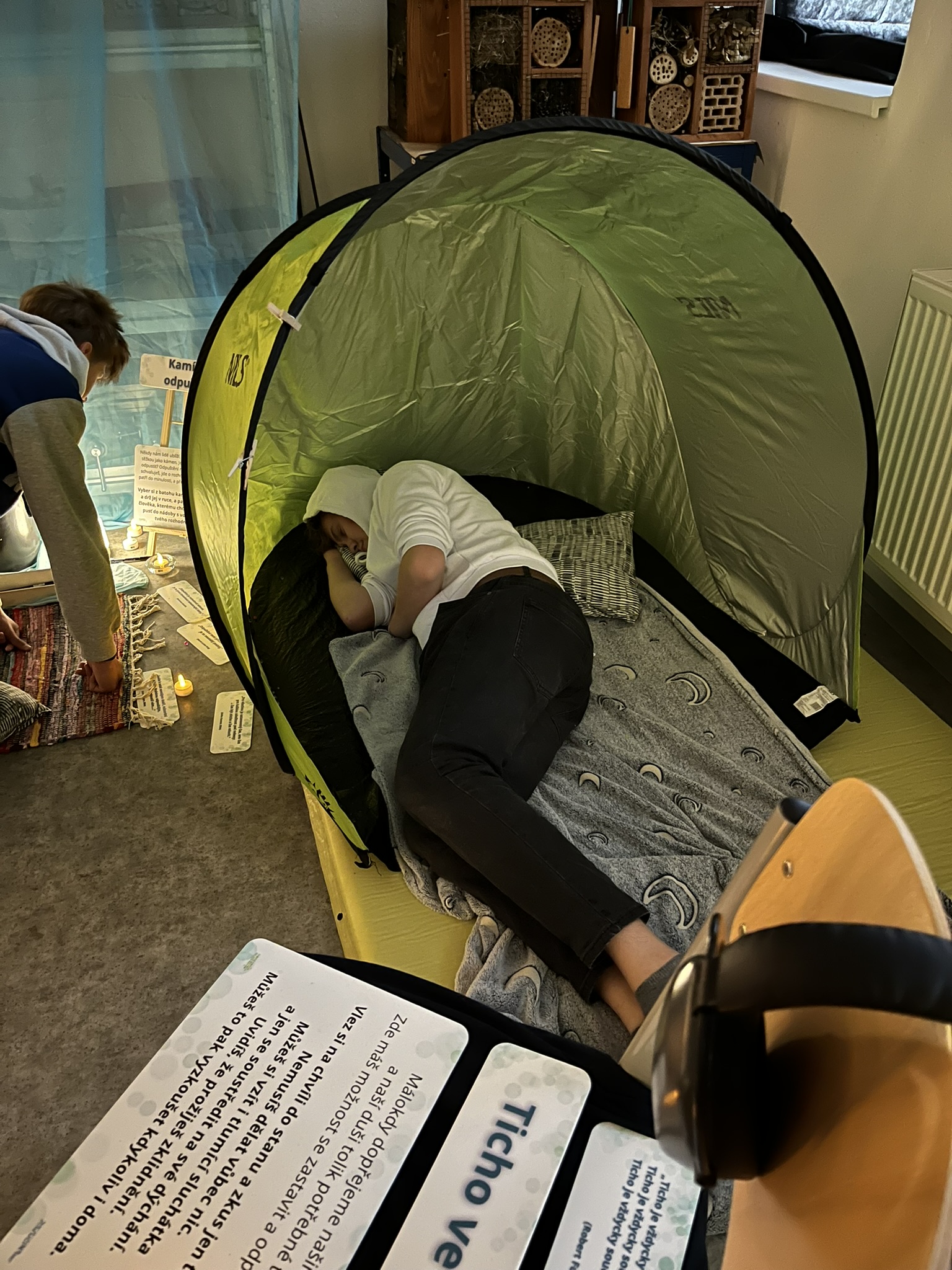 Ve čtvrtek jsme strávili jednu hodinu v Oáze – učebně, která se na několik dní proměnila v příjemné a bezpečné místo pro ztišení a odpočinek. Žáci měli možnost se zapojit do aktivit podporujících duševní pohodu a osobní rozvoj. Formou zážitkových úkolů se zamýšleli nad otázkami identity, vlastní hodnoty, odvahy či vděčnosti. Díky tvořivému a interaktivnímu zpracování mohli své myšlenky prozkoumávat individuálně i v klidné atmosféře. Hodina v Oáze tak byla prostorem k odpočinku, sebereflexi i k objevování hlubších souvislostí života.