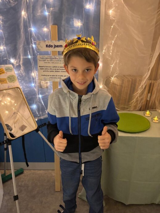 V úterý jsme se během jedné vyučovací hodiny ocitli v Oáze ticha, kterou pro děti připravila společnost Pavučina. Naše školní dílny se proměnily v klidné místo plné světýlek, vůní, jemné hudby a prostoru pro vlastní myšlenky. Děti se mohly uvolnit, ztišit, vnímat sebe i své okolí pomocí smyslů. Aktivity probíhaly v tichu a klidu, což dětem přineslo pocit bezpečí a duševní pohody.