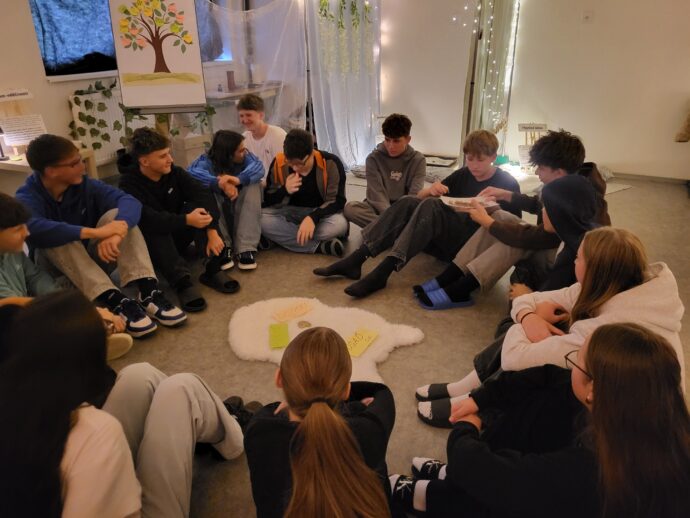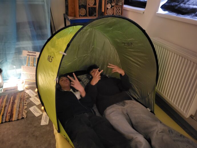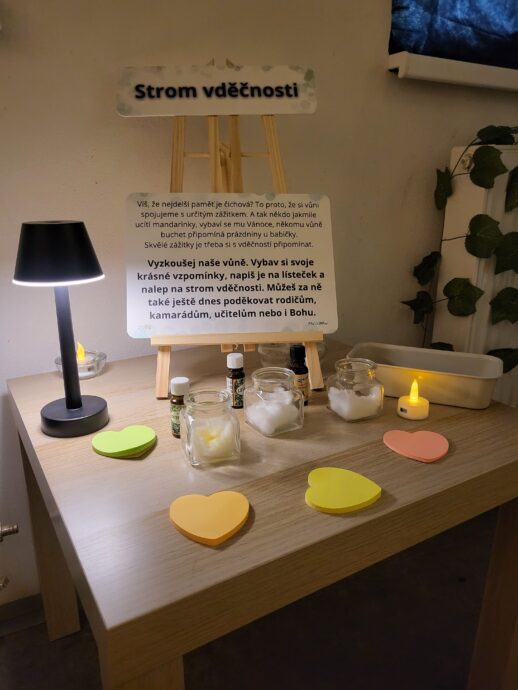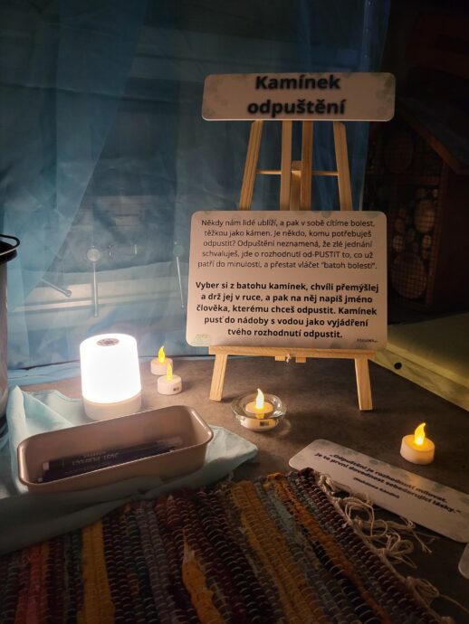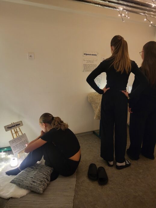 Ve čtvrtek 25. 9. jsme strávili jednu vyučovací hodinu v Oáze, místě zklidnění a relaxace, ve kterou se na celý týden proměnily prostory dílen. Na různých stanovištích se žáci prostřednictvím zážitkových úkolů zamýšleli nad otázkami identity, vlastní hodnoty, odvahy či vděčnosti. Vše probíhalo v tichosti a klidu za zvuků relaxační hudby.