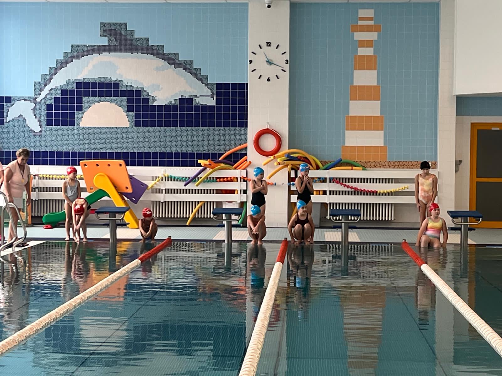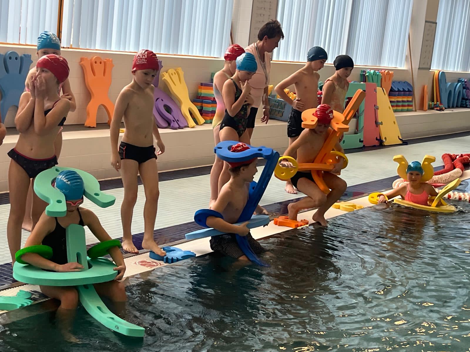 Plavecké závody a soutěže byly naším prima programem ve včerejší lekci plaveckého výcviku.