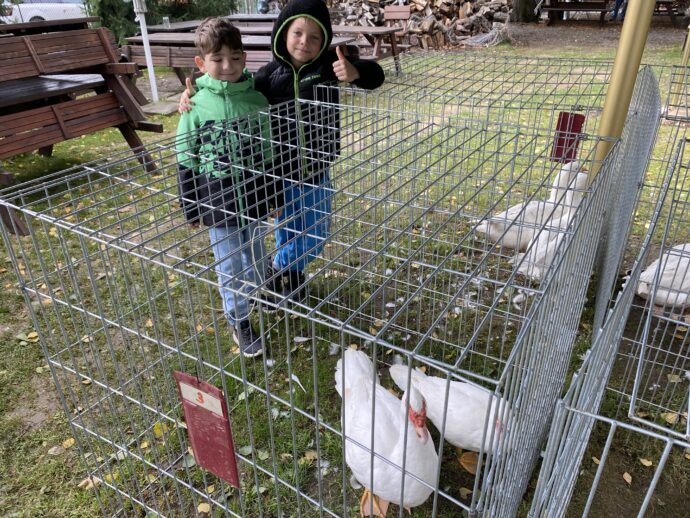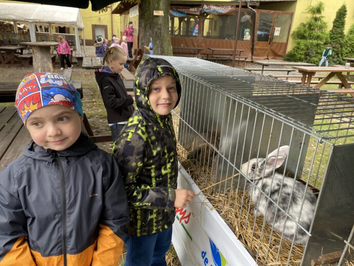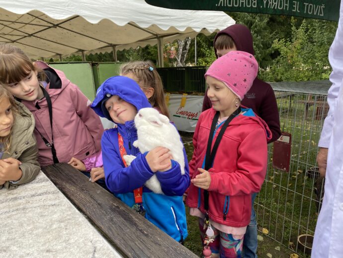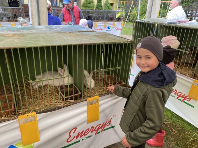 Dnes jsme navštívili okresní výstavu drobného zvířectva, kterou pořádal Svaz chovatelů ze Staré Bělé. Měli jsme možnost vidět králíky, činčily, husy, kachny, slepice s kohouty a holuby. Martínek měl na výstavě své králíky a slepice s kohoutem. Nejvíc děti zaujal králík belgický obr a králíček, kterému se podařilo utéct přes mříže z klece a chovatelé ho honili v prostoru zahrady katolického domu.