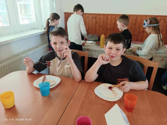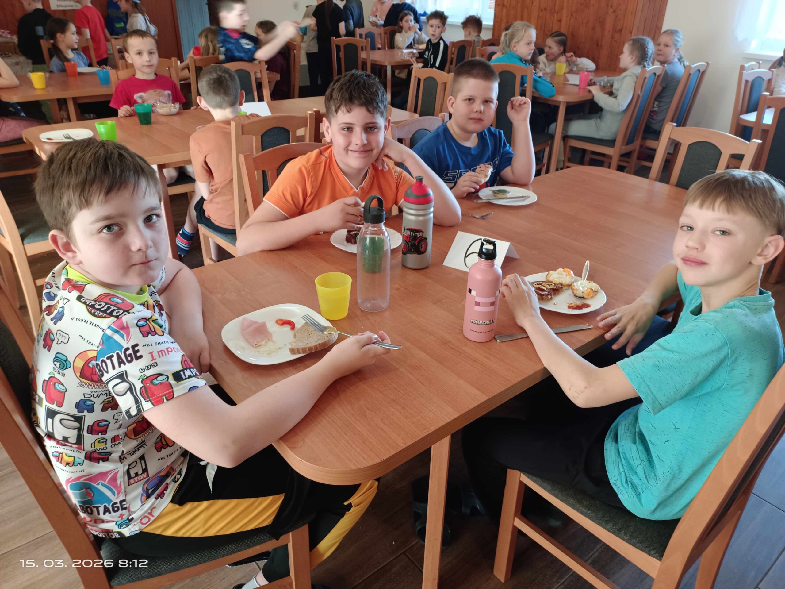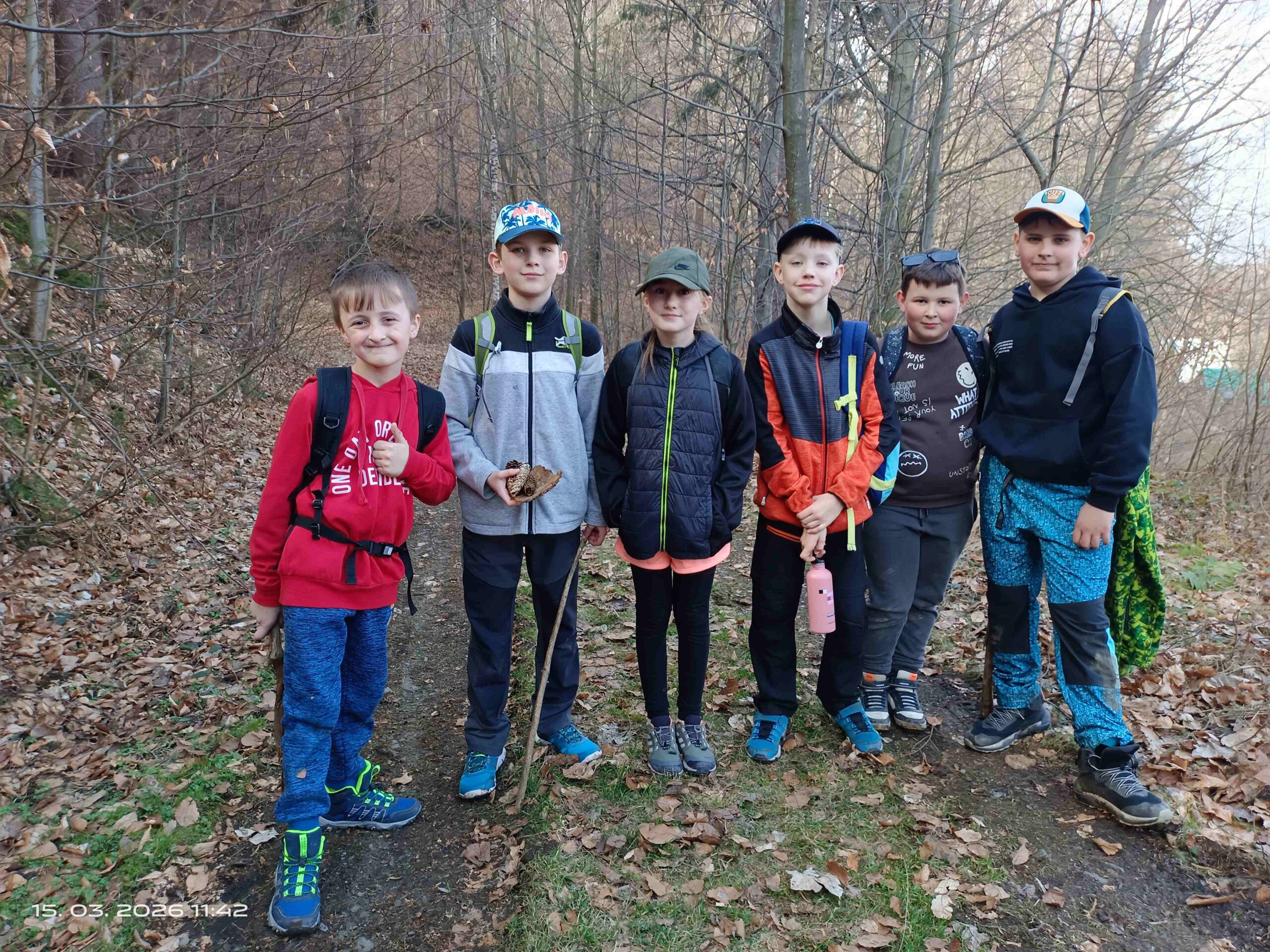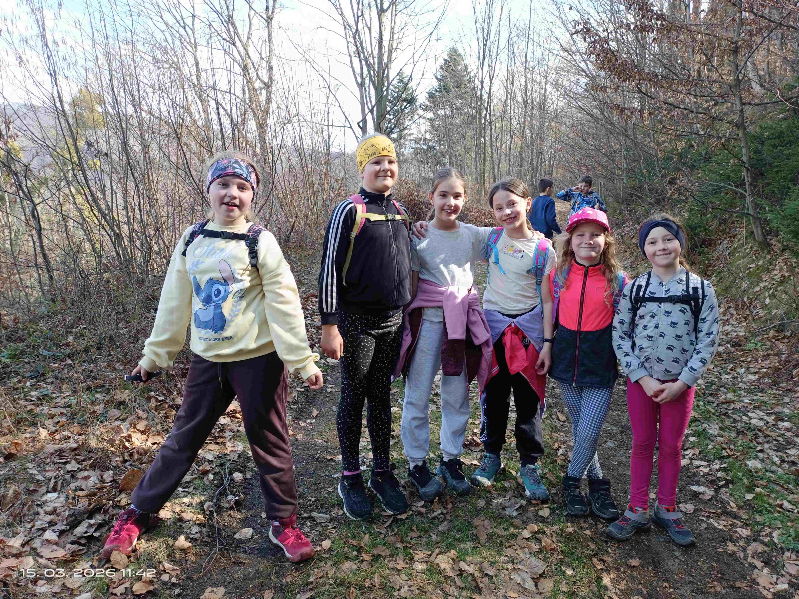 Noc proběhla bez potíží. Rautová snídaně, turistická vycházka, 7,2 km :-), soutěž v běhu do kopce, soutěž ve skupinách, hod šiškou na cíl. Prima sluníčkový den.