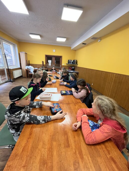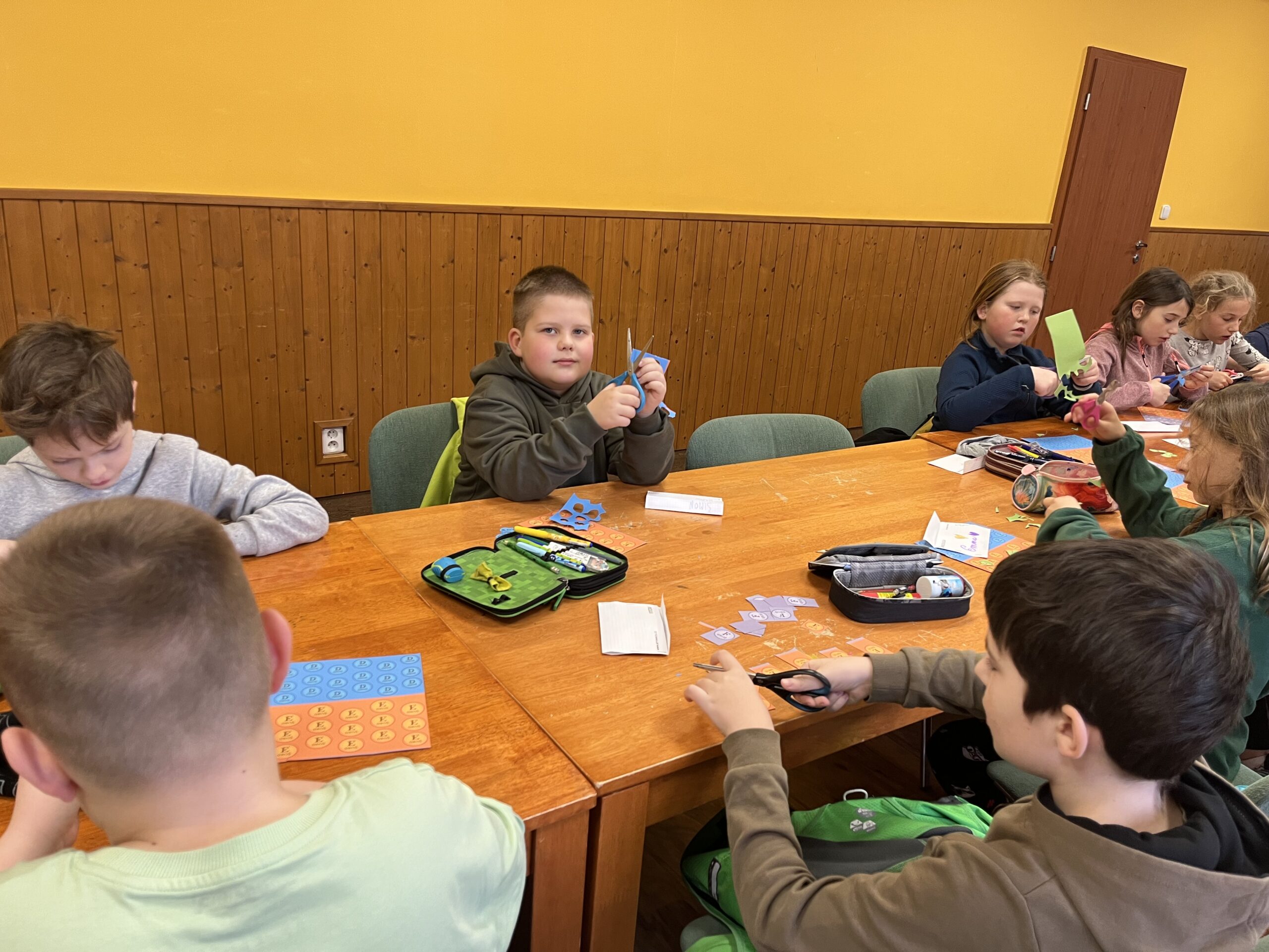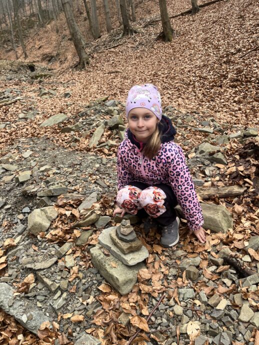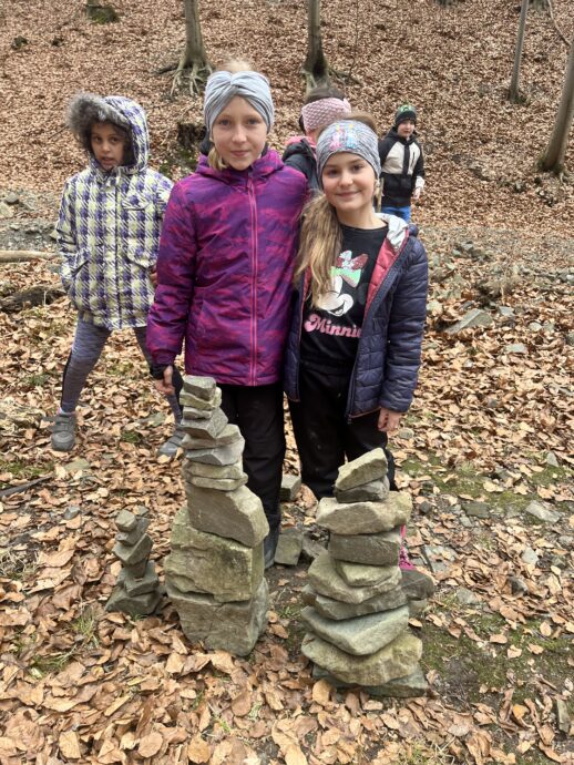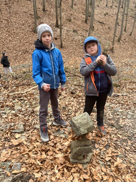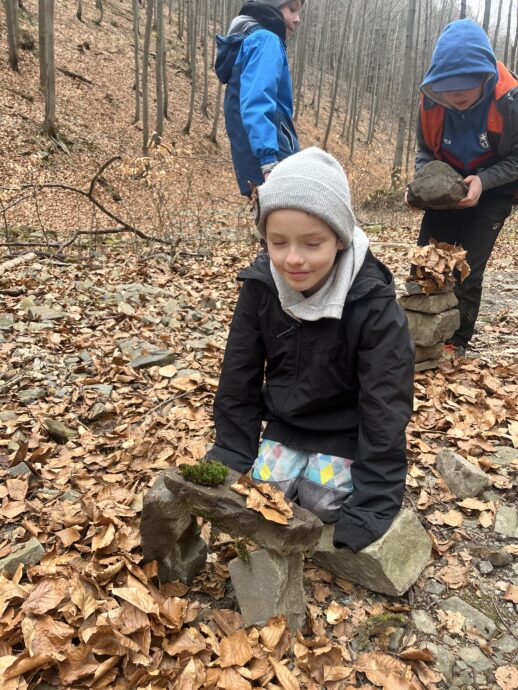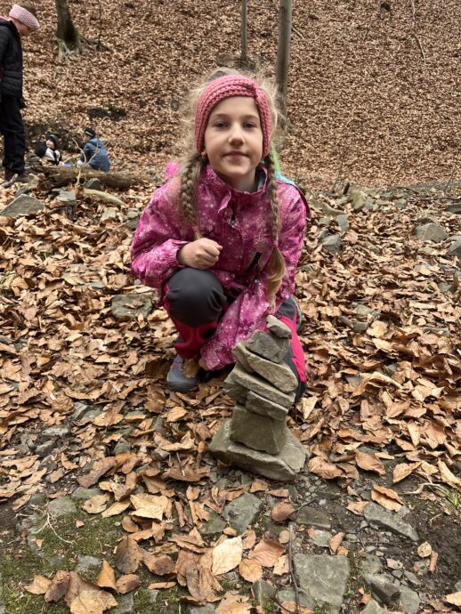 Sluníčko se schovalo za mraky, ale ani to nás neodradilo k hrátkám v lese. Zvládli jsme terénní závod podle čísel, postavili jsme kamenné komíny a prošli jsme druhou olympijskou disciplínou – navlékali jsme korálky na čas. Gratuluje Emmě, Nele a Aničce, které navlékaly nejrychleji. Také se připravujeme na zemi Biland a stříhali jsme bilandské groše, až se z nás kouřilo. 🙂