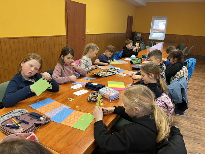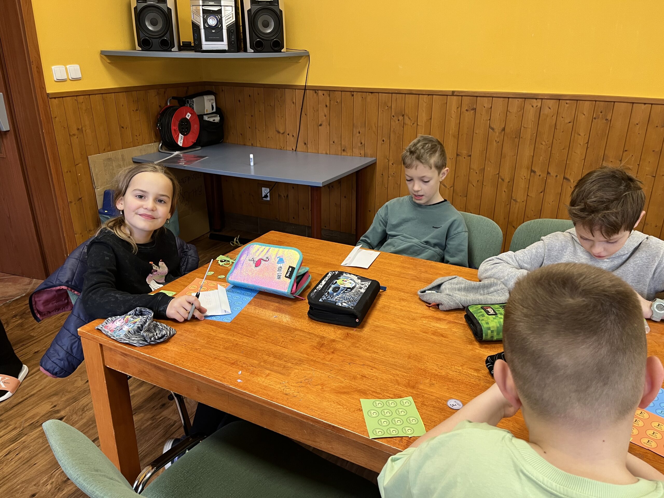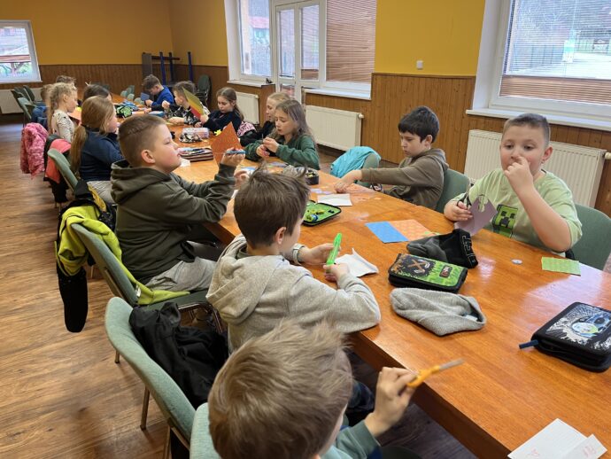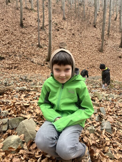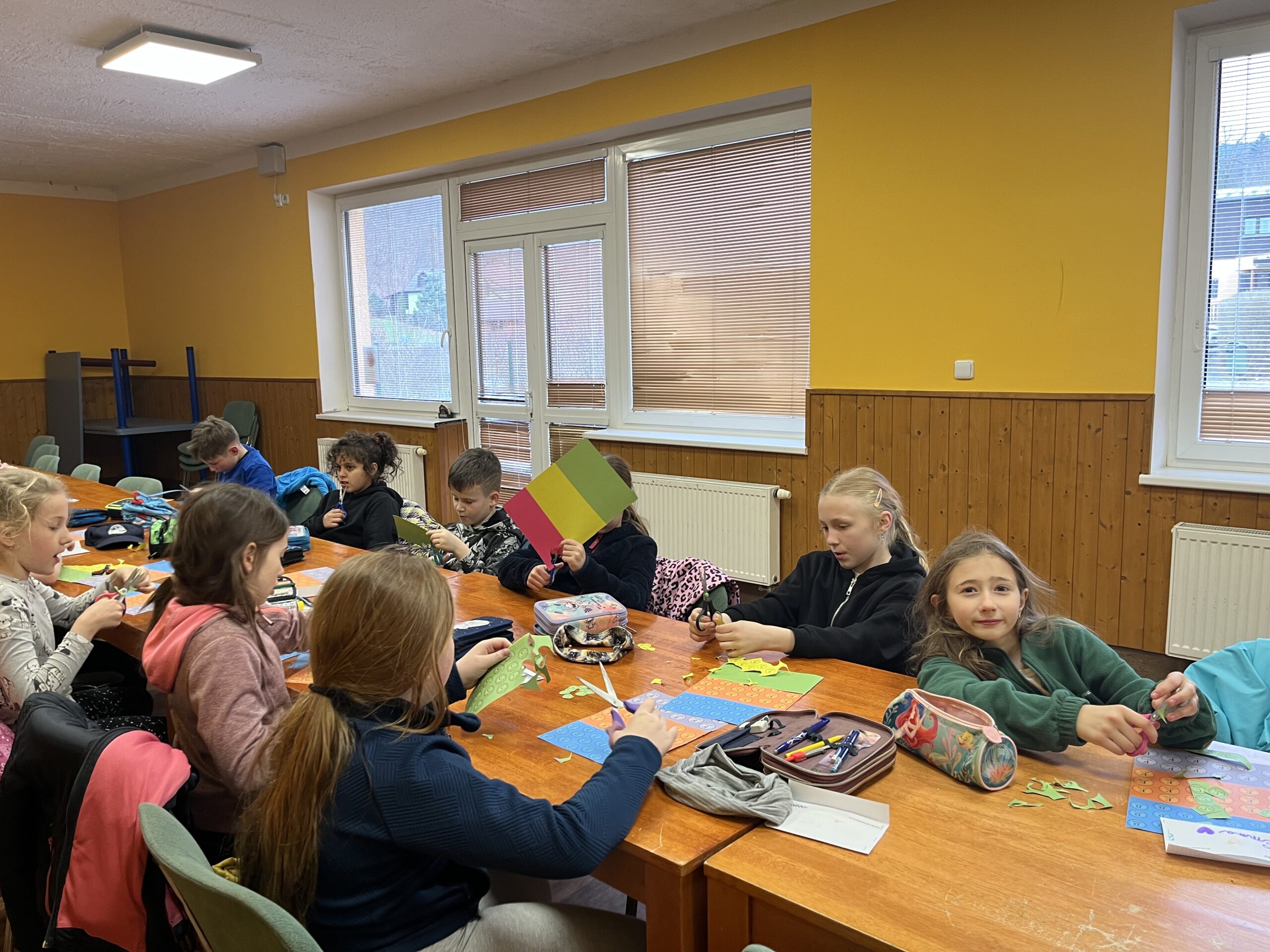 Sluníčko se schovalo za mraky, ale ani to nás neodradilo k hrátkám v lese. Zvládli jsme terénní závod podle čísel, postavili jsme kamenné komíny a prošli jsme druhou olympijskou disciplínou – navlékali jsme korálky na čas. Gratuluje Emmě, Nele a Aničce, které navlékaly nejrychleji. Také se připravujeme na zemi Biland a stříhali jsme bilandské groše, až se z nás kouřilo. 🙂