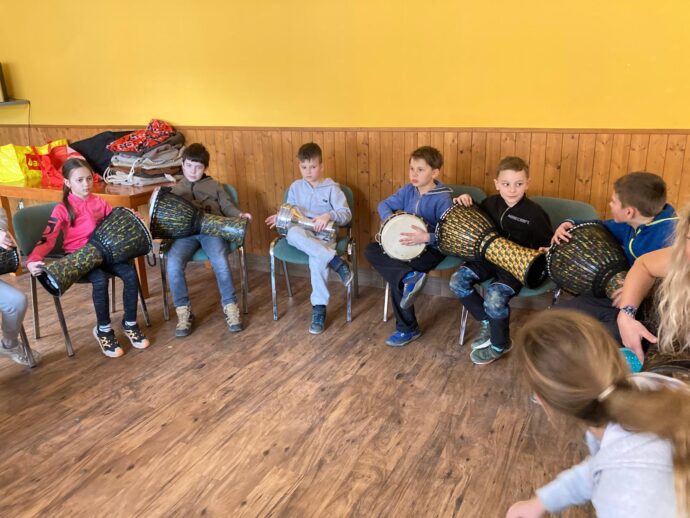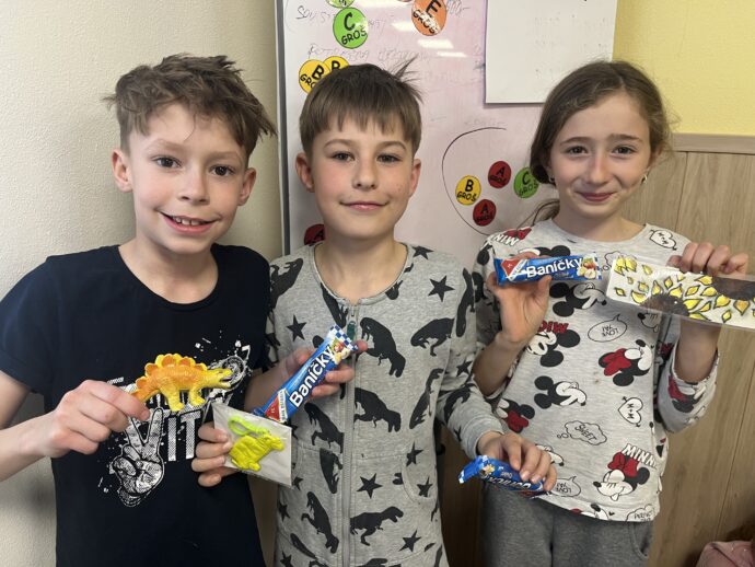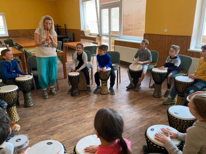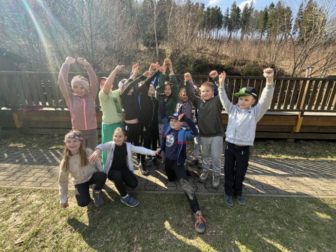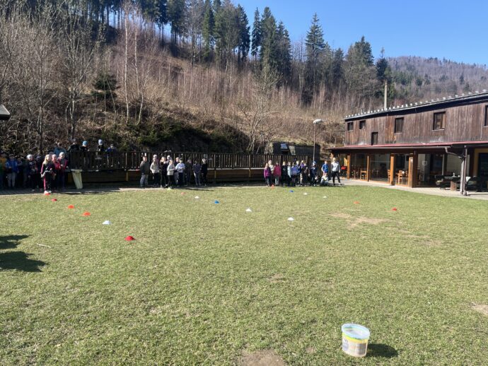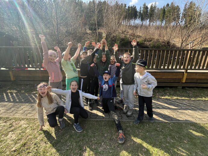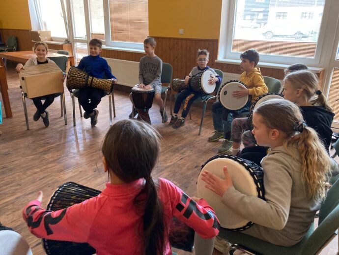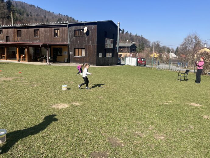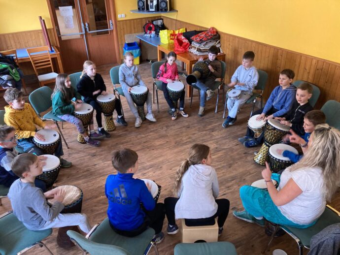 Počasí nám stále přeje a dnešní den jsme věnovali mezitřídní soutěži – naplnit co nejvíce kelímek vodou pomocí lžičky. Nakonec jsme byli první a vyhráli jsme zlatý pohár. 🙂 Zvládli jsme i další olympijskou disciplínu – přeskoky přes švihadlo. Mezi nejlepší skokany dne patří Ondra, Lukáš a Emma. Odpoledne patřilo hudebně prožitkovému programu. Vyzkoušeli jsme hru na bubny.