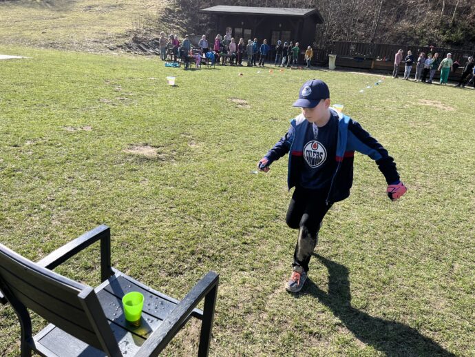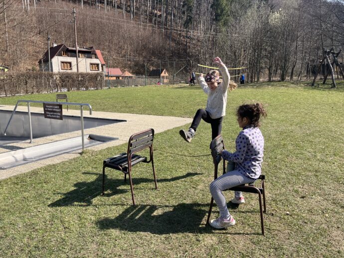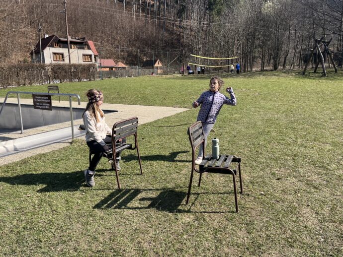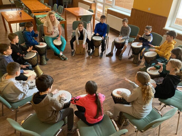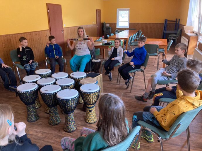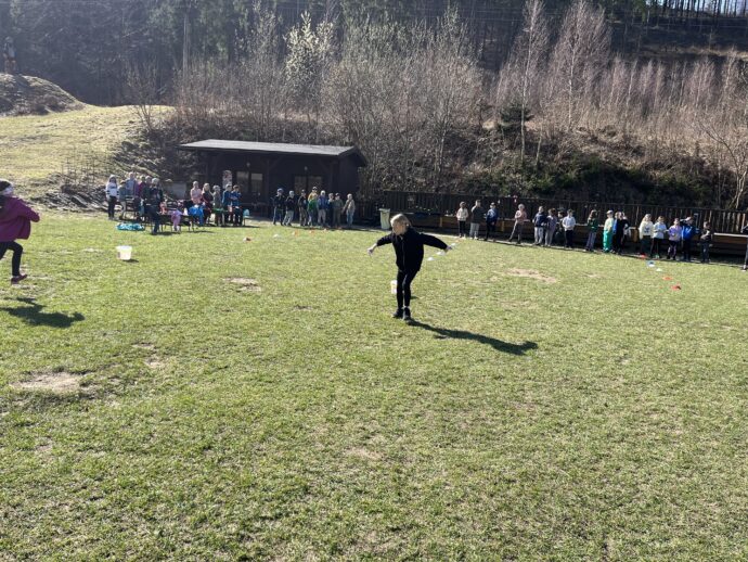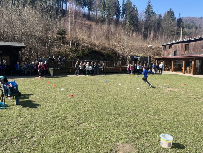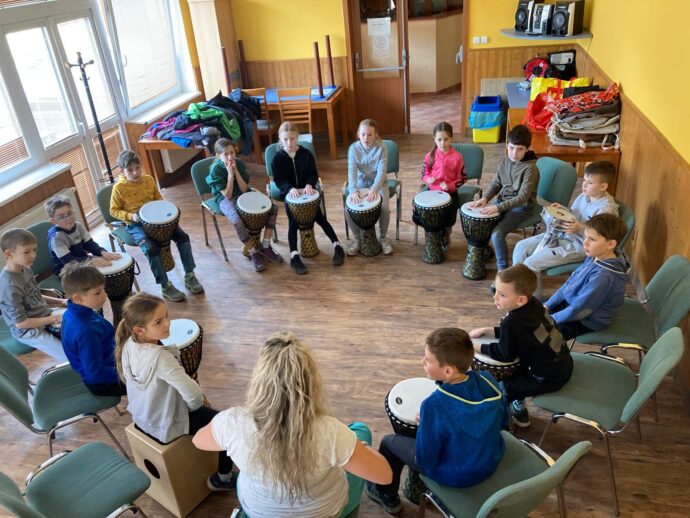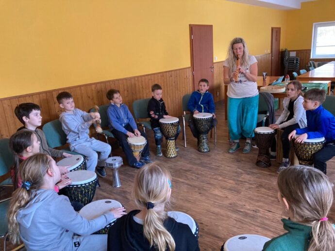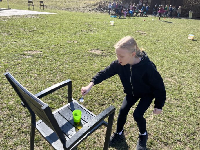 Počasí nám stále přeje a dnešní den jsme věnovali mezitřídní soutěži – naplnit co nejvíce kelímek vodou pomocí lžičky. Nakonec jsme byli první a vyhráli jsme zlatý pohár. 🙂 Zvládli jsme i další olympijskou disciplínu – přeskoky přes švihadlo. Mezi nejlepší skokany dne patří Ondra, Lukáš a Emma. Odpoledne patřilo hudebně prožitkovému programu. Vyzkoušeli jsme hru na bubny.