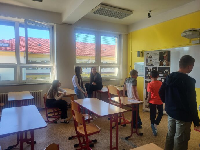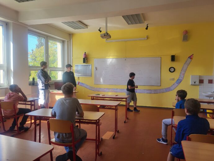 V pátek 19. září 2025 se na naší škole uskutečnil preventivní program O2 Chytrá škola, kterého se zúčastnili žáci 5. až 9. ročníku. V roli moderátorů aktivit na patnácti stanovištích byli tentokrát žáci devátých ročníků. Na jednotlivých stanovištích organizovali a vedli aktivity týkající se informací bezpečnosti na internetu, kyberšikaně a digitální stopě. Pomáhali svým mladším spolužákům s natáčením krátkého filmu, tvorbou vlastního komiksu, plněním vědomostních kvízů a s dalšími praktickými úkoly zaměřenými na kritické myšlení a mediální gramotnost.