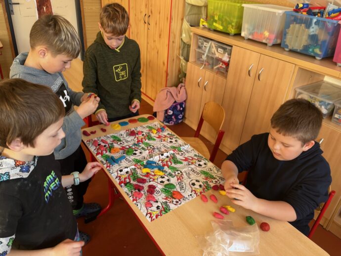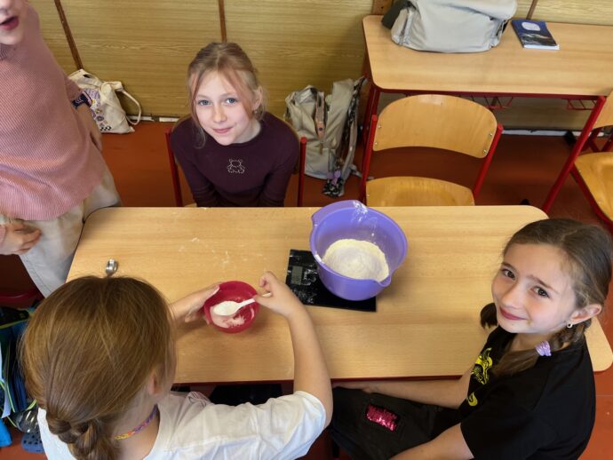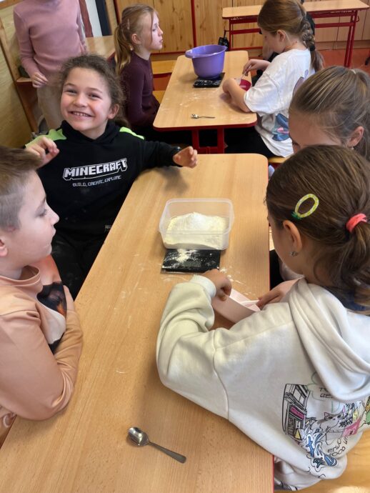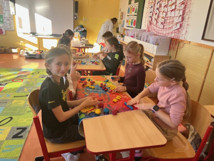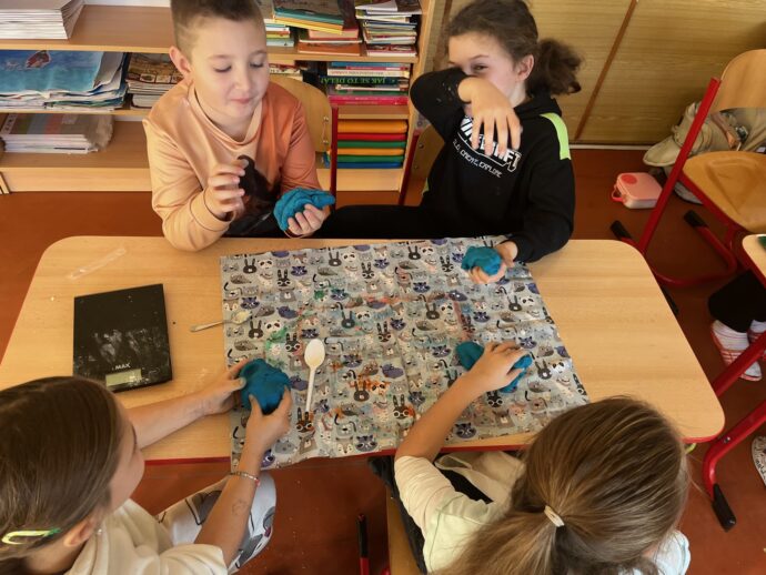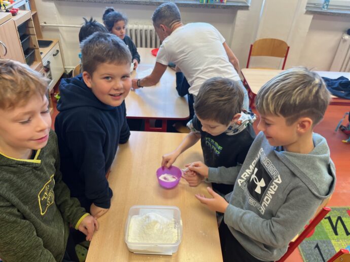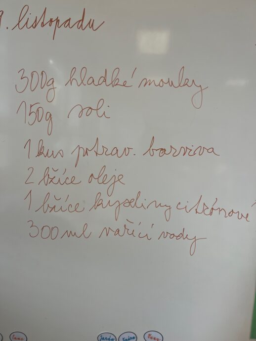 Středa se nesla v duchu vědy a měření. Vyrobili jsme si domácí modelínu a bavili jsme se nad tím, jak můžeme i v modelíně míchat barvy. A kdo bude vyrábět doma další várku??? 🙂