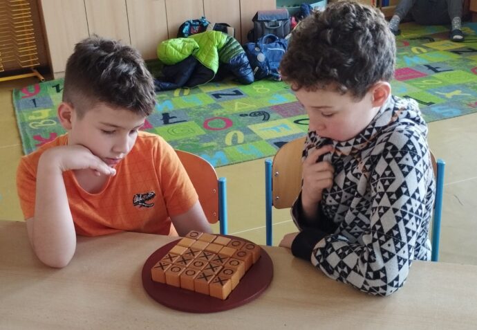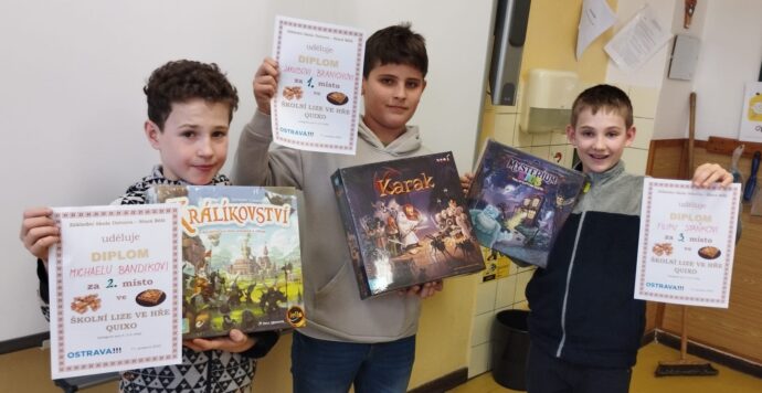 V prosinci probíhá na naší škole tradičně finále školní ligy ve hře QUIXO. V kategorii 2. a 3. tříd se utkali vždy dva nejlepší hráči z každé třídy. Vítězství v letošním roce patřilo Damianovi Stuchlému z 3.A, na druhém místě se umístil Antonín Kozák taktéž z 3.A a třetí pozici obsadil Robert Fuciman z 3.C.