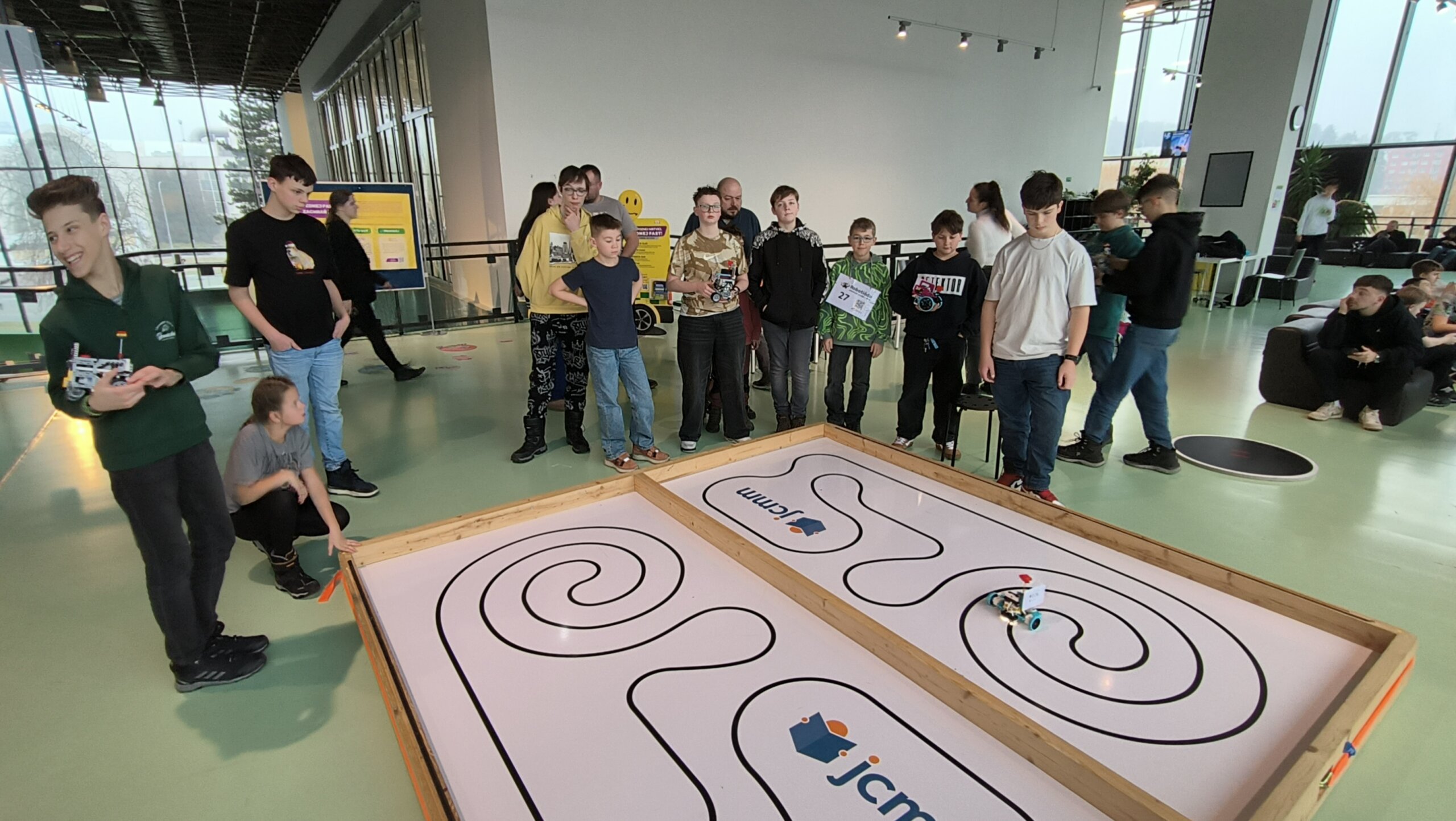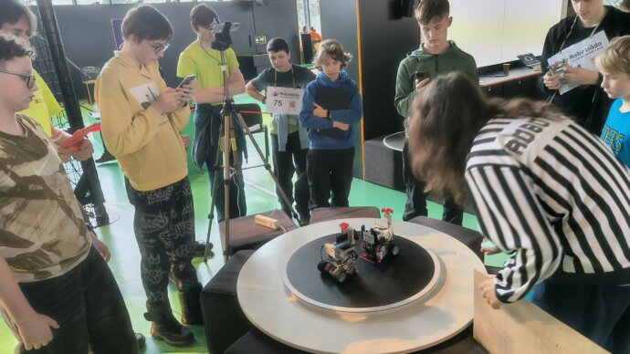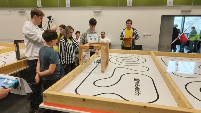 Soutěžili jsme ve dvou disciplínách – v robotickém sumu, kde se roboti neohroženě snažili vytlačit soupeře z ringu, a v disciplíně čára, ve které roboti museli co nejrychleji a nejpřesněji sledovat klikatou trasu. Bylo se na co dívat – někdy to jelo rychle, jindy trochu cik cak, ale vždycky naplno.
