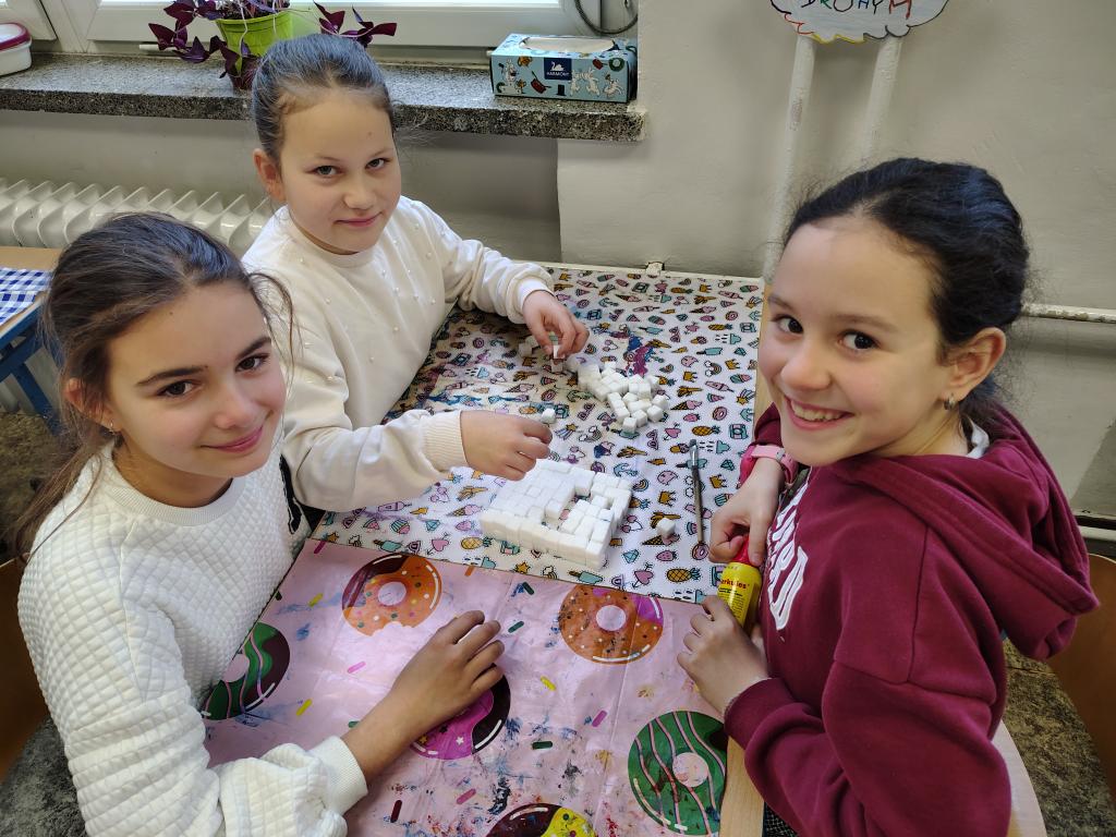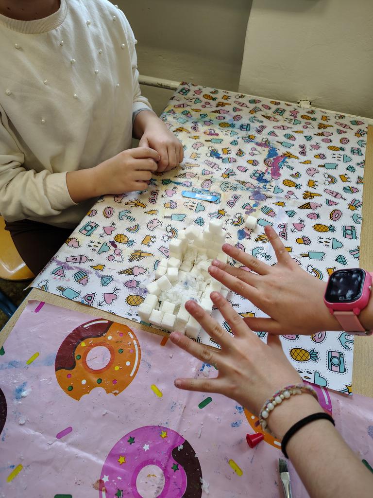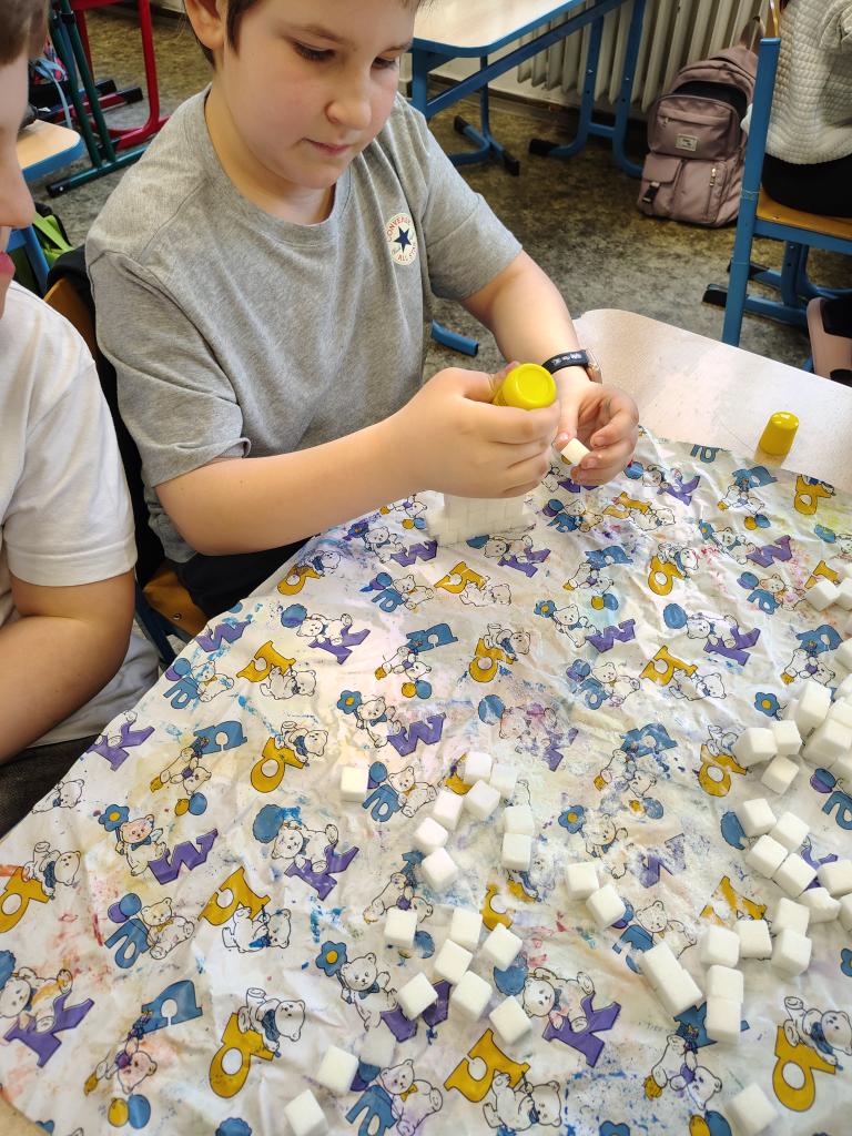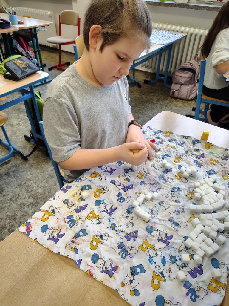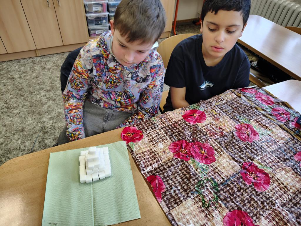 V hodině výtvarné výchovy žáci tvořili z cukru. Jejich skupinové práce si můžete prohlédnout v galerii.