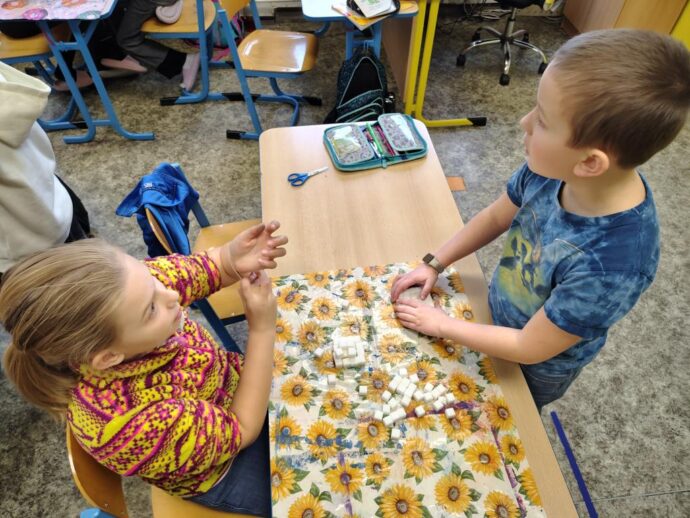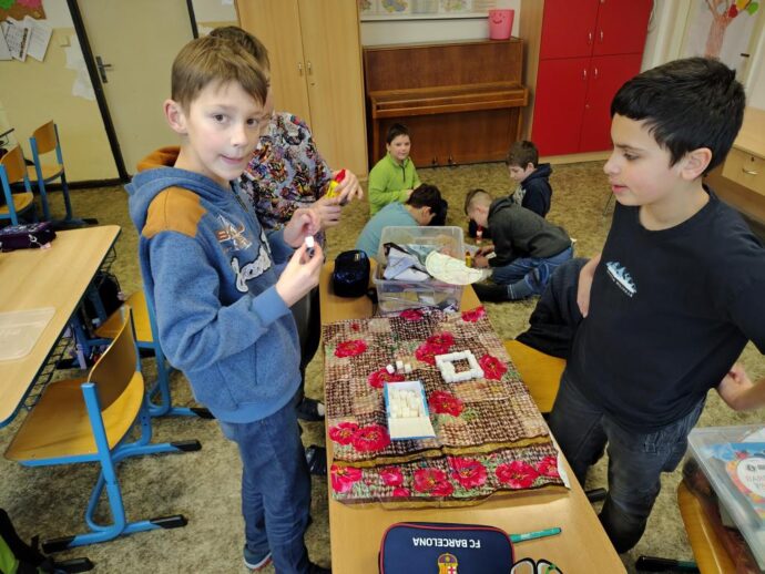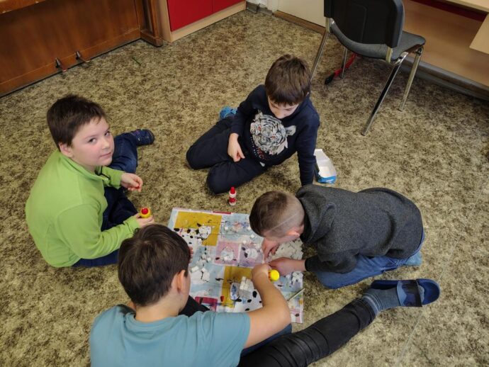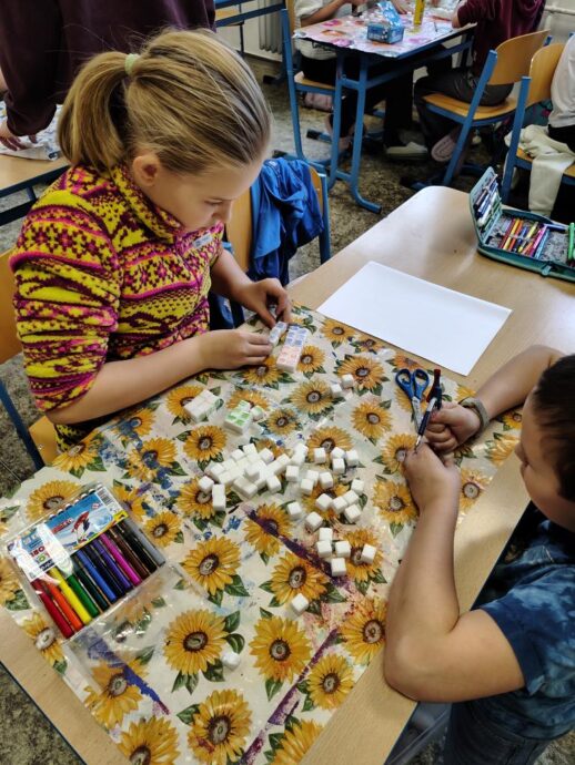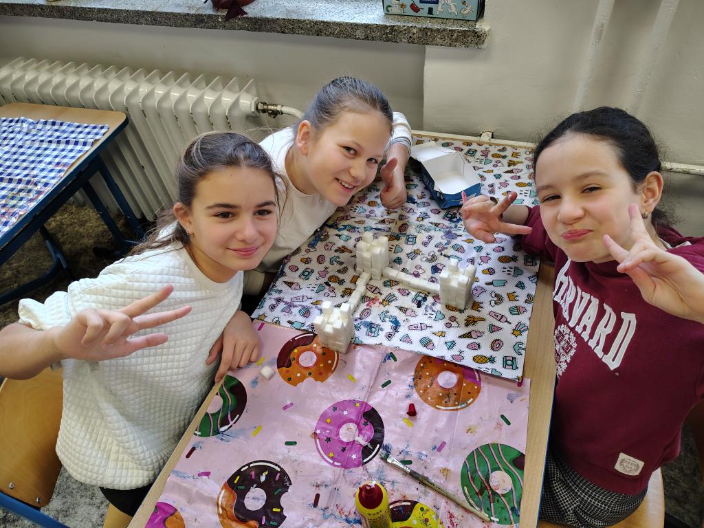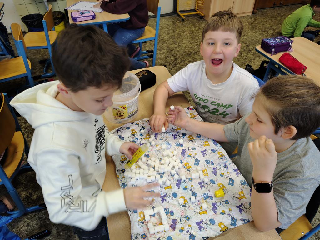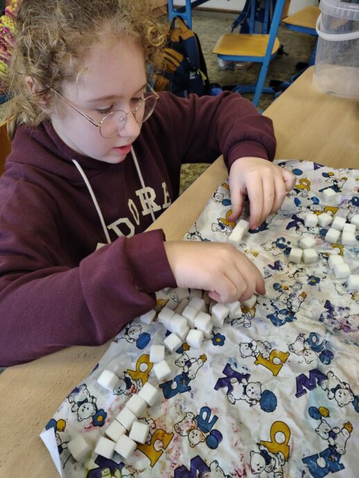 V hodině výtvarné výchovy žáci tvořili z cukru. Jejich skupinové práce si můžete prohlédnout v galerii.
