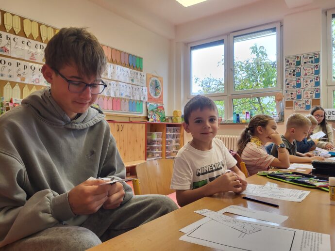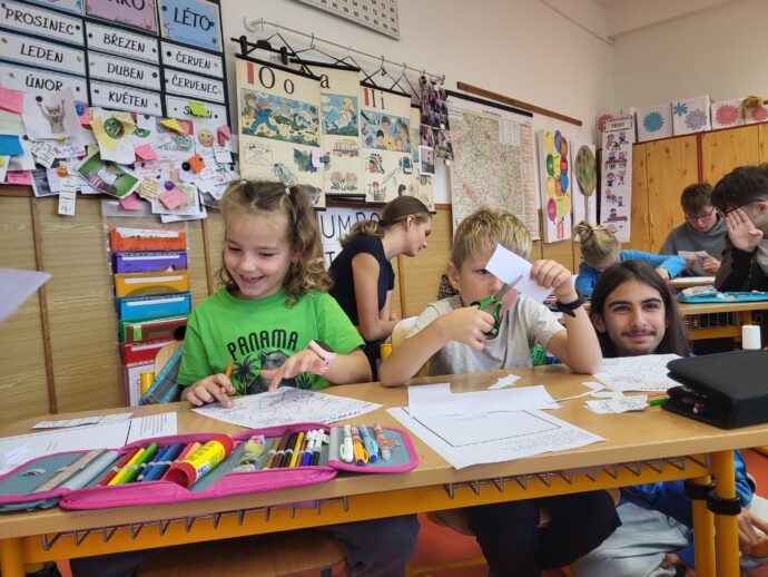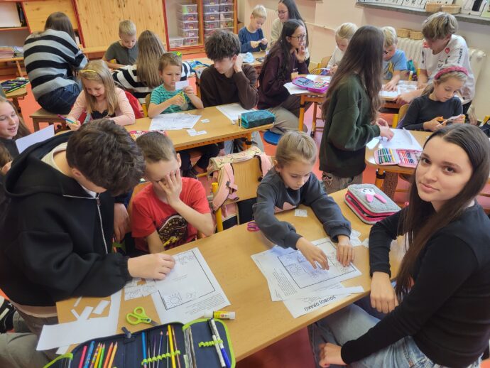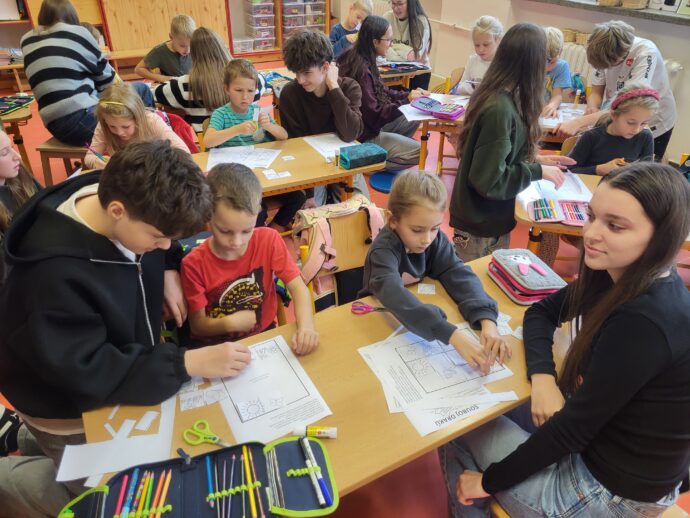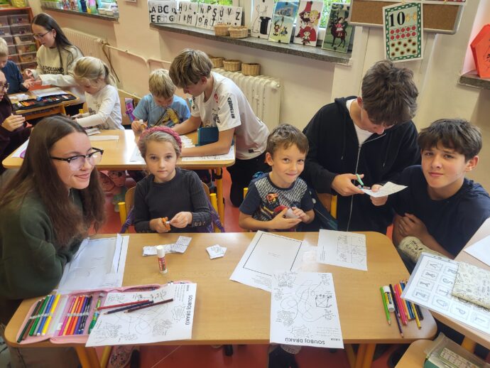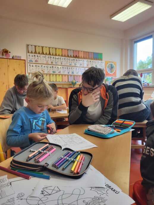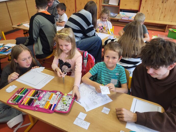 Prvňáci a deváťáci se 7. října pustili do společného tvoření. V projektu Souboj draků vznikly originální pracovní listy plné nápadů, barev a fantazie – každý drak je jedinečný, stejně jako jeho autoři