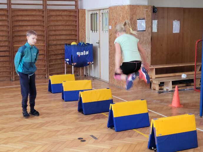 I když mají děti naší třídy nejraději míčové hry, trénujeme i mrštnost, výdrž, sílu. Dřepovací vybíjená byla odměnou pro všechny.
